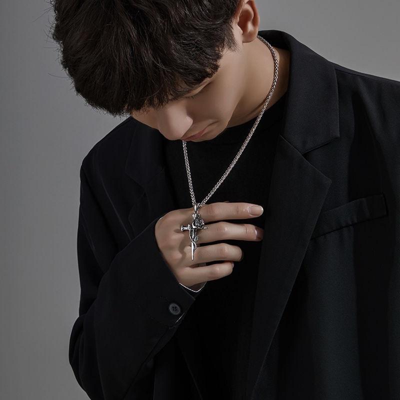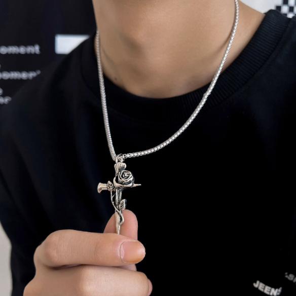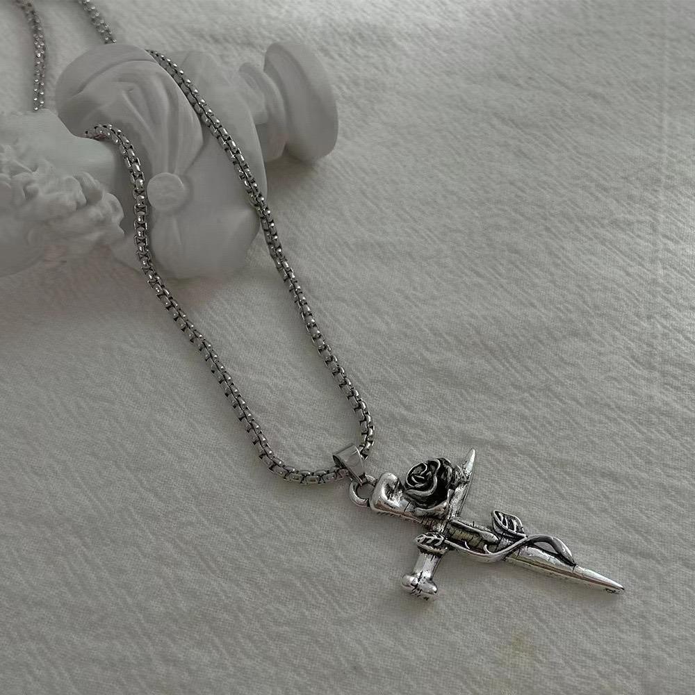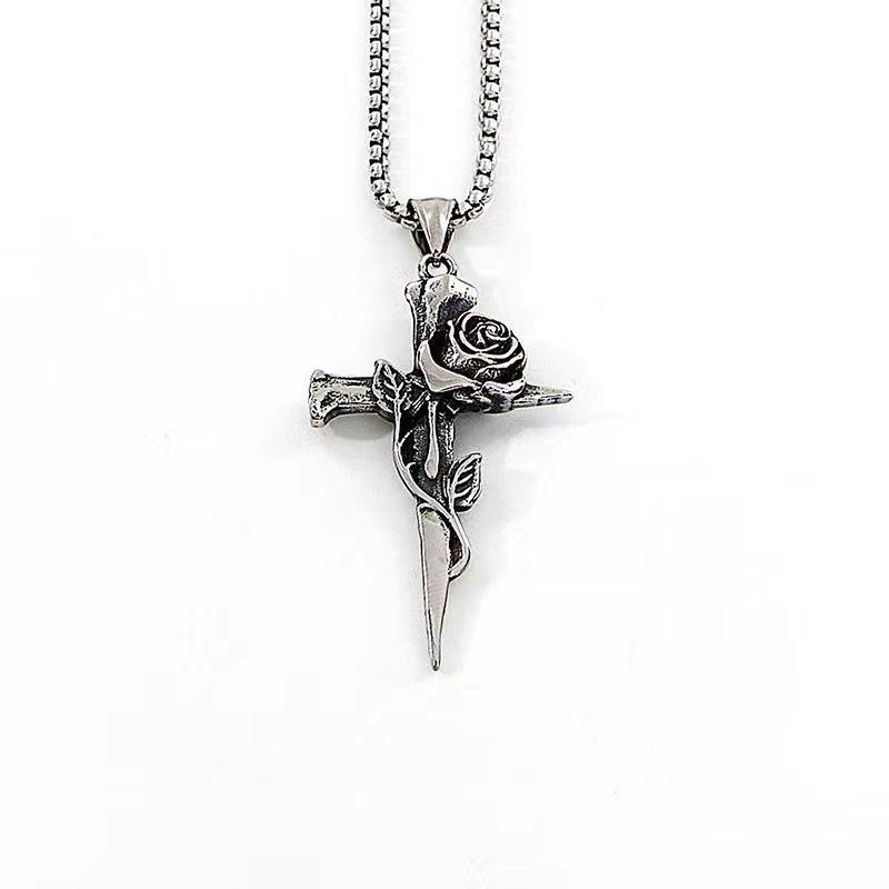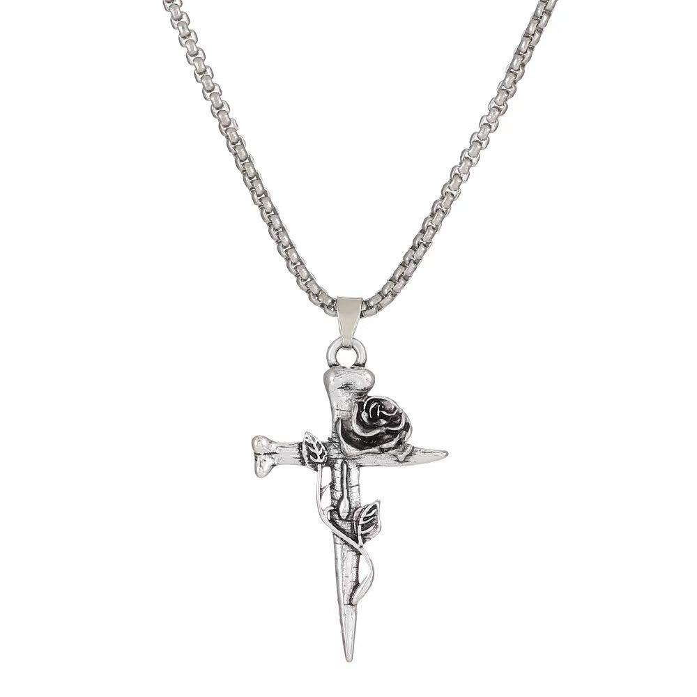 Compra Collar con cruz de rosa, colgante de aleación retro americana, hermoso colgante de estilo gótico en cadena de suéter de nicho al por mayor en Joom.pro