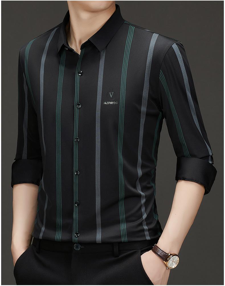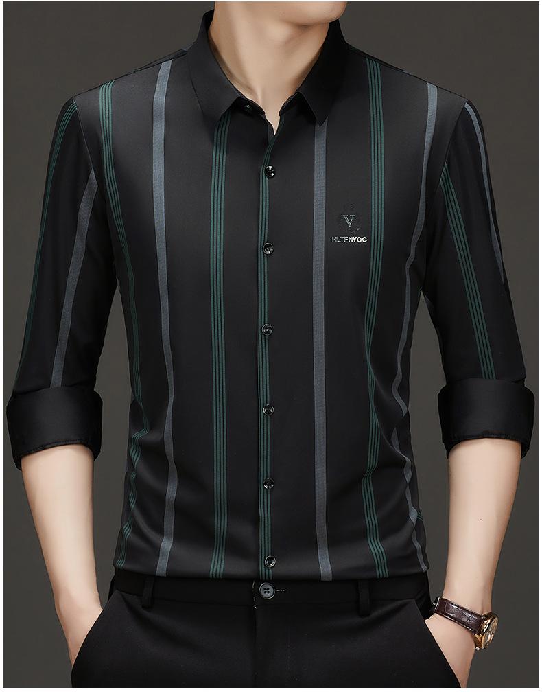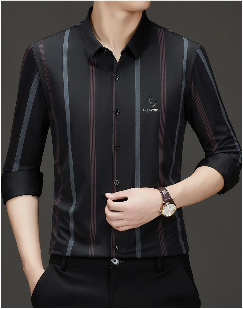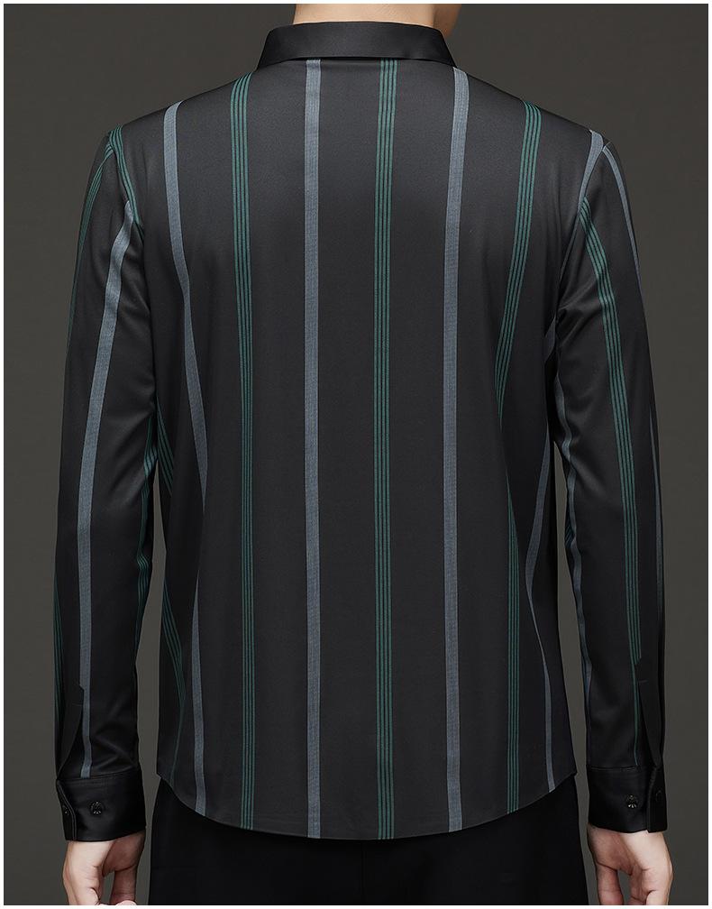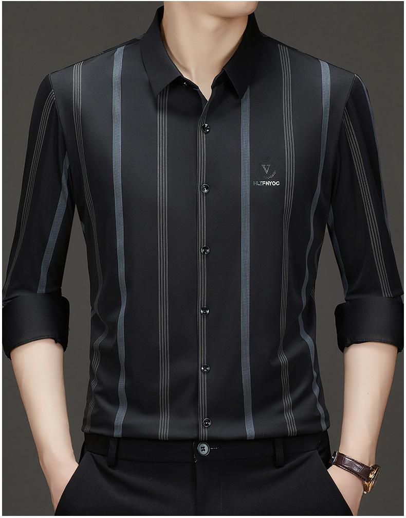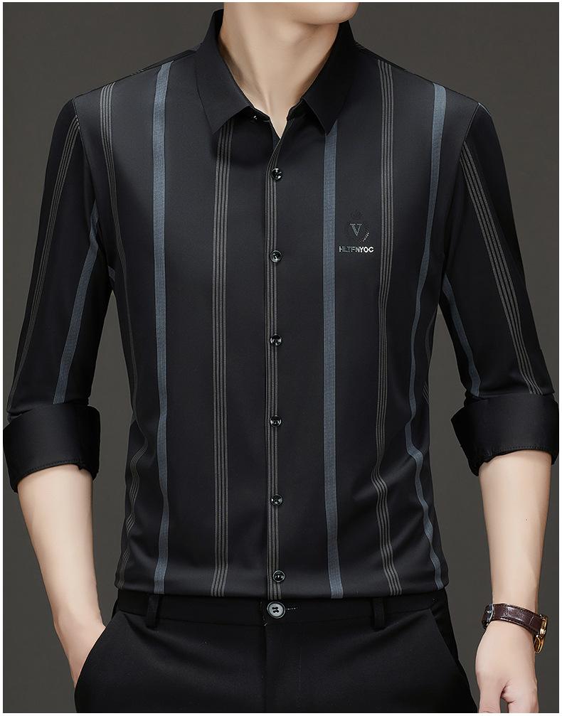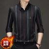 Camisa de Invierno para Hombre de Manga Larga con Forro Polar Camisa de Moda de Rayas Verticales Moda Coreana Cálida Gruesa de Alta Elasticidad Cabello de Hombre