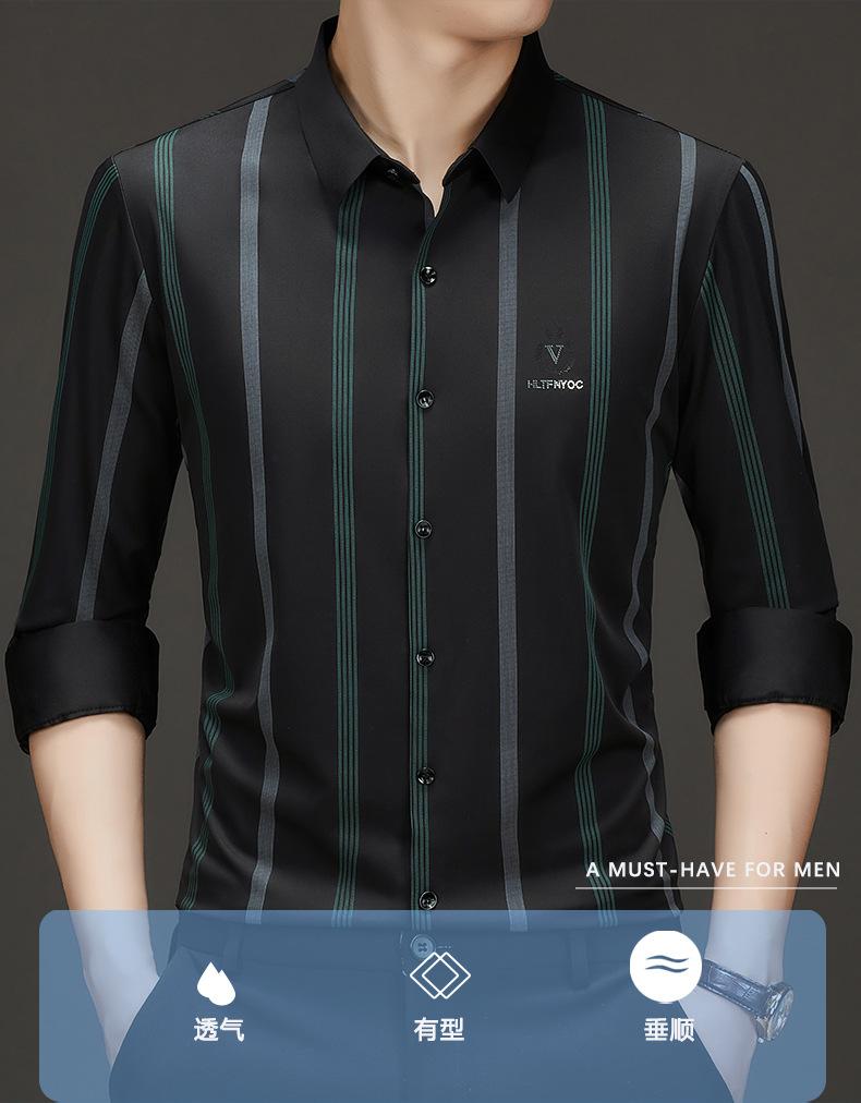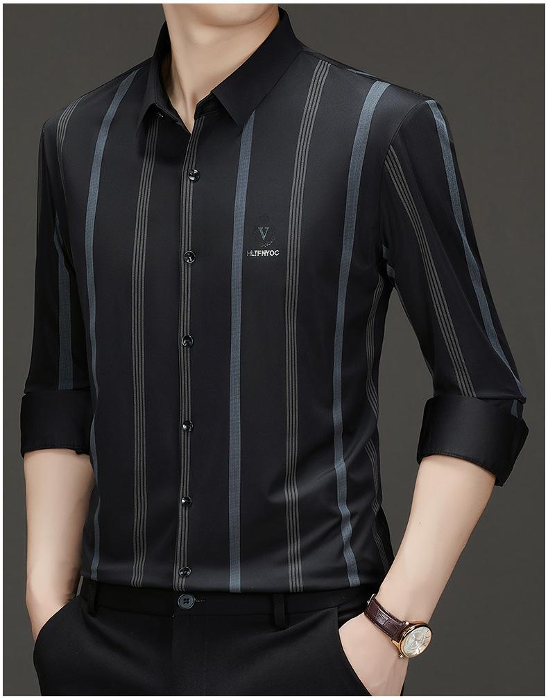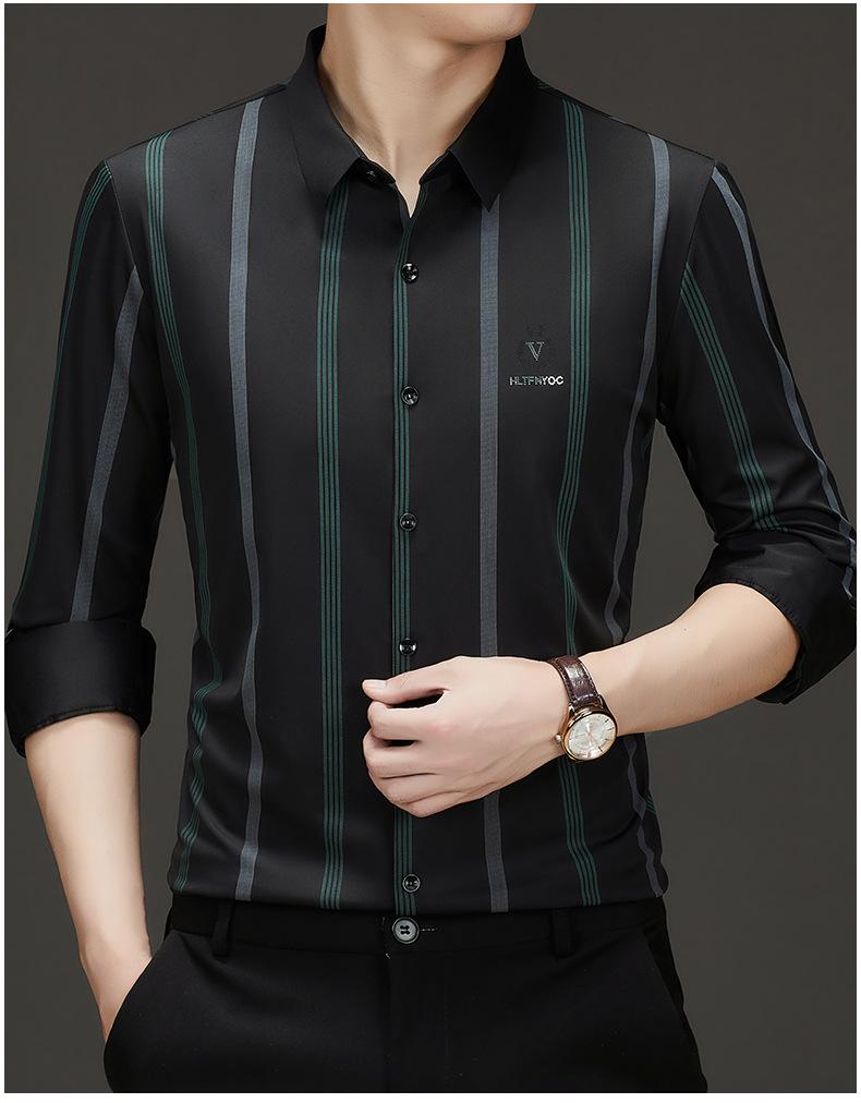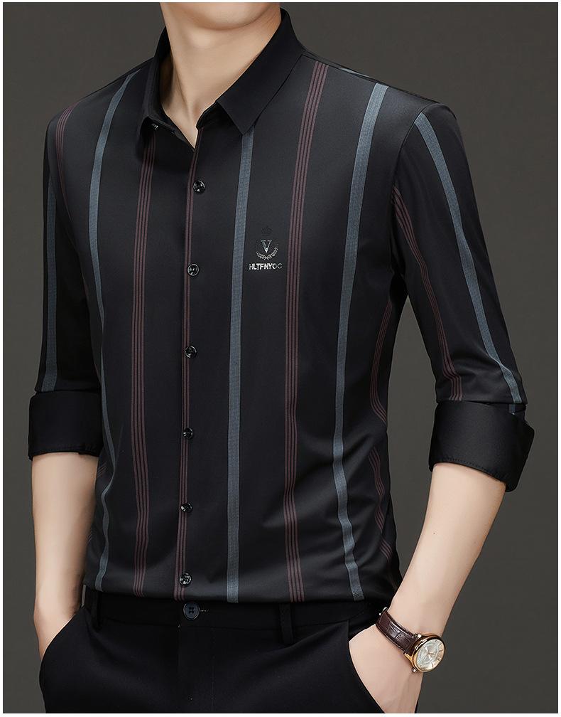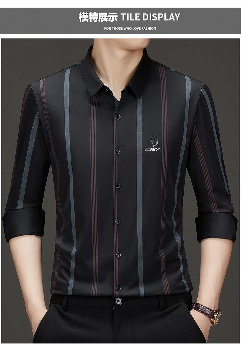 Camisa de Invierno para Hombre de Manga Larga con Forro Polar Camisa de Moda de Rayas Verticales Moda Coreana Cálida Gruesa de Alta Elasticidad Cabello de Hombre