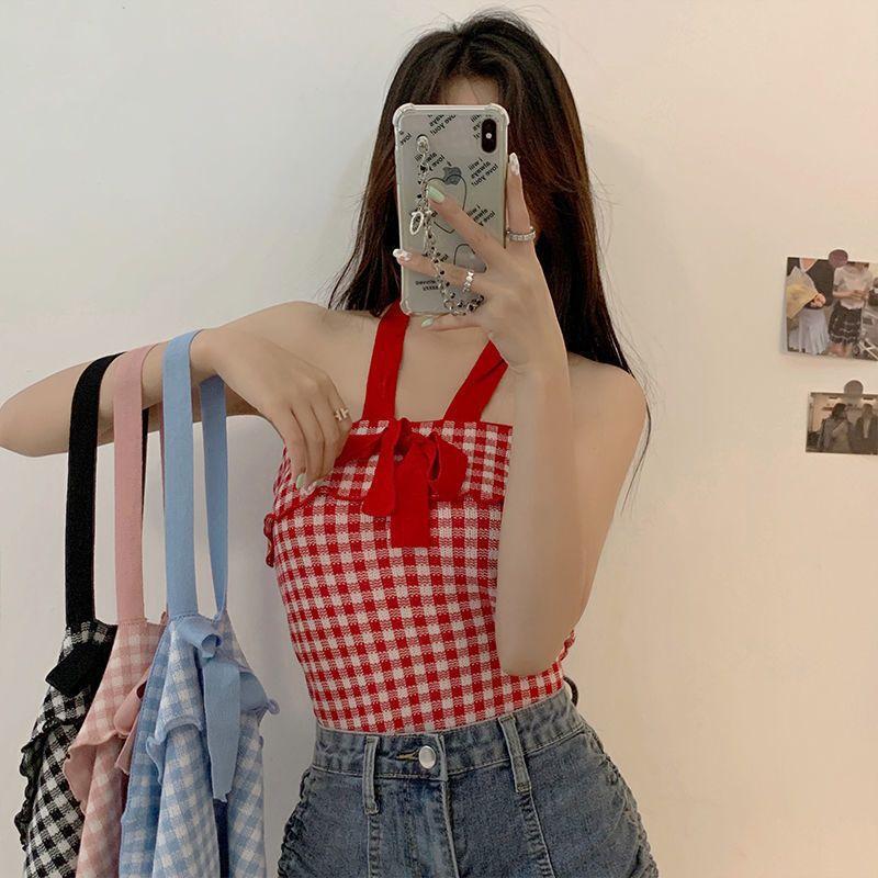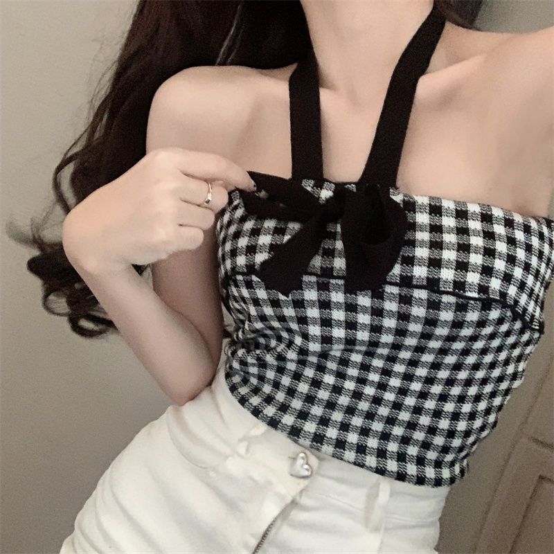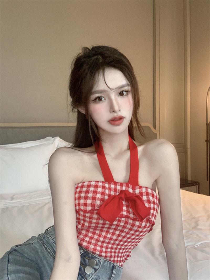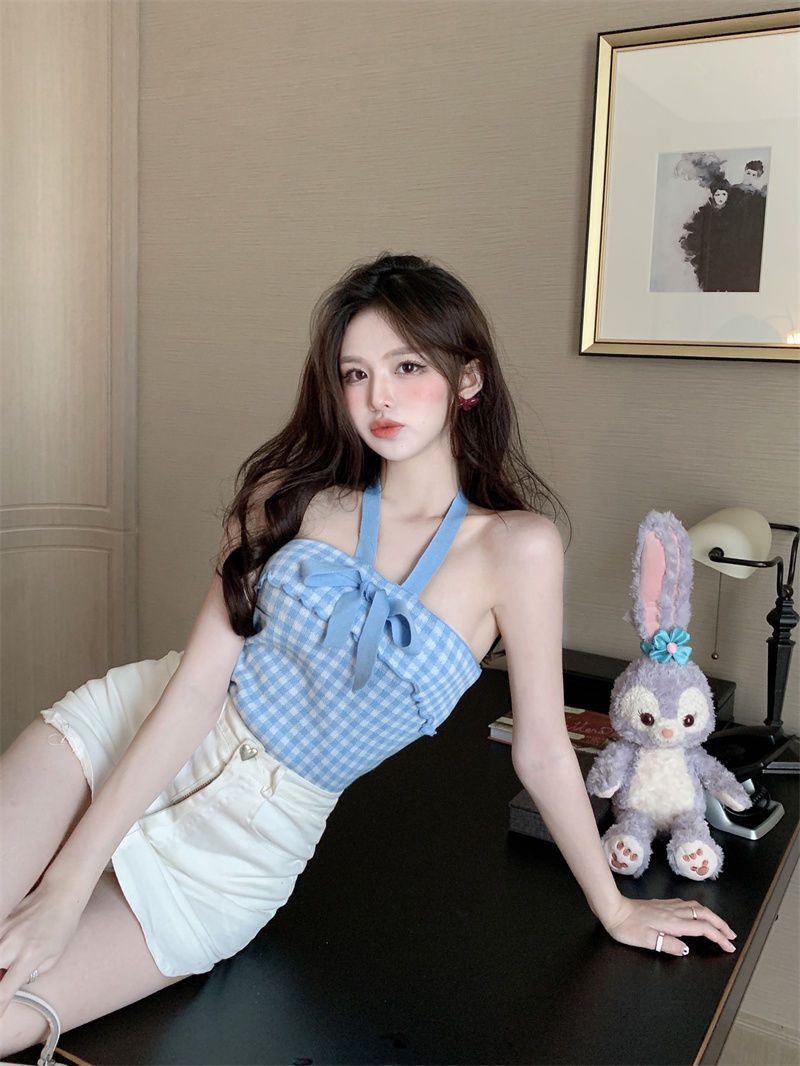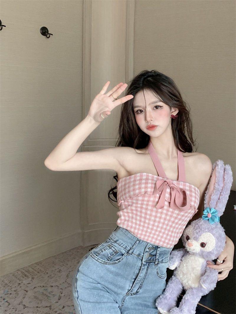Chaleco halter con lazo para chica sexy para mujer, nuevo estilo de verano, ropa exterior sexy, top sin mangas con tirantes de viento de puro deseo, moda