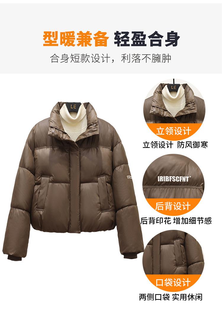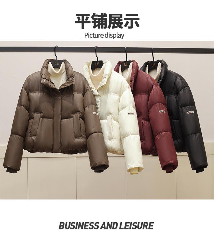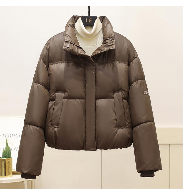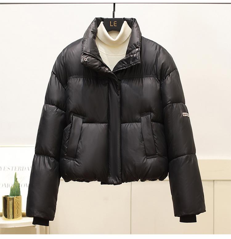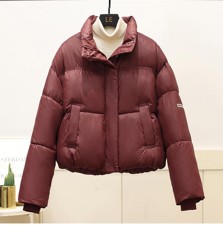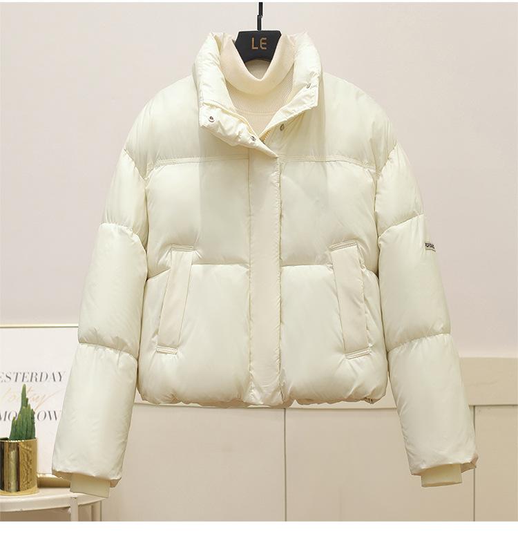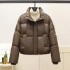 Chaqueta acolchada de algodón estilo coreano para mujer, abrigo corto grueso, nuevo estilo de invierno 2025, cuello alto, chaqueta acolchada de algodón moderna y elegante