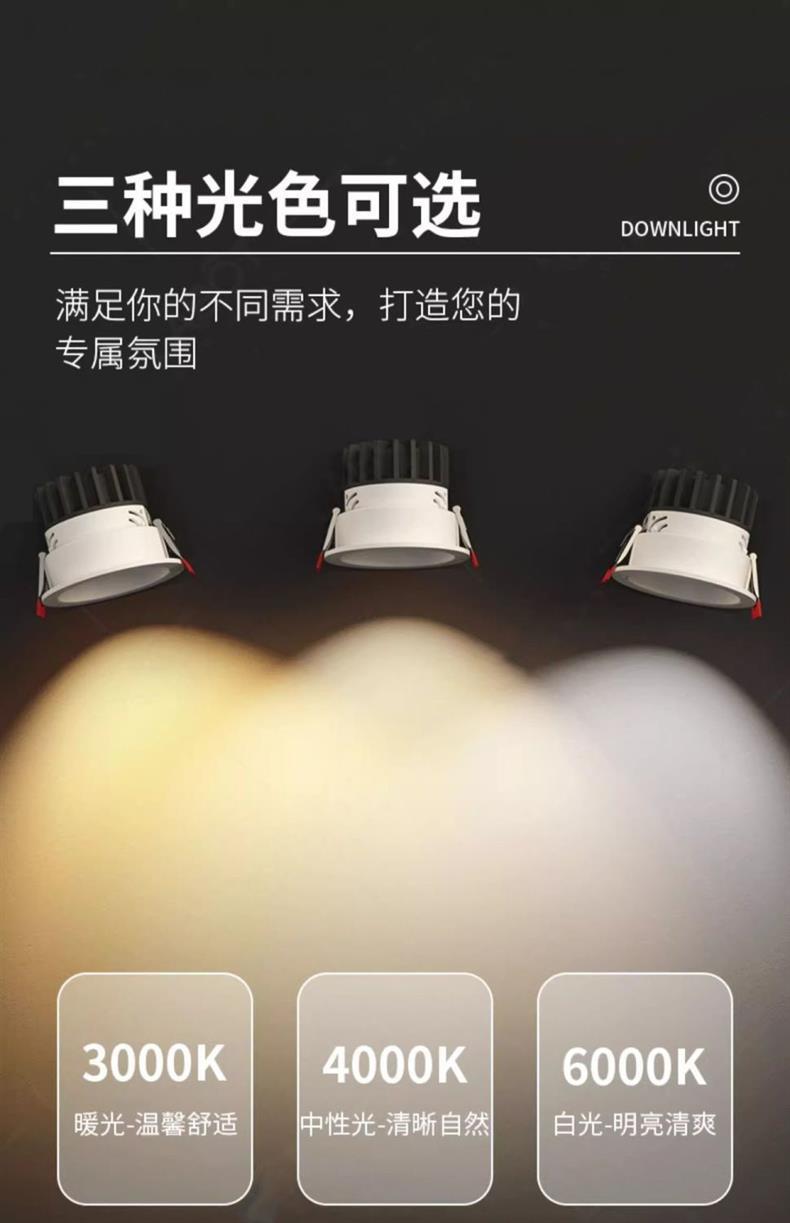 Deep cup downlight 5w white light, Deep cup downlight 5w neutral light, Deep cup downlight 5w three-color ligh...