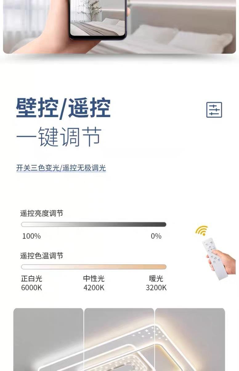 Three color dimming, Stepless dimming with remote control, Tmall elf with remote control + voice control, Offl...