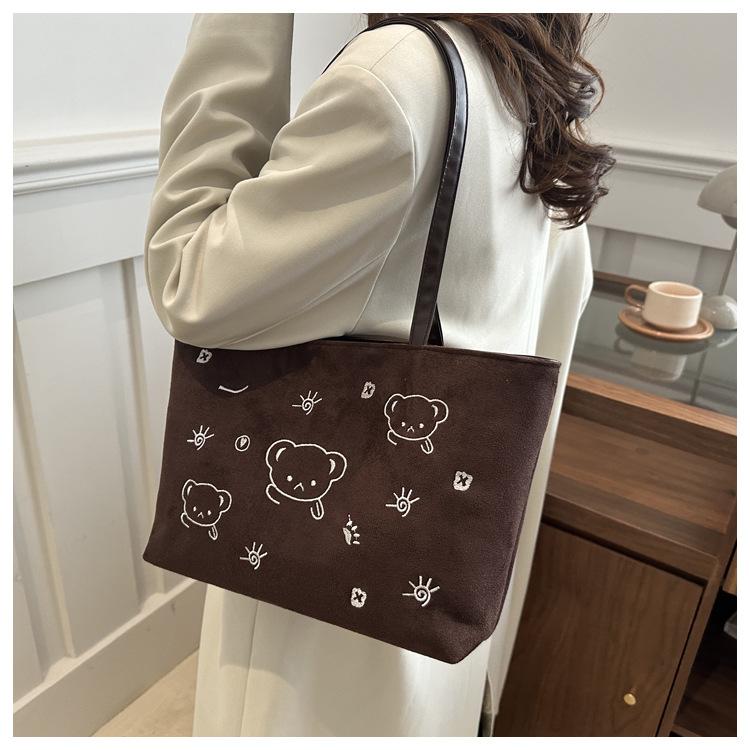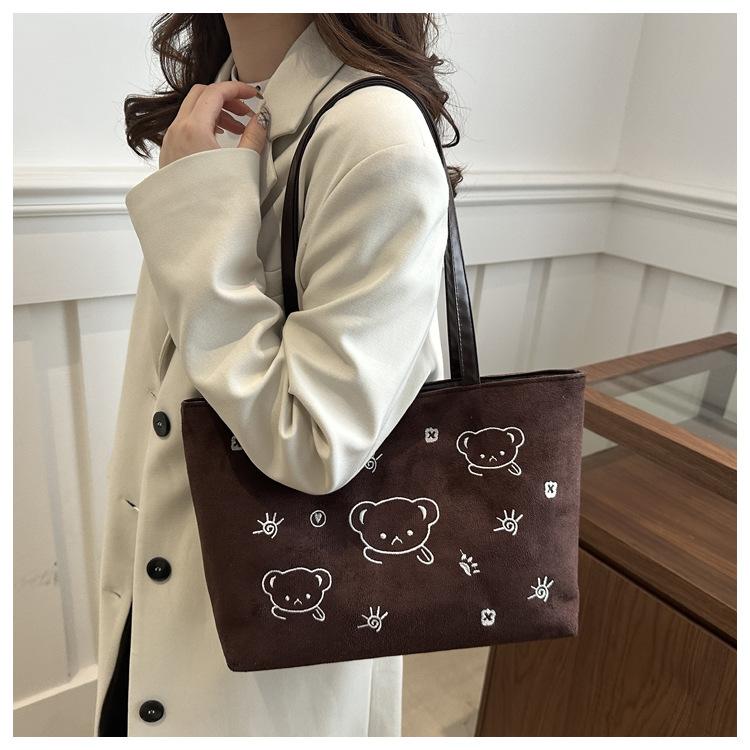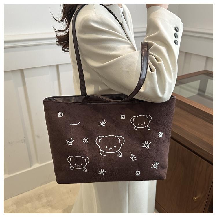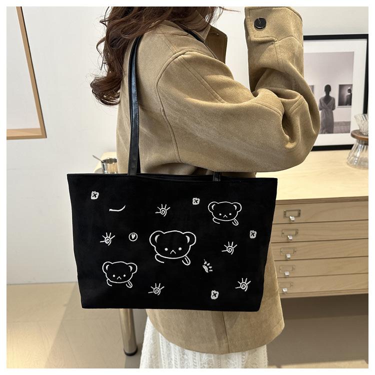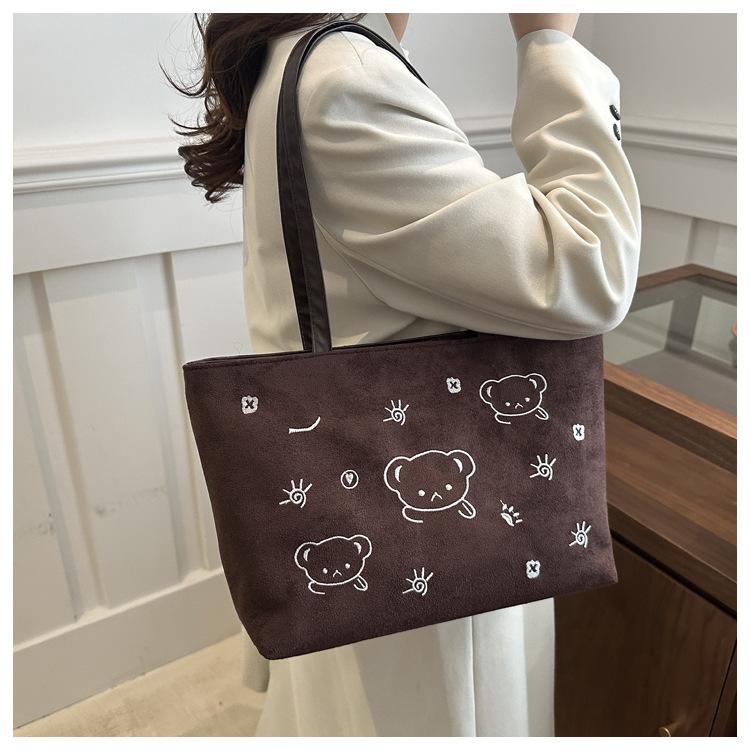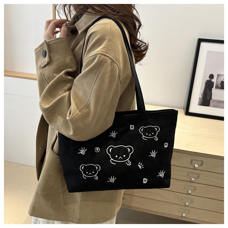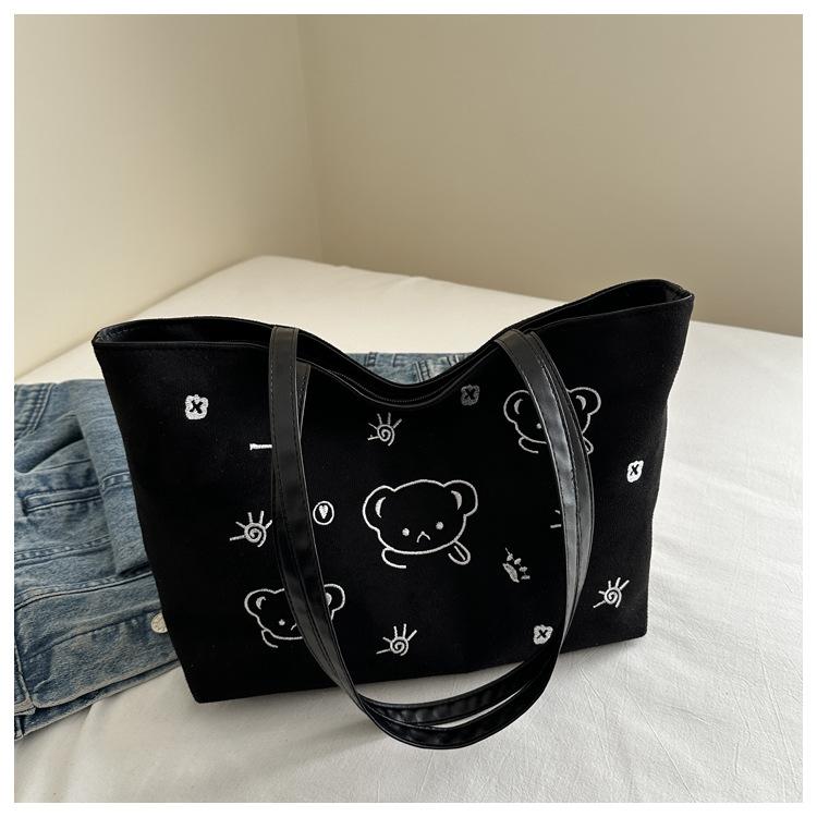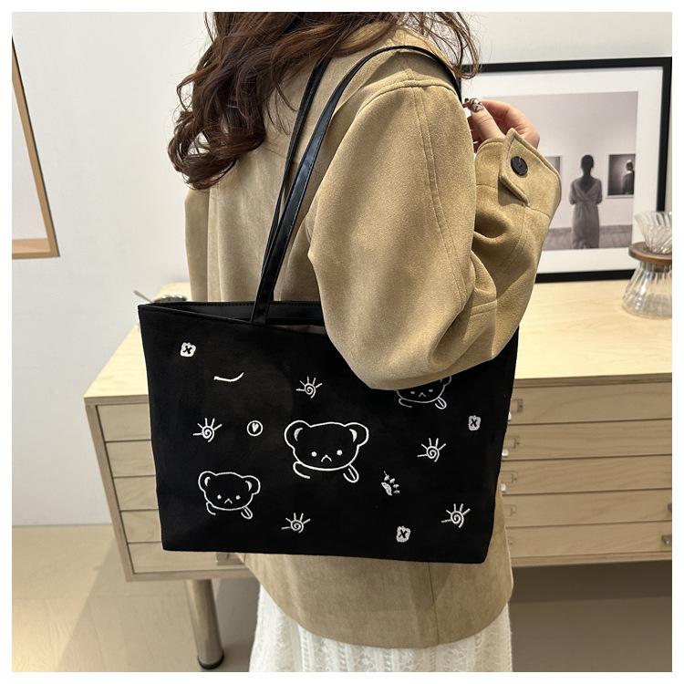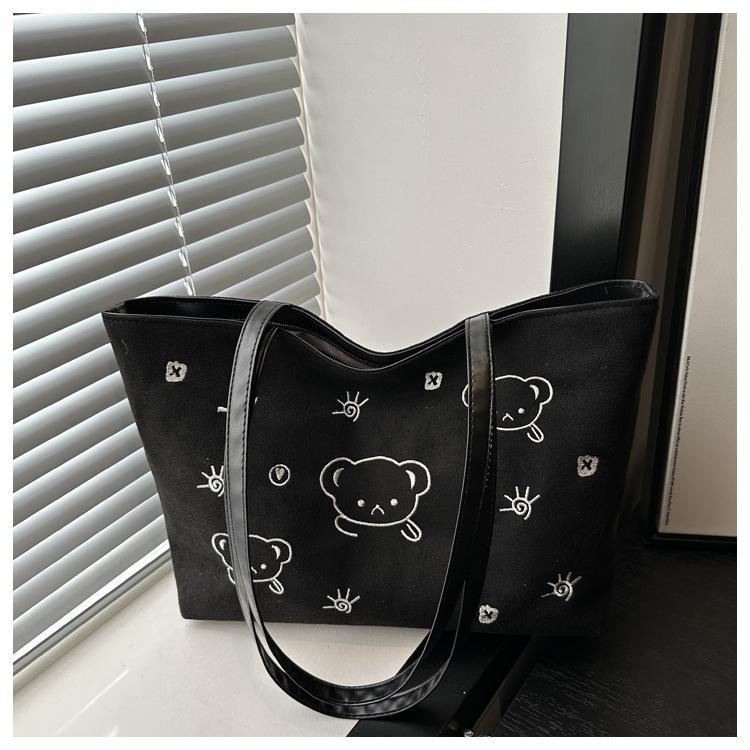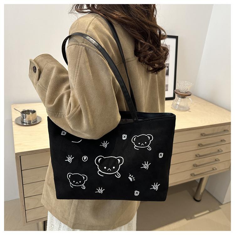 Bolso de mano para mujer, de un solo hombro, con bordado japonés de dibujos animados, de gran capacidad, para estudiantes, combinable con todo, bolso de clase