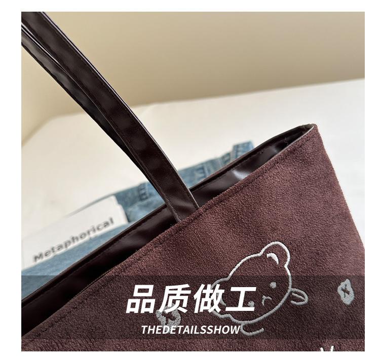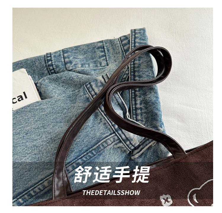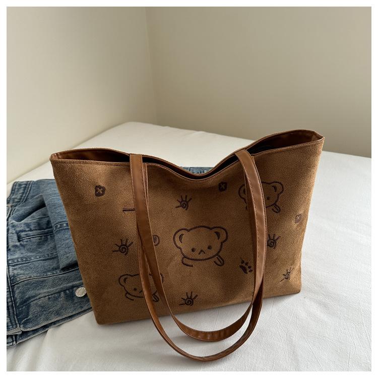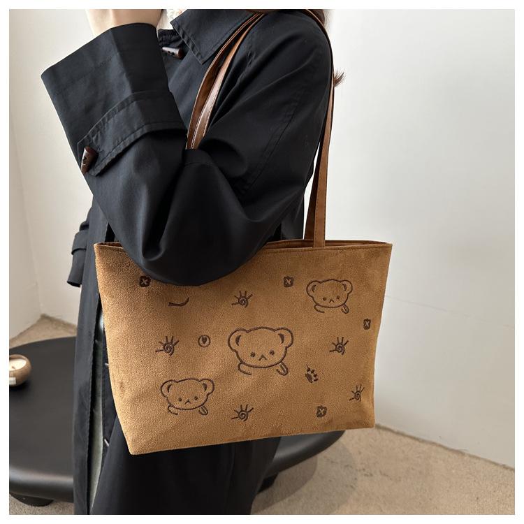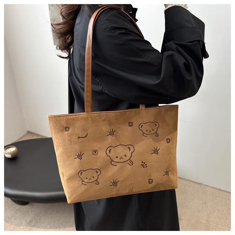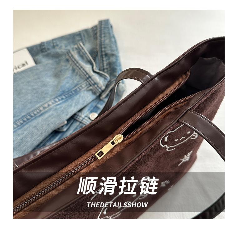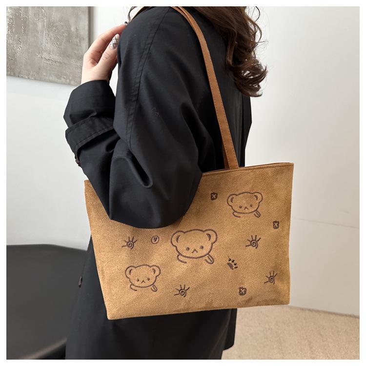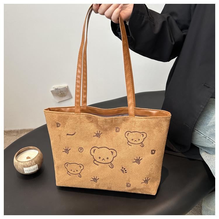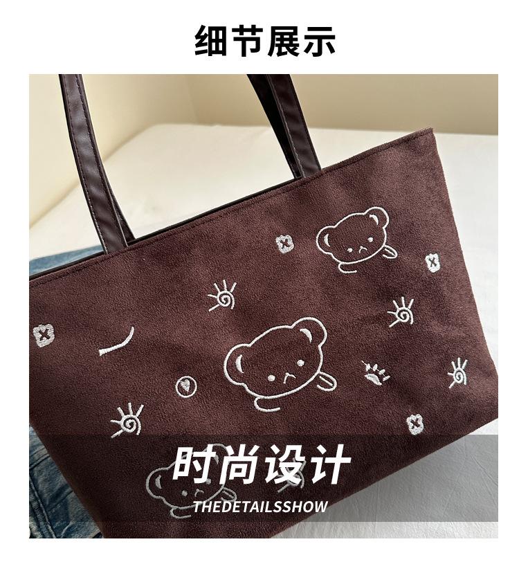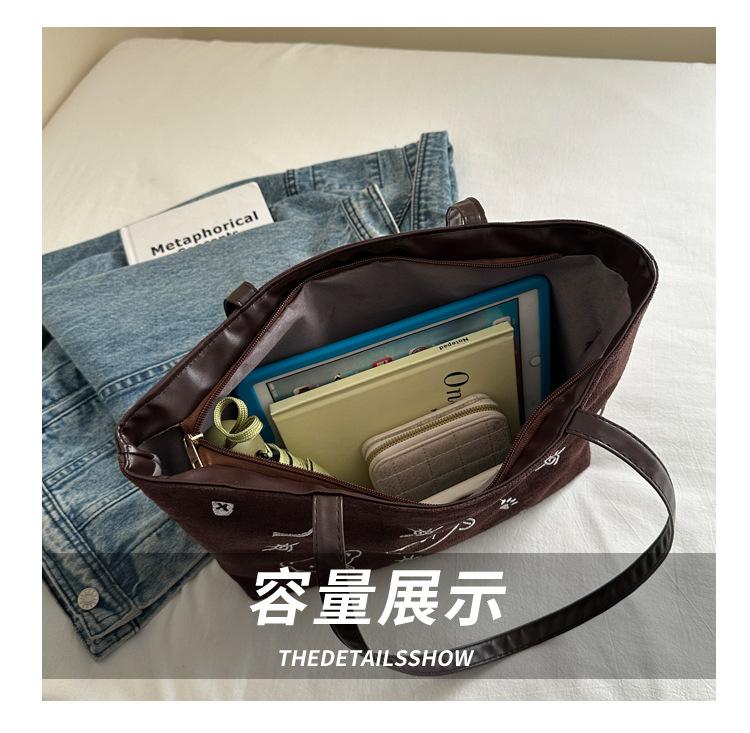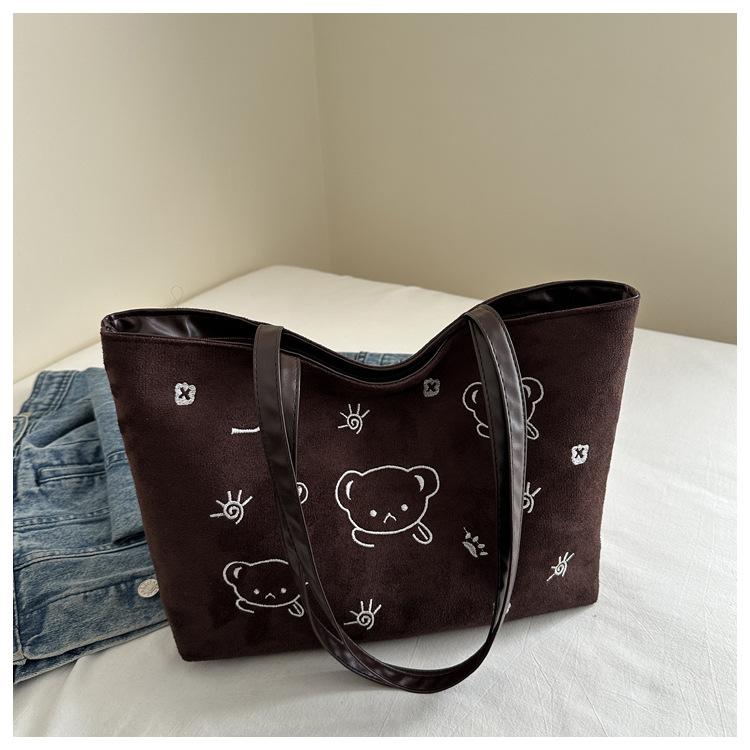 Bolso de mano para mujer, de un solo hombro, con bordado japonés de dibujos animados, de gran capacidad, para estudiantes, combinable con todo, bolso de clase