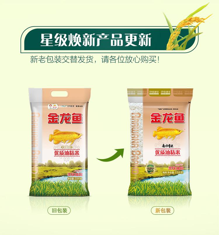 Arroz glutinoso de alta calidad con aceite de pez dragón dorado, 2,5 kg, arroz suave de alta calidad, aroma hidratante para cocinar arroz sureño.