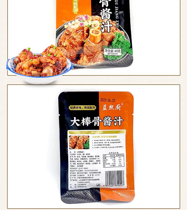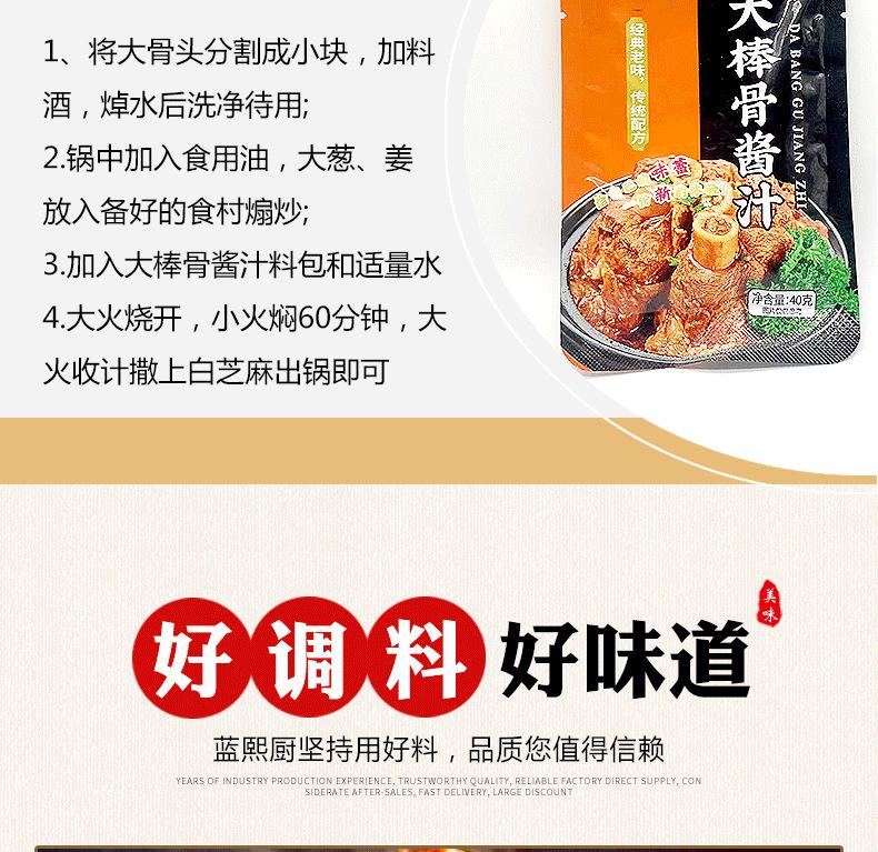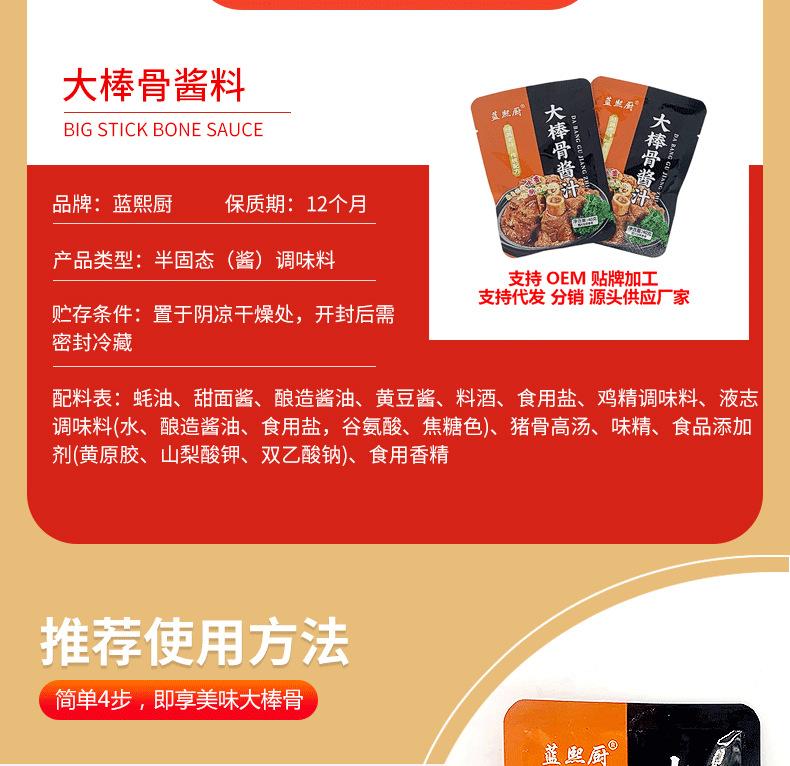 Salsa comercial de hueso de palo grande, bolsas de 40 g de aperitivos del noreste, salsa para estofado, salsa para cabeza de hueso grande, salsa de carne, salsa de condimento de esqueleto