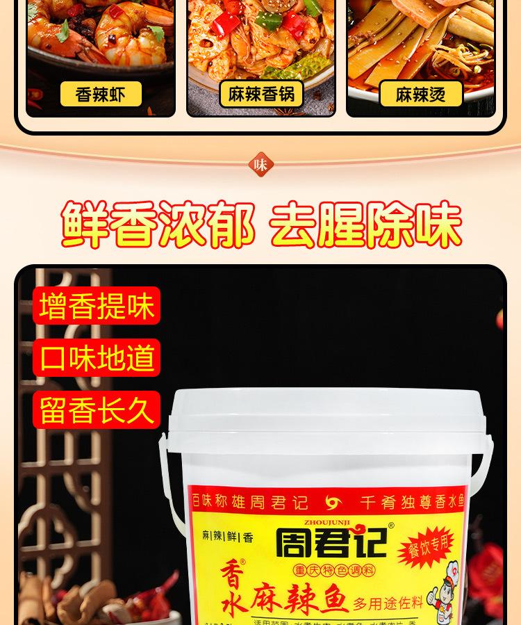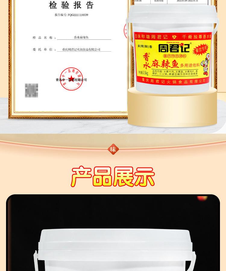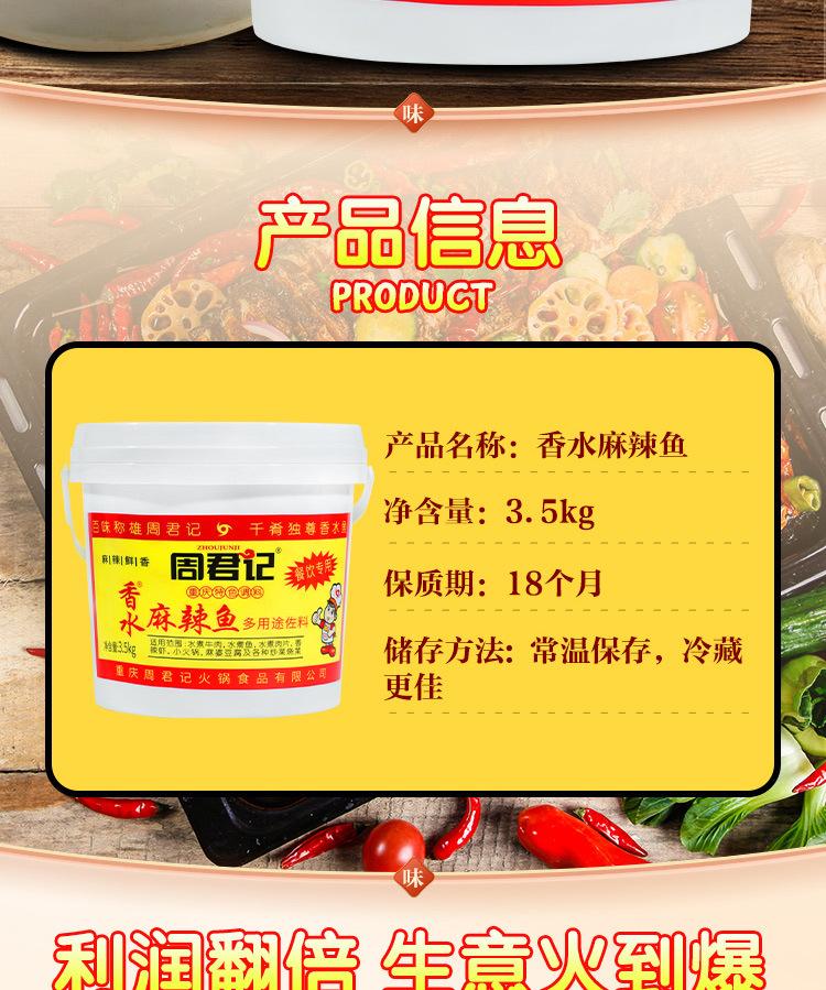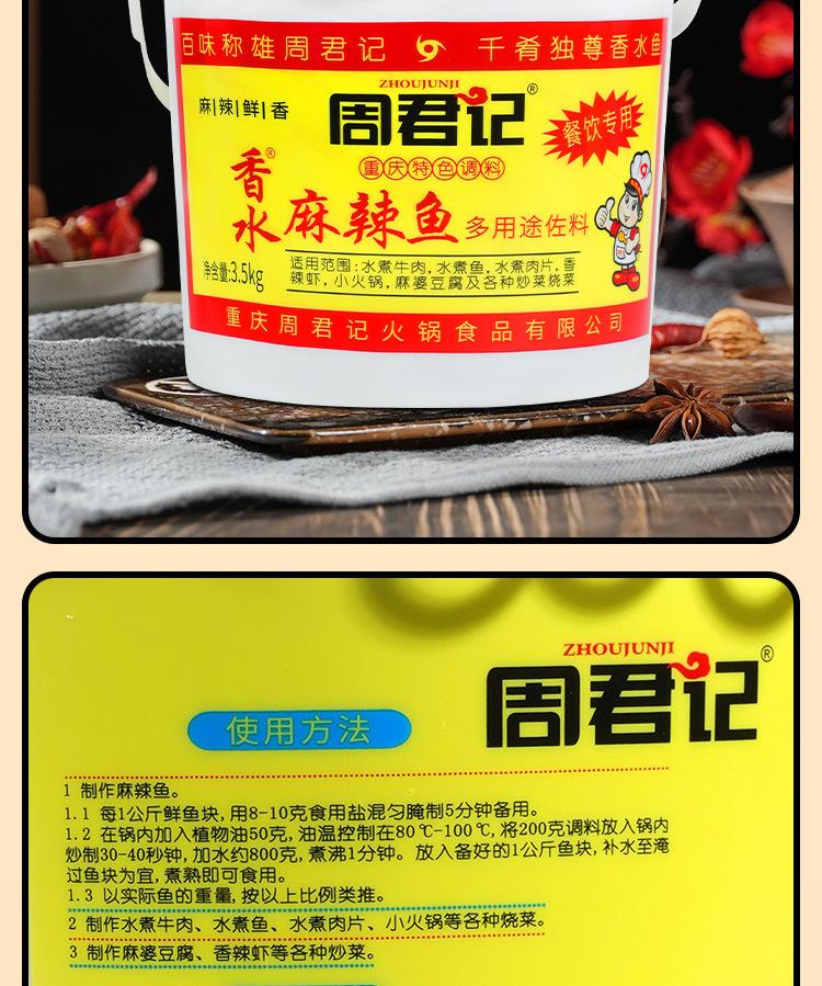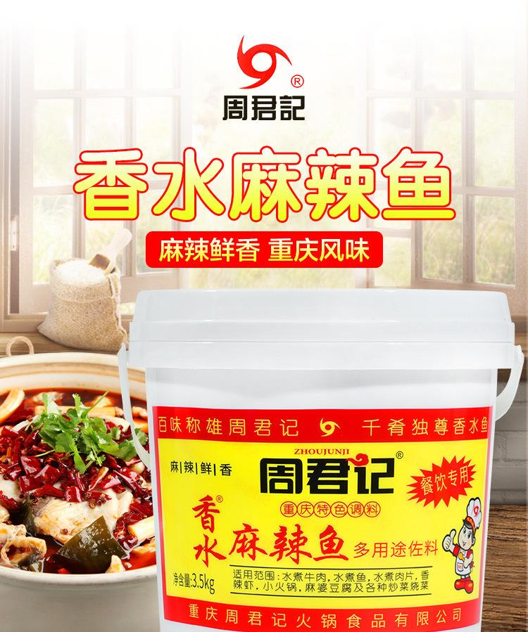 Condimento picante para pescado Zhou Junji, 3,5 k, para olla caliente Chongqing, material base, filetes de pescado hervidos picantes comerciales