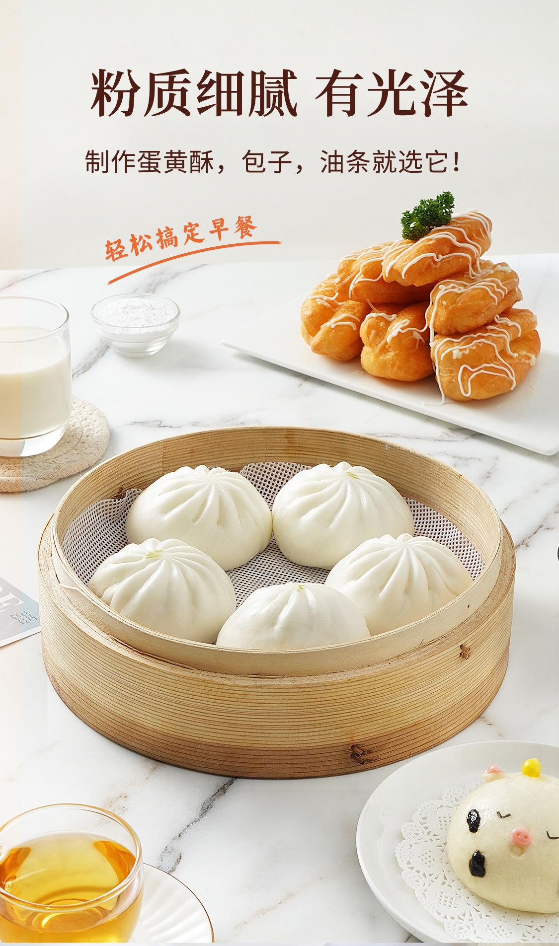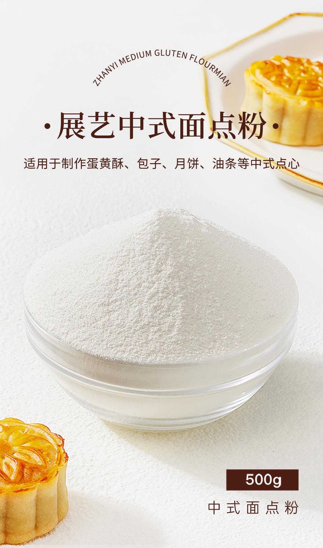 Exposición de arte en la harina de gluten 500g caja entera bollos al vapor pan al vapor pastel de luna ancha piel polvo especial fideos chinos yema de huevo crujiente hogar