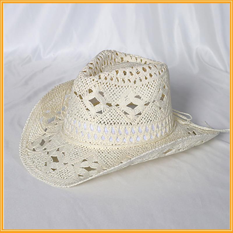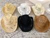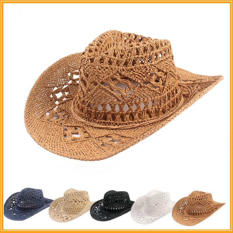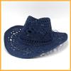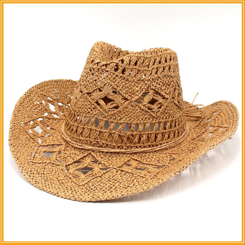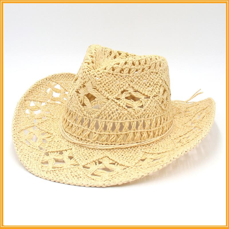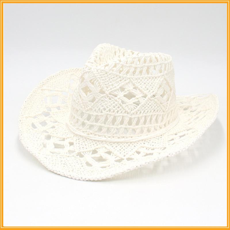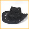 Sombrero de vaquero occidental europeo y americano transfronterizo Topper Jazz Sombrero de vaquero hueco Sombrero de paja de playa retro tejido a mano