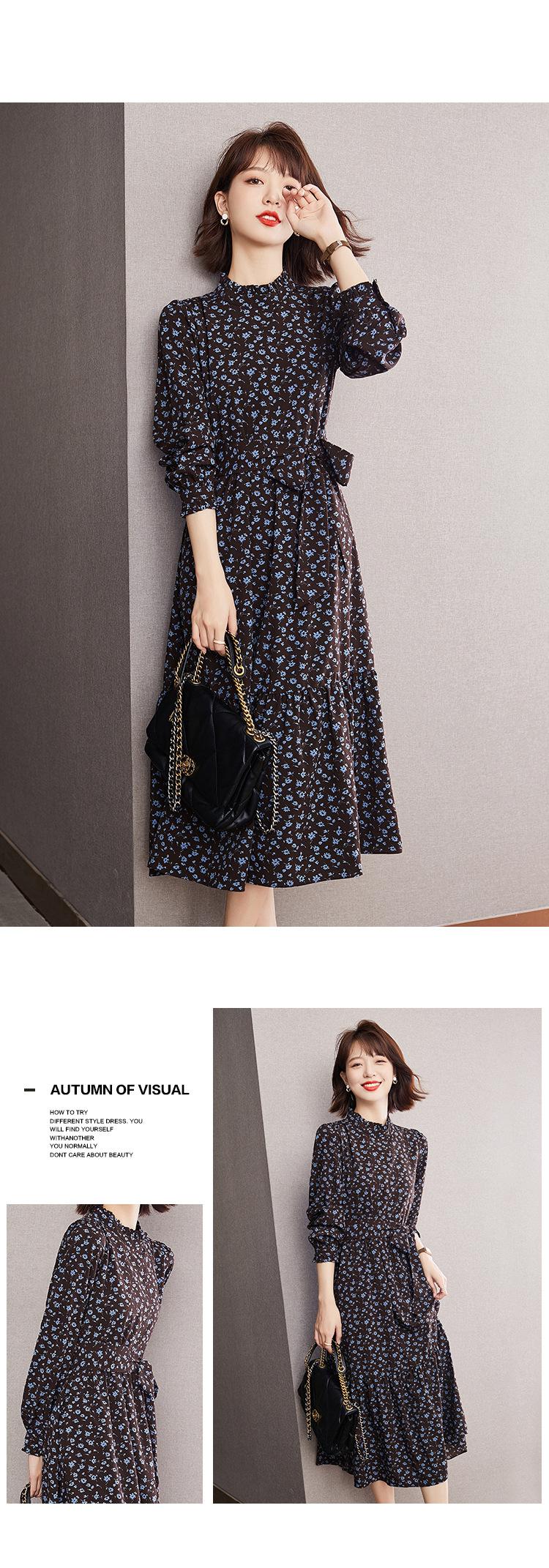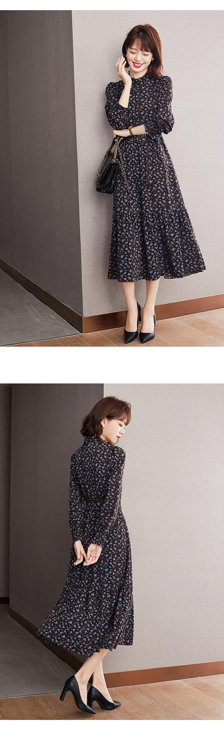 Compra Abrigo Retro Francés Nuevo de Primavera y Otoño 2025 con Falda Larga hasta la Rodilla, Vestido Floral de Fondo para Mujer al por mayor en Joom.pro
