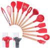 Juego de 7 utensilios de cocina de silicona con mango de madera, color caqui, para almacenar utensilios de cocina, traje de cocina, explosiones transfronterizas de Amazon