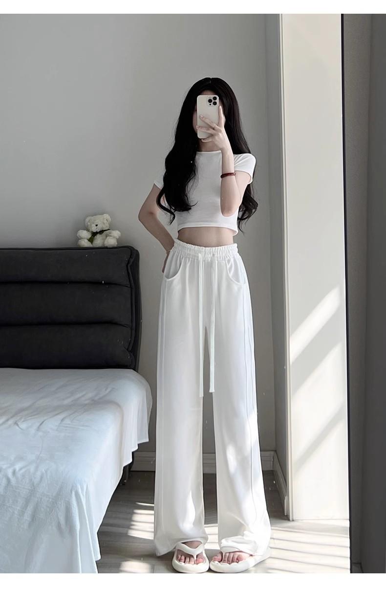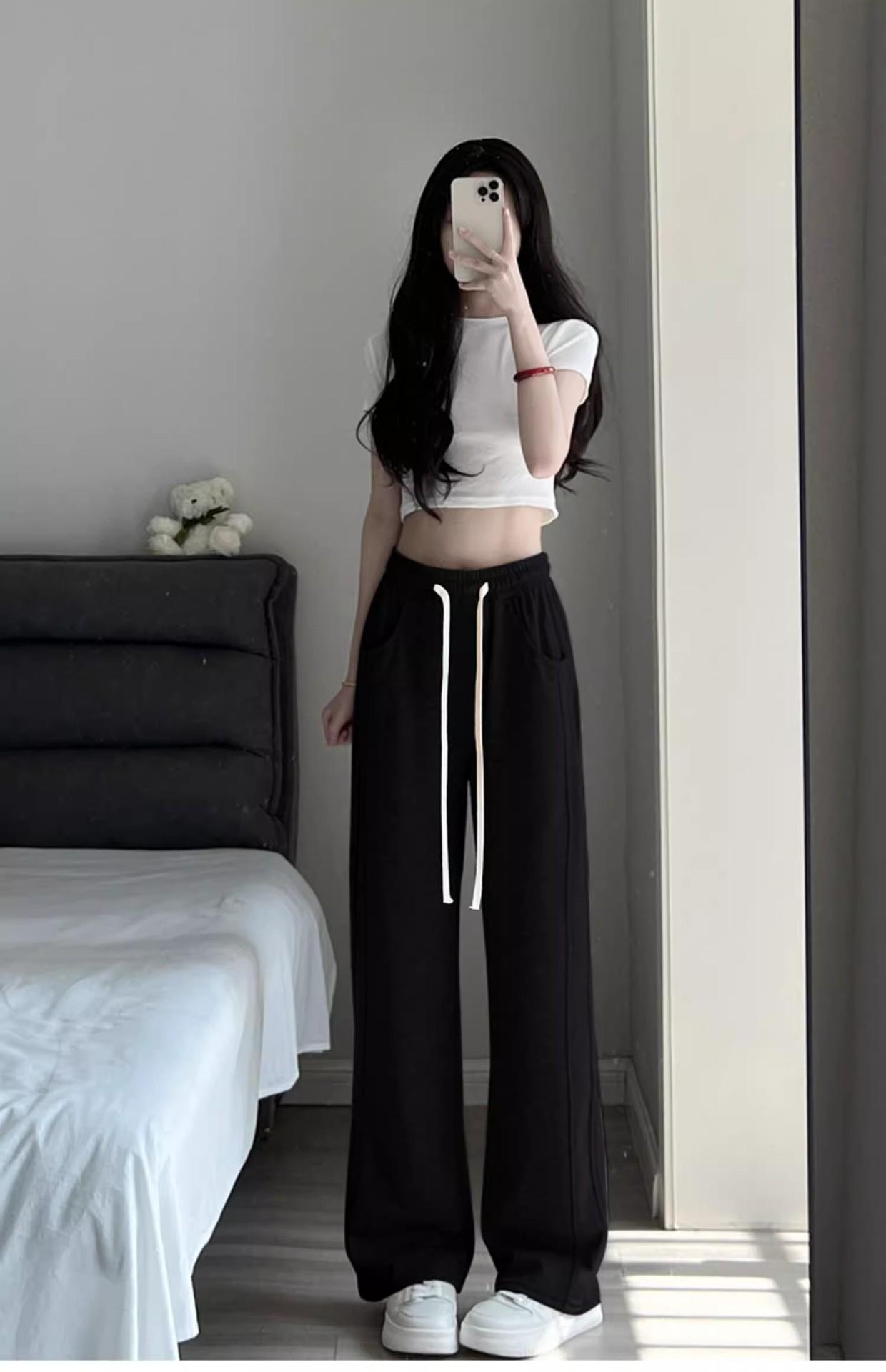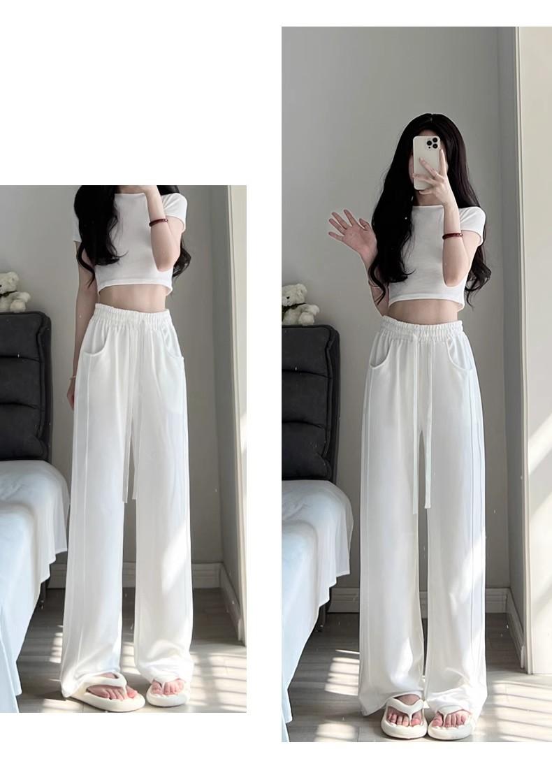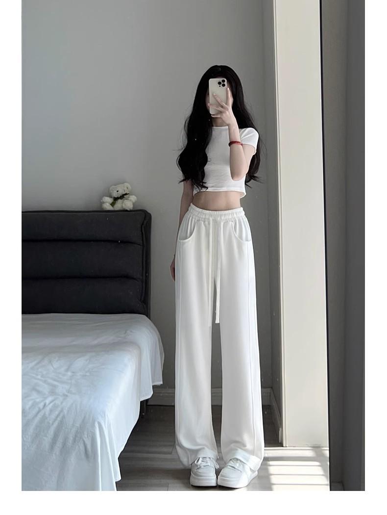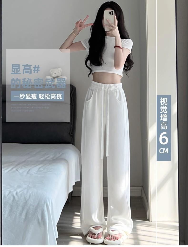 Pantalones deportivos blancos de pierna ancha para mujer, primavera y otoño 2025, nuevos pantalones holgados de cintura alta, rectos e informales, finos, tipo banana.