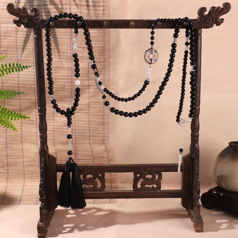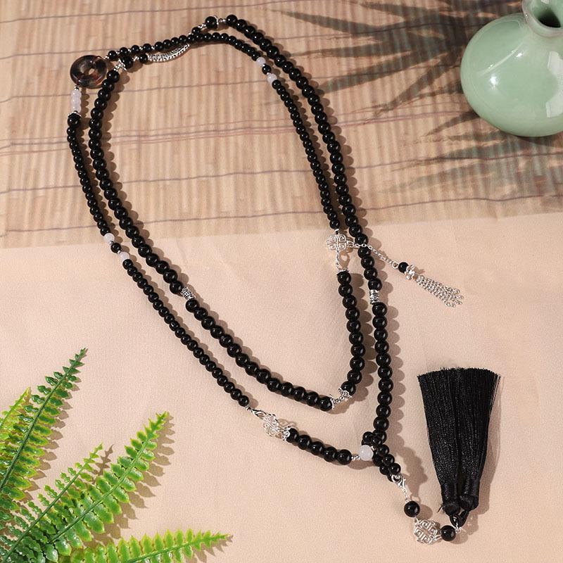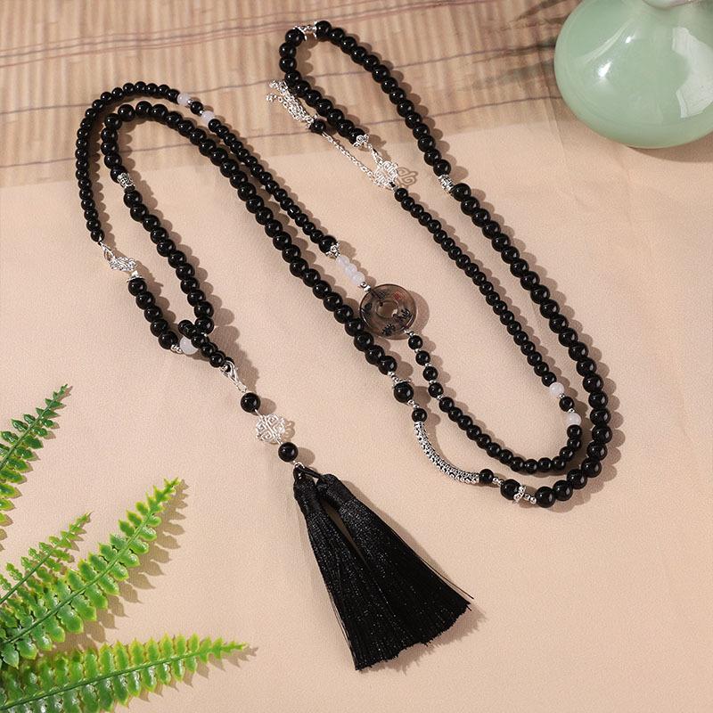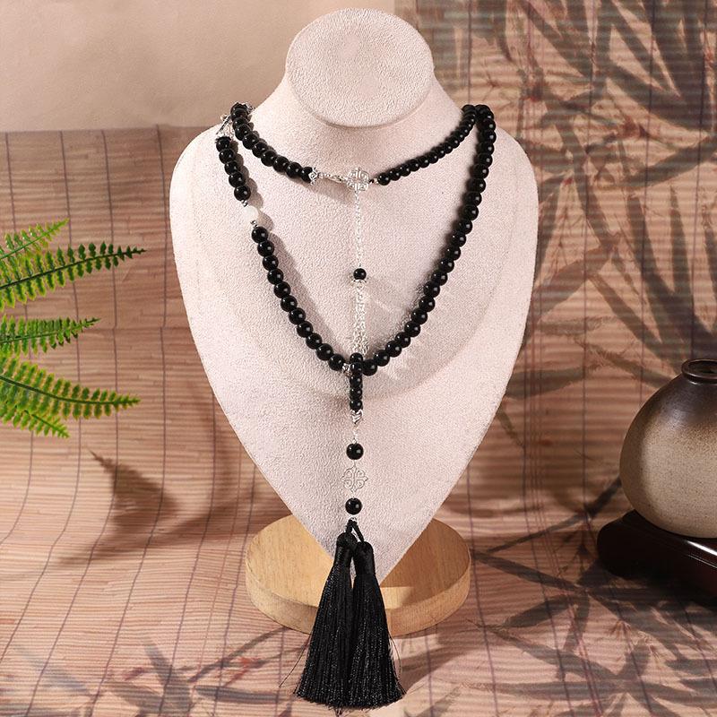 Directamente de fábrica, nuevas coronas de cuentas negras chinas, cadena colgante, cadena de suéter retro, accesorios antiguos de cheongsam Hanfu