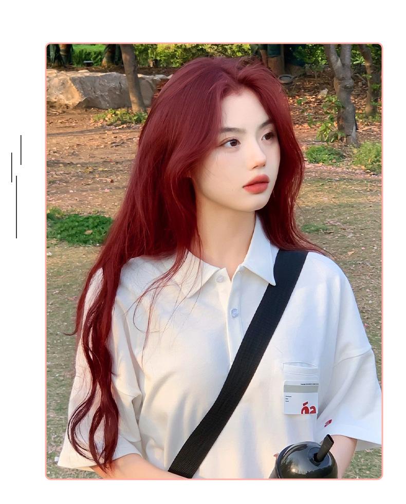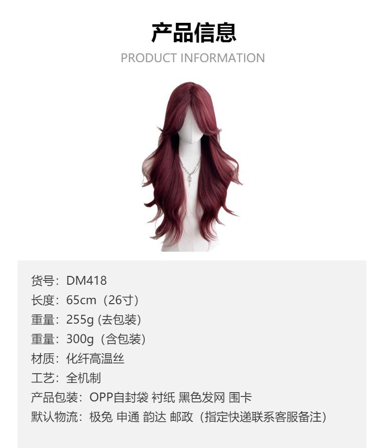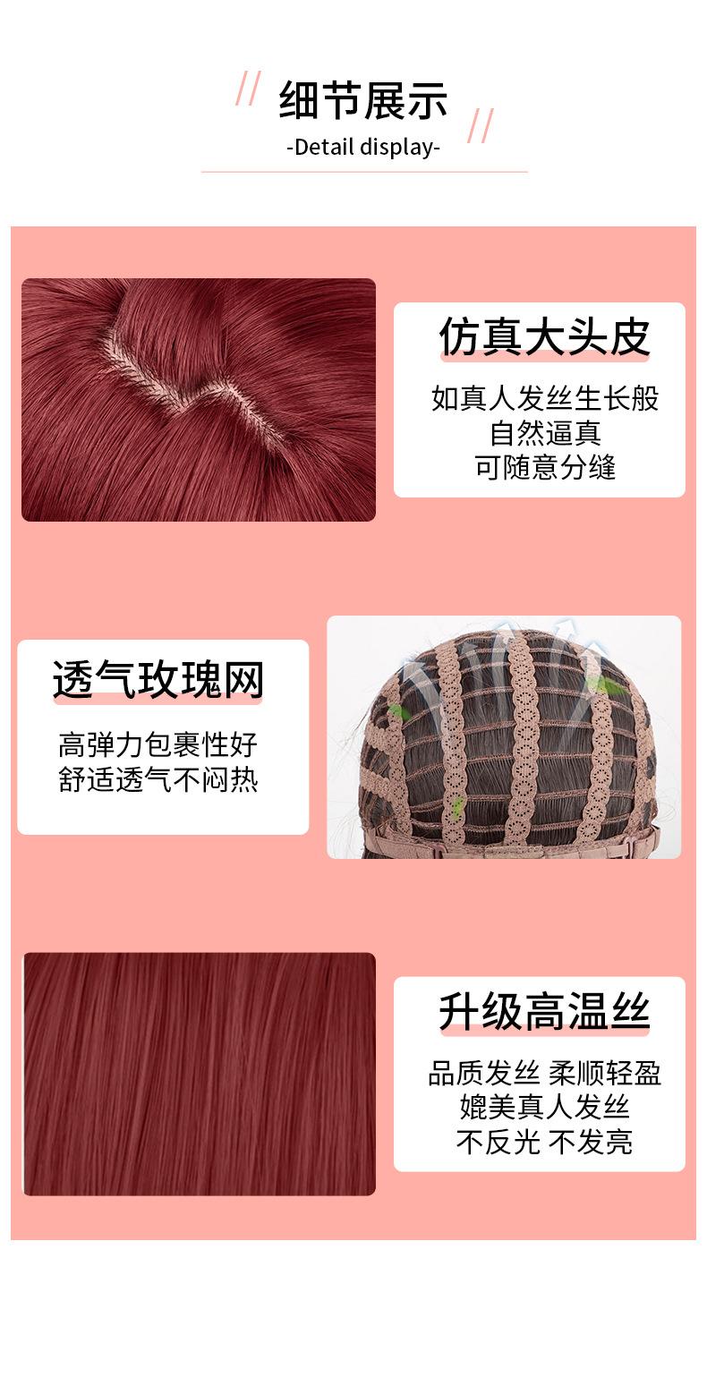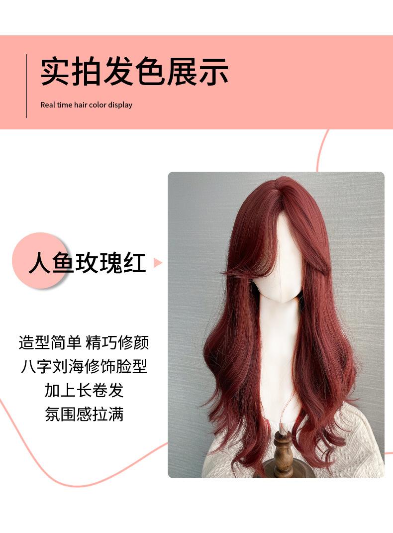 Compra Peluca roja frambuesa para mujer, corte en S, abertura media, flequillo de ocho caracteres, ondas grandes, cabello largo y rizado, cabello de simulación natural, cobertura total. al por mayor en Joom.pro
