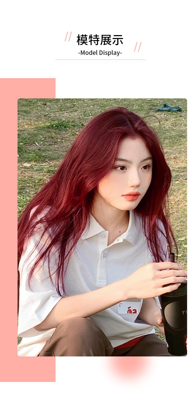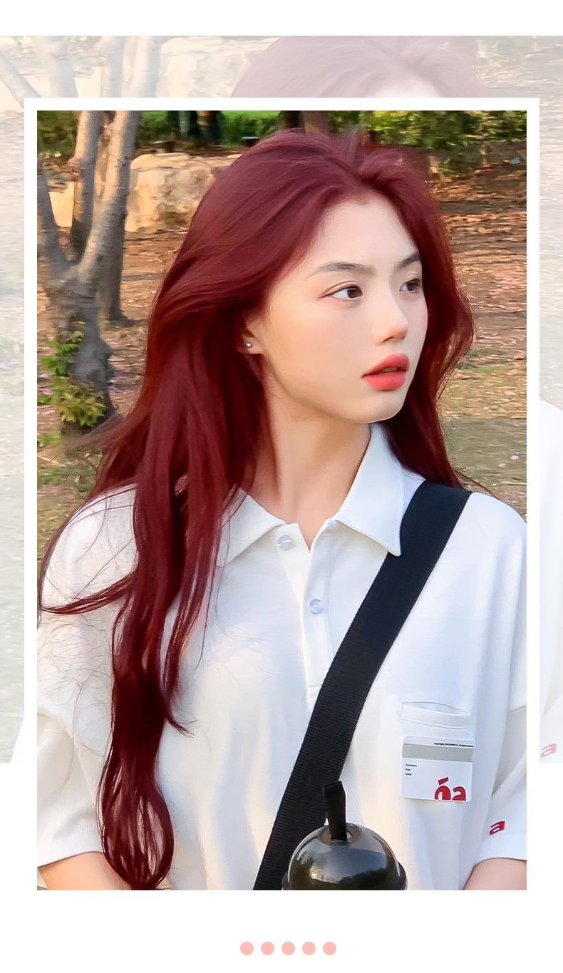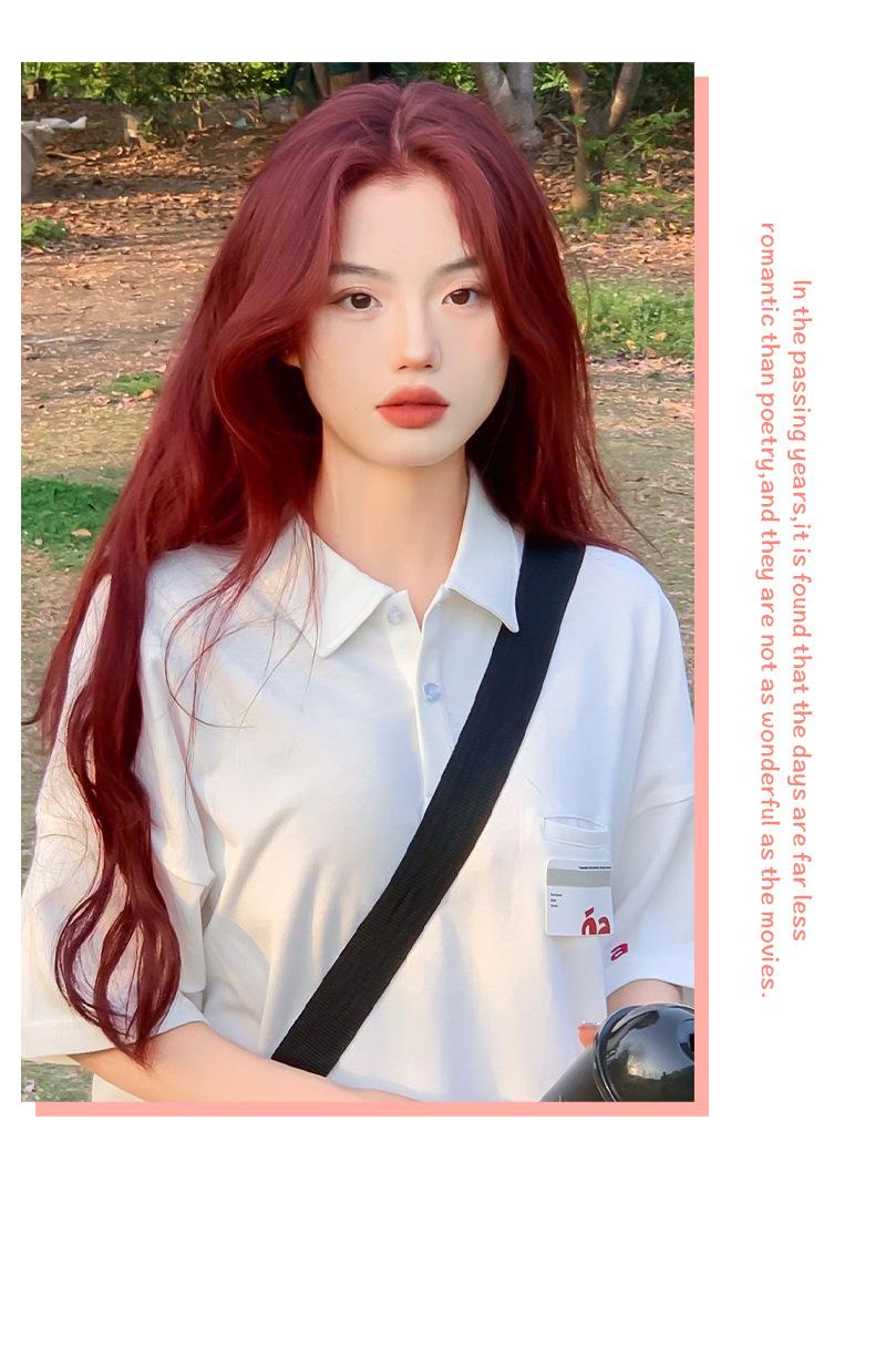 Compra Peluca roja frambuesa para mujer, corte en S, abertura media, flequillo de ocho caracteres, ondas grandes, cabello largo y rizado, cabello de simulación natural, cobertura total. al por mayor en Joom.pro
