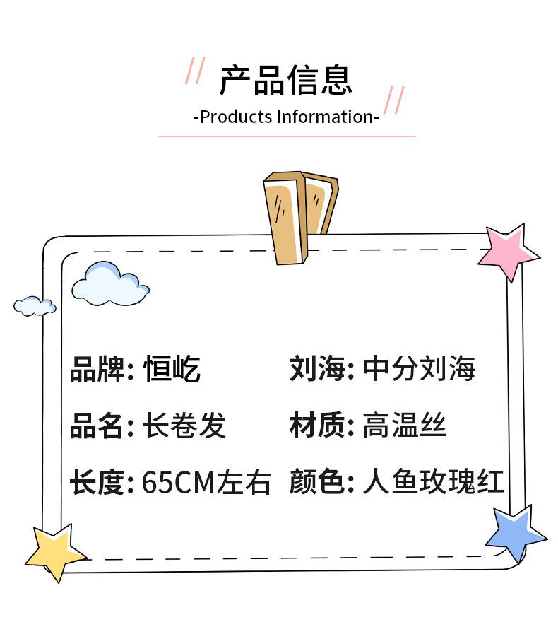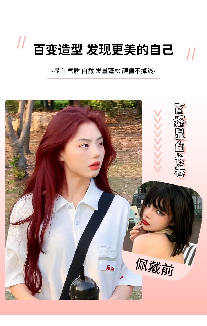 Peluca roja frambuesa para mujer, corte en S, abertura media, flequillo de ocho caracteres, ondas grandes, cabello largo y rizado, cabello de simulación natural, cobertura total.