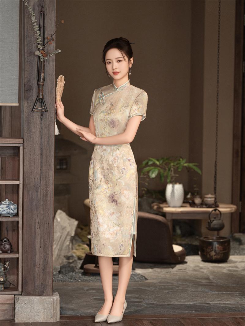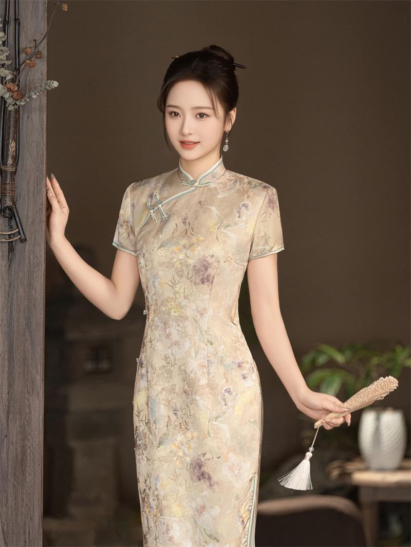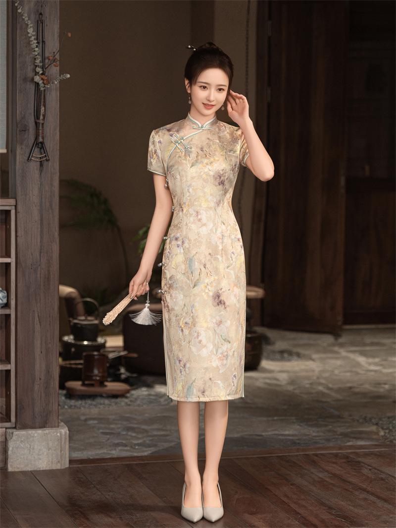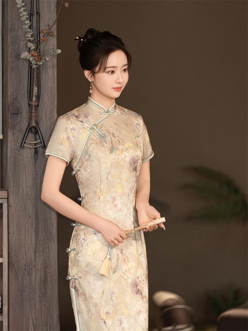 Características:Cheongsam nuevo, tela, textura suave, buena caída, no se encoge, no se decolora, no hace bolitas, ligera elasticidad, más característico de la nación china, bienvenido a comprar,
