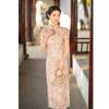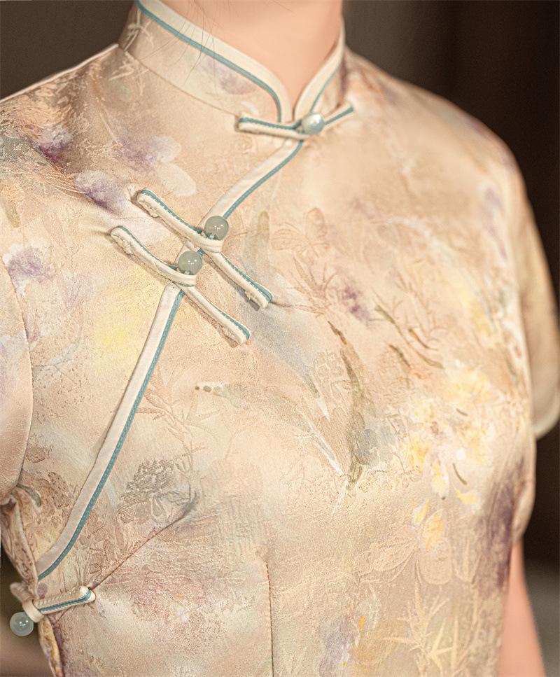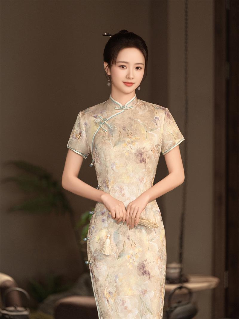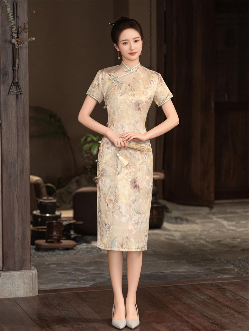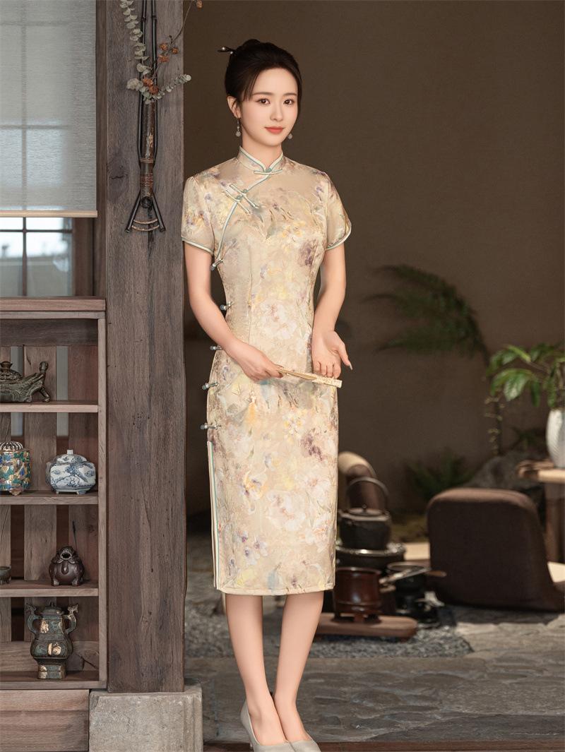 Características:Cheongsam nuevo, tela, textura suave, buena caída, no se encoge, no se decolora, no hace bolitas, ligera elasticidad, más característico de la nación china, bienvenido a comprar,