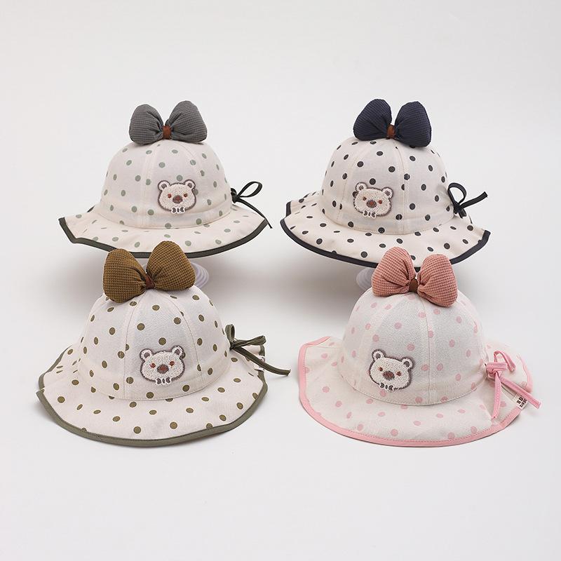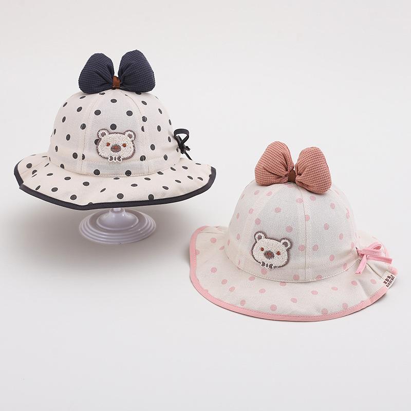 Sombrero de pescador para niña de 1 a 3 años, bonito sombrero de pescador con lazo de dibujos animados de oso, sombrero de verano para el sol, sombrero de lavabo para niños.