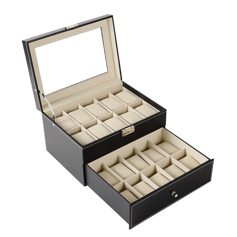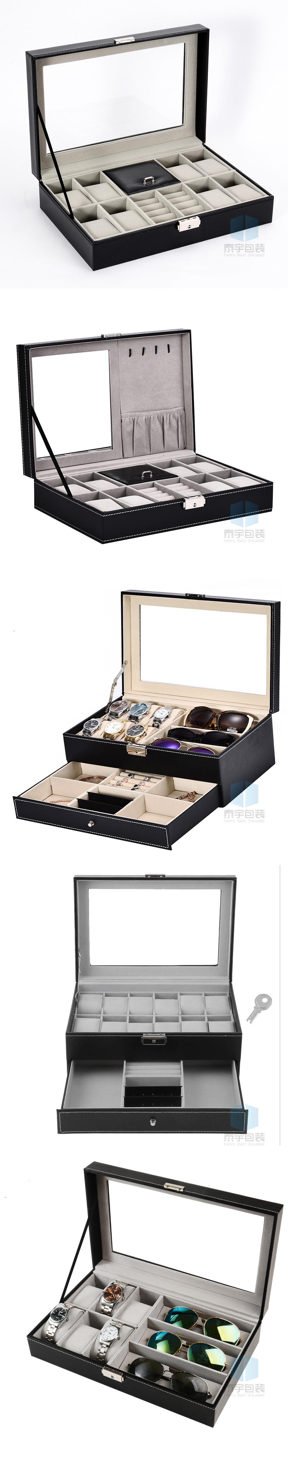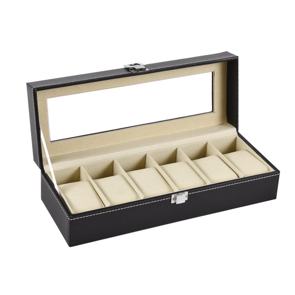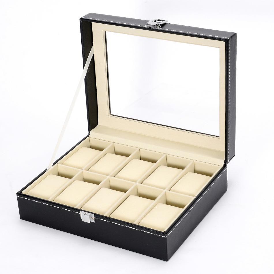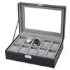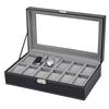 Caja de reloj de PU con 10 compartimentos para joyas, caja de exhibición para relojes, caja de almacenamiento para 6, 12, 20 y 24 relojes