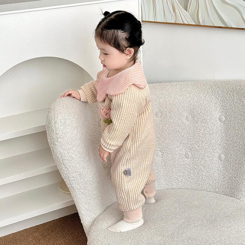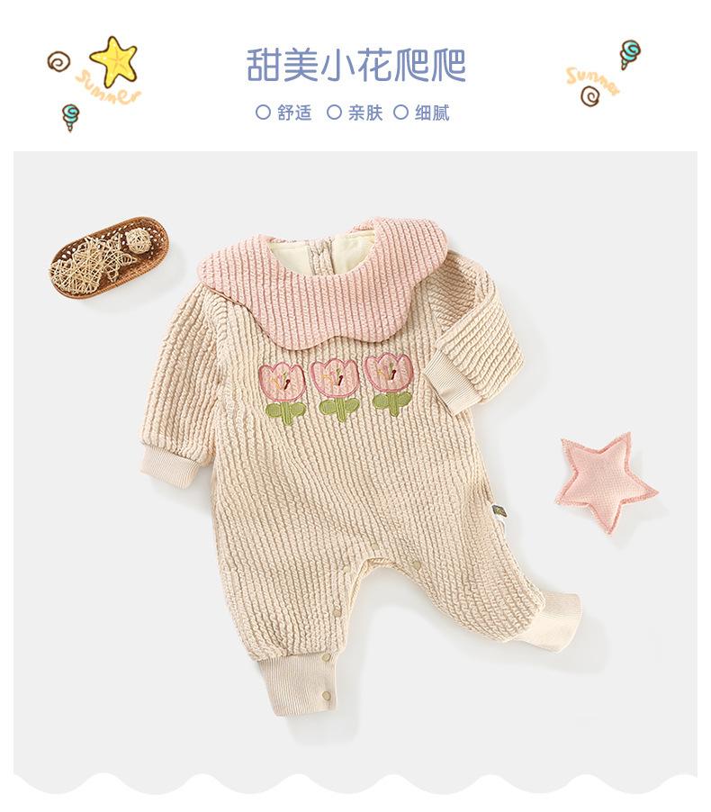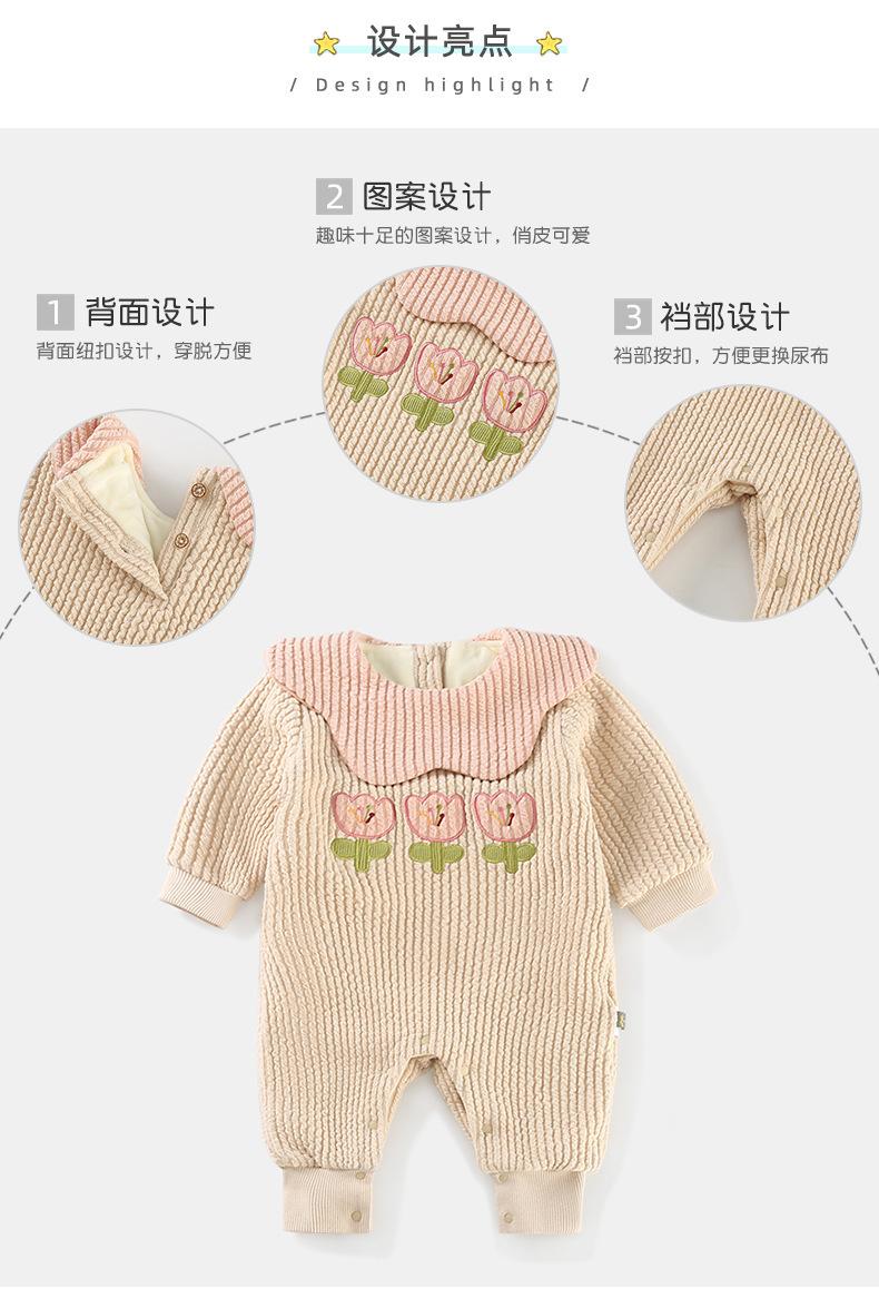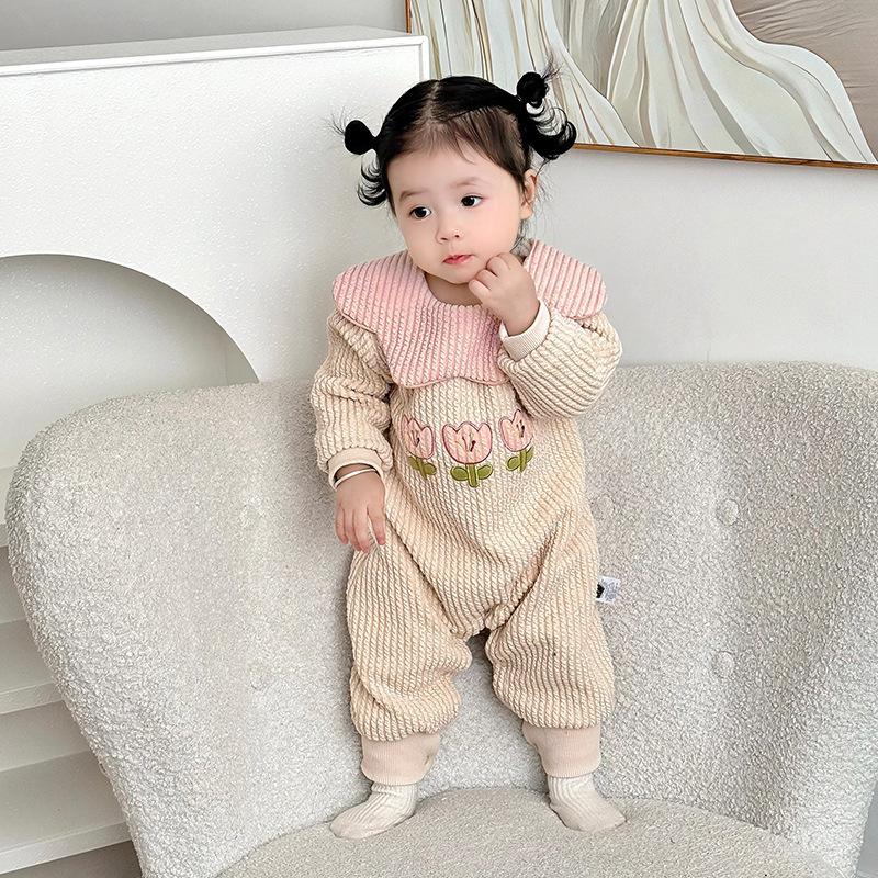 Mameluco de Invierno para Bebé Estilo Coreano Tres Flores Engrosado Ropa para Bebé Niña Ropa para Recién Nacido Ropa para Bebé