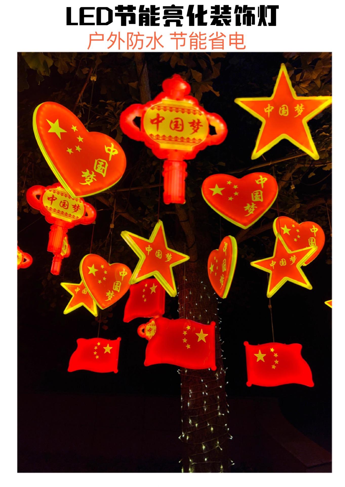 Luz de Corazón LED Luz Decorativa de Vacaciones Exterior Impermeable Luminosa Estrella de Cinco Puntas Luz de Bandera Roja Linterna Colgante con Forma de Árbol de Año Nuevo