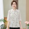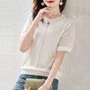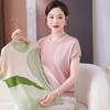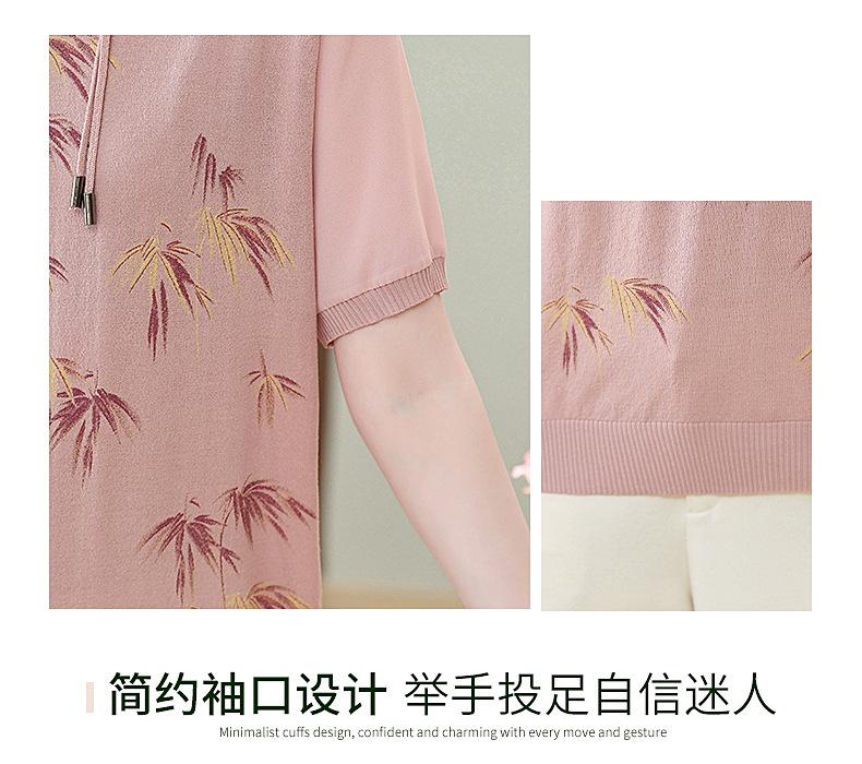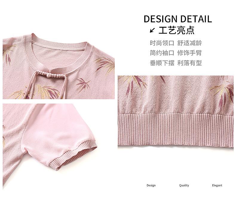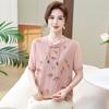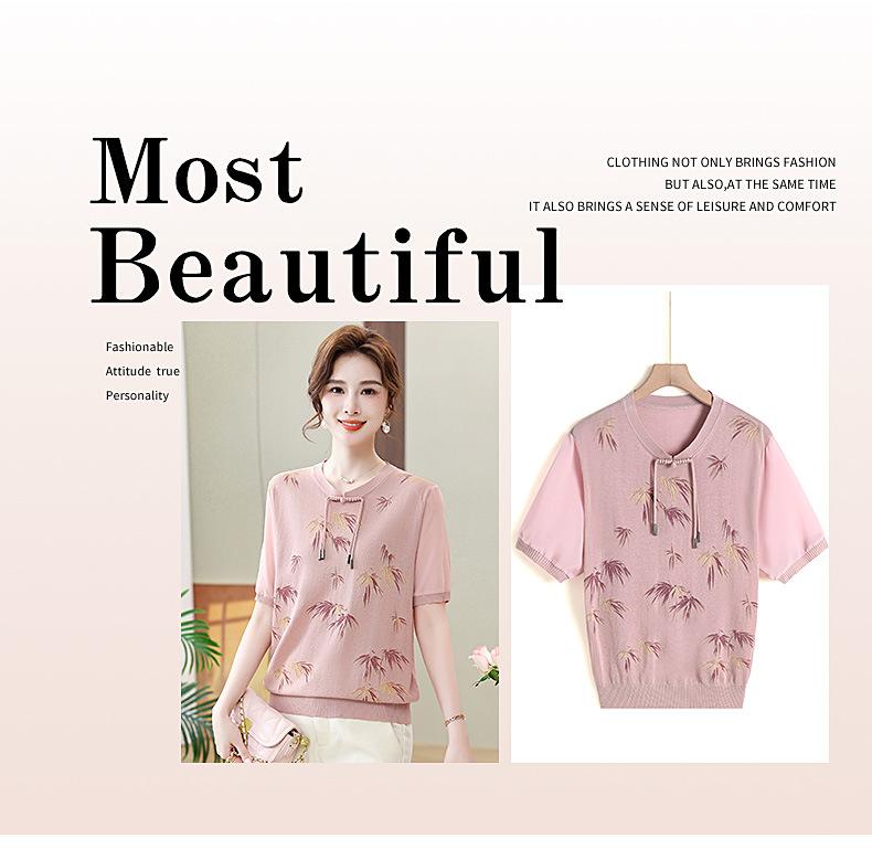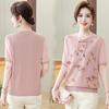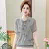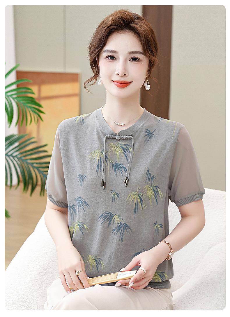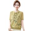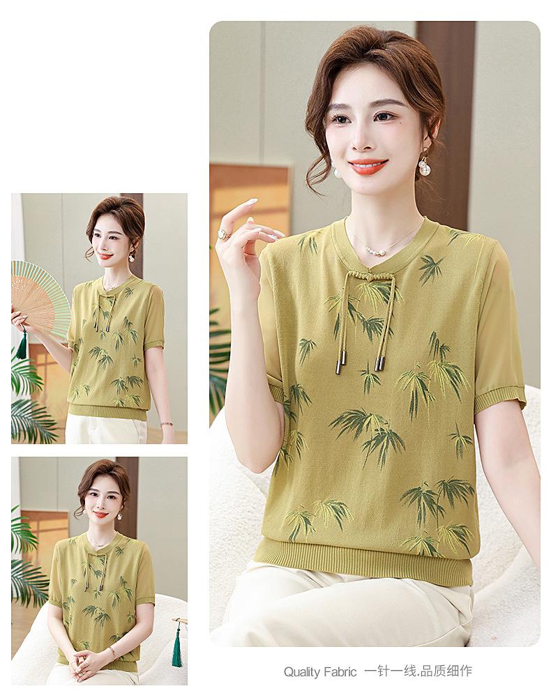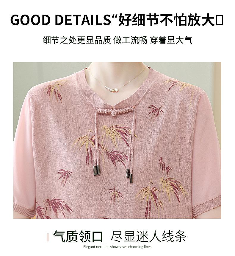 2024 Nuevo Verano Estilo Nacional para Madres Camisa Tejida de Seda Helada Moda para Mujeres de Mediana Edad y Mayores Camiseta de Manga Corta Top de Verano