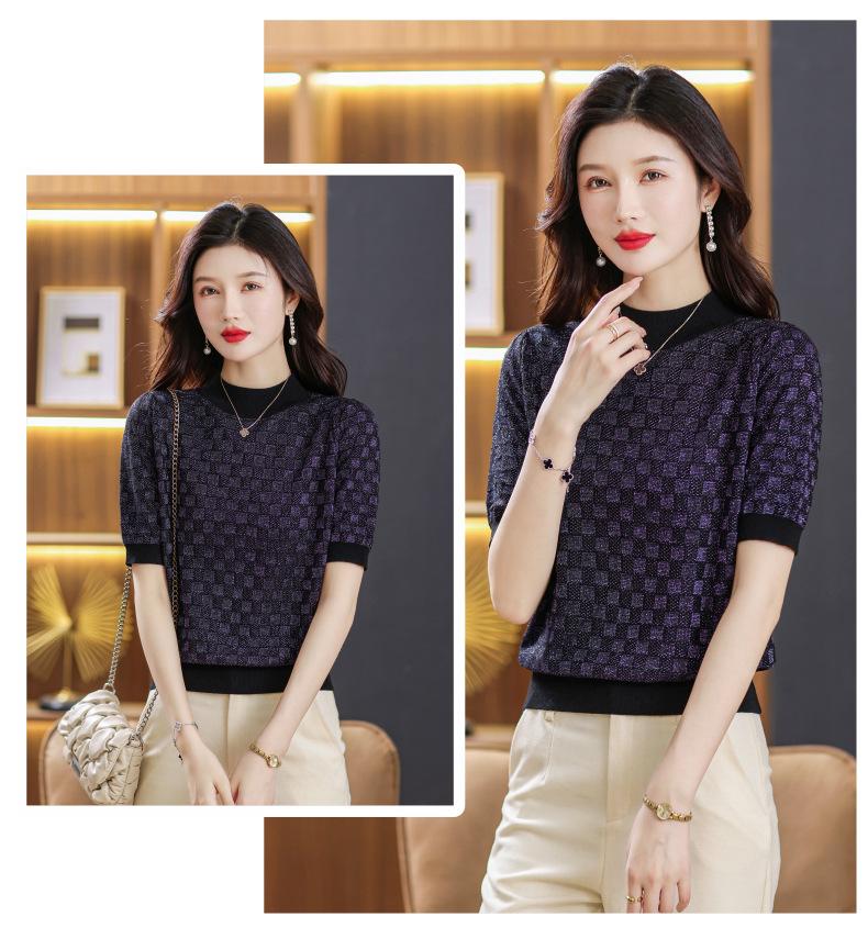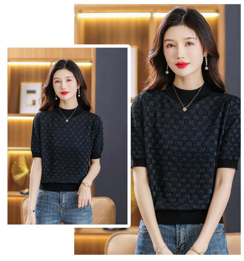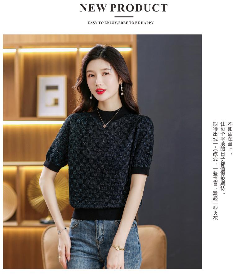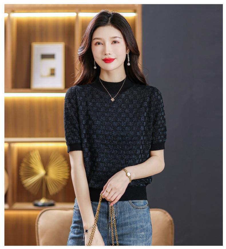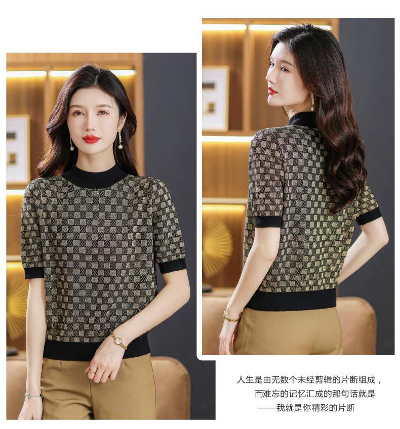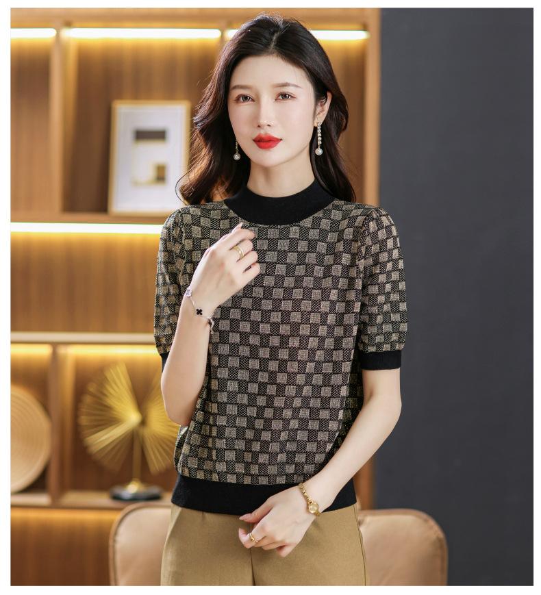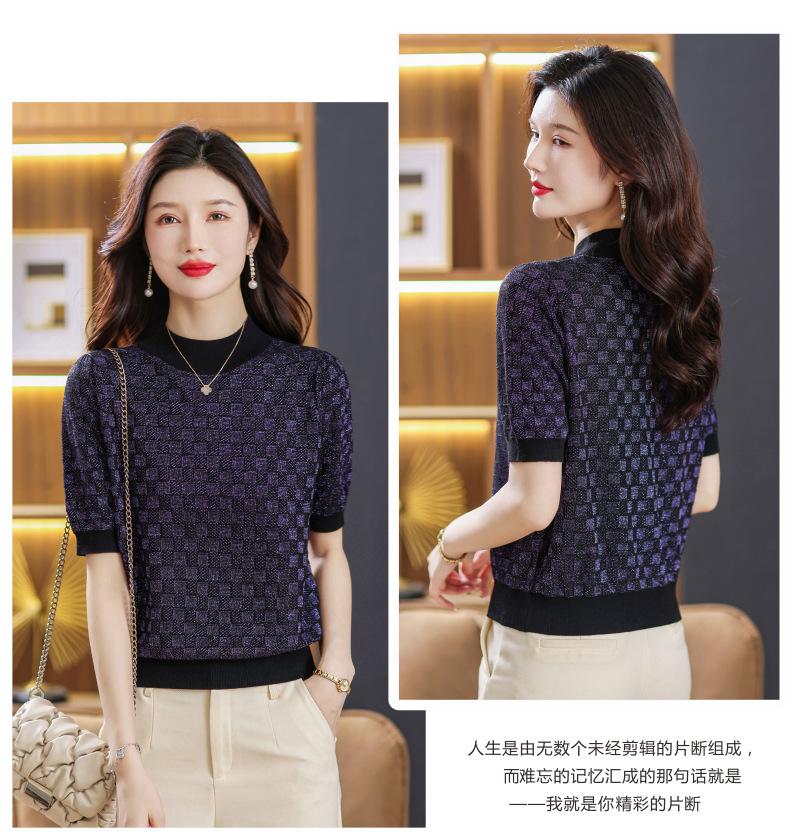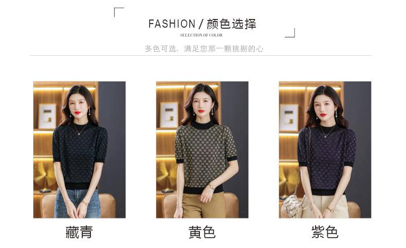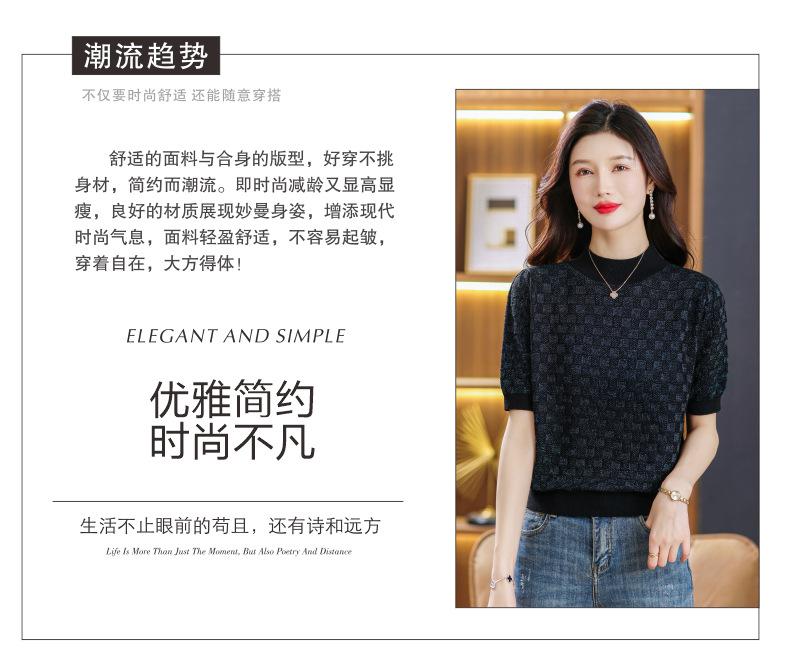 2024 madre verano hielo seda manga corta estilo occidental medio cuello alto top nuevo 40 mujeres de mediana edad y mayores moda de verano delgada