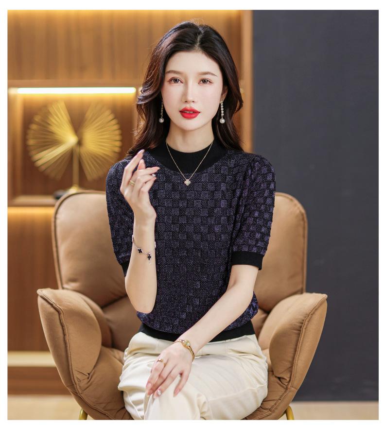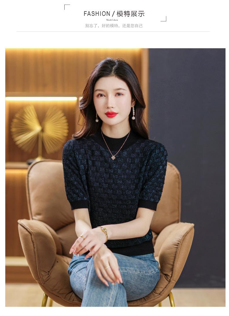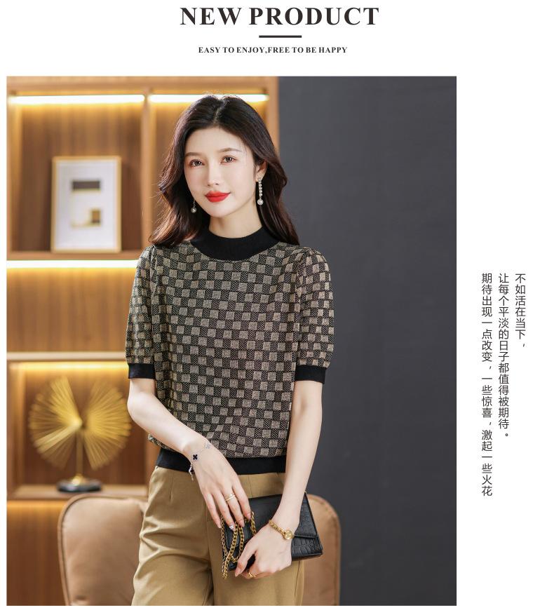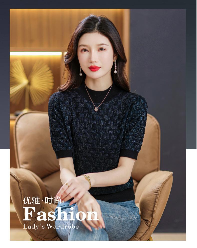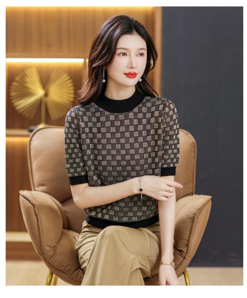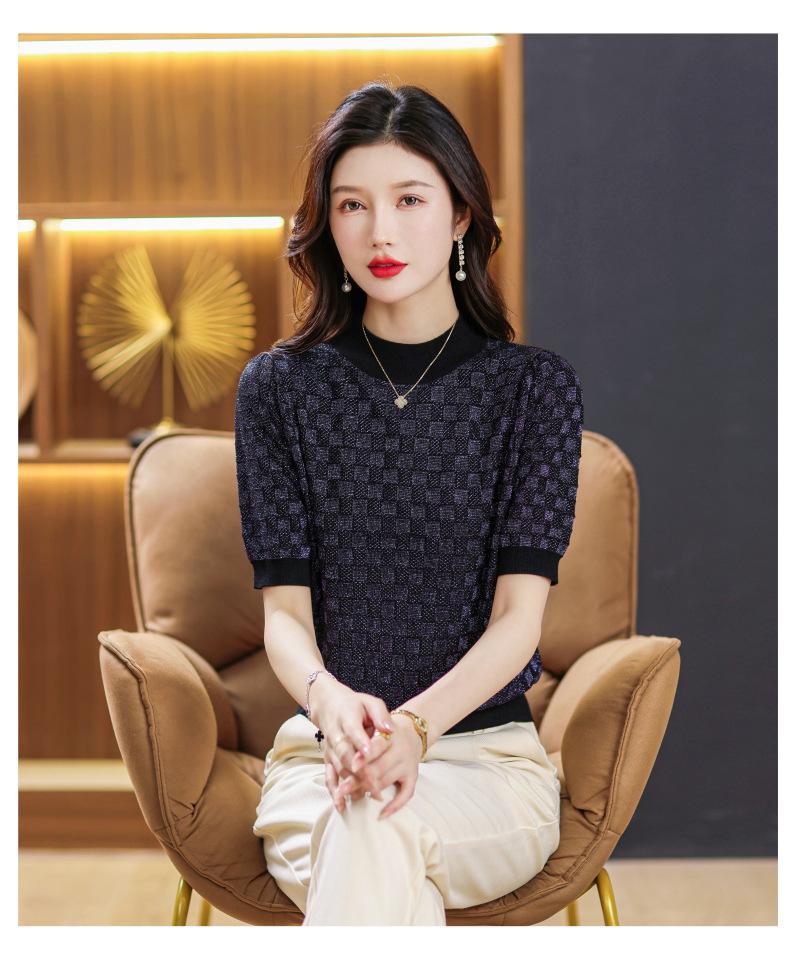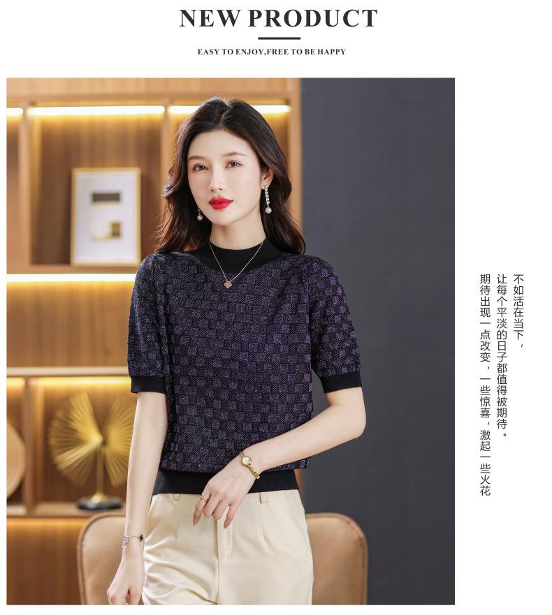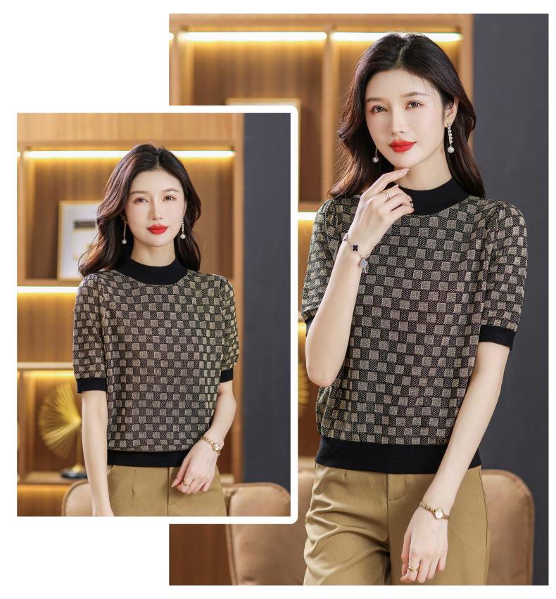 2024 madre verano hielo seda manga corta estilo occidental medio cuello alto top nuevo 40 mujeres de mediana edad y mayores moda de verano delgada