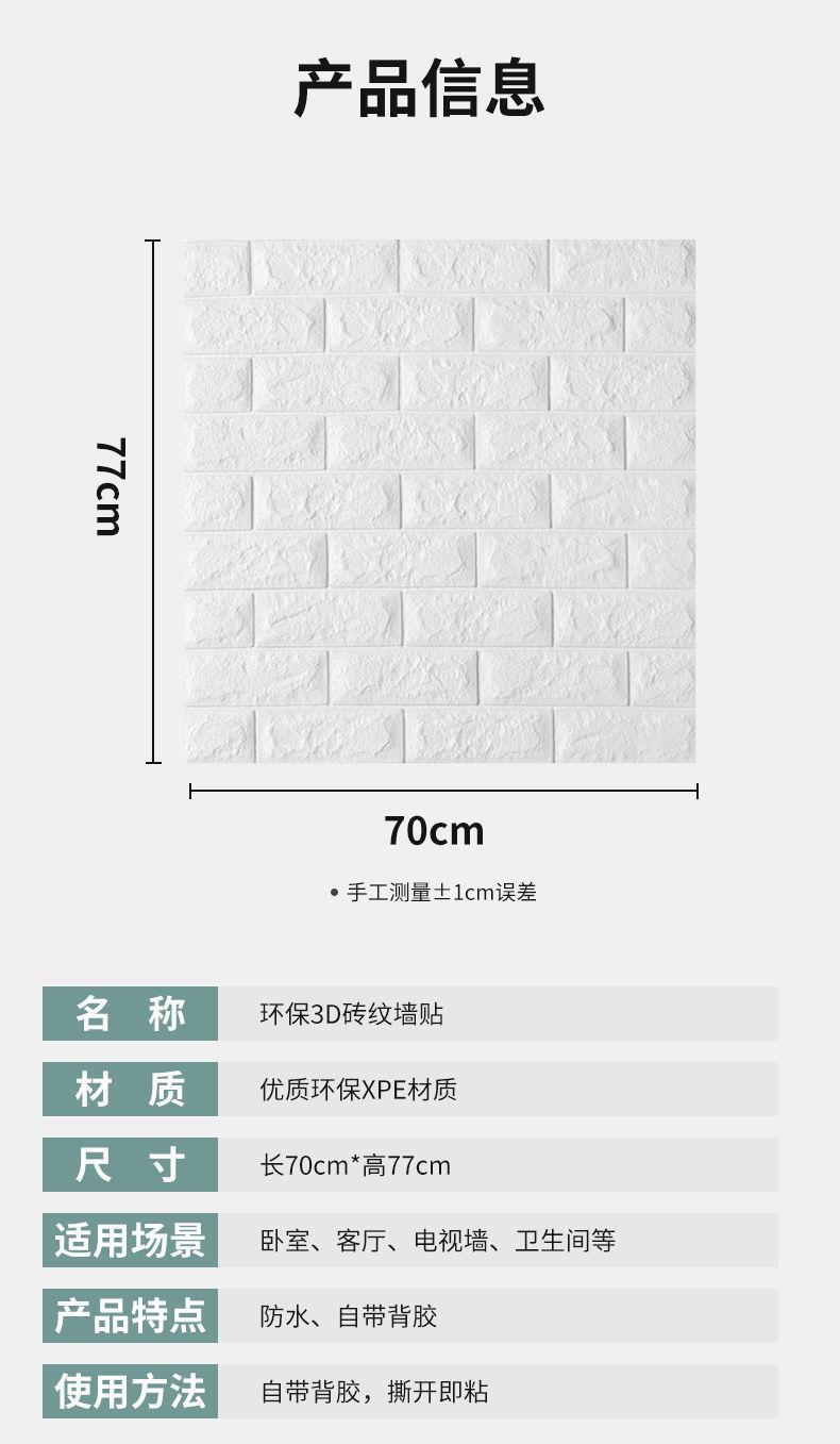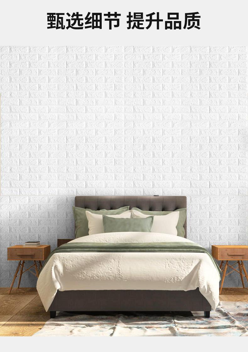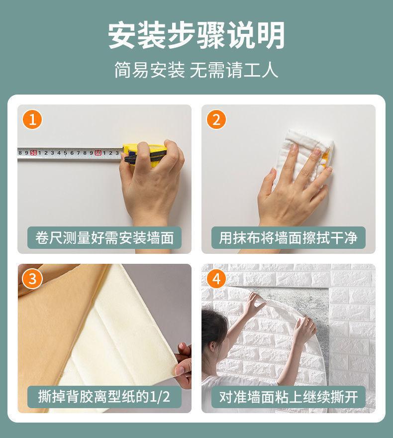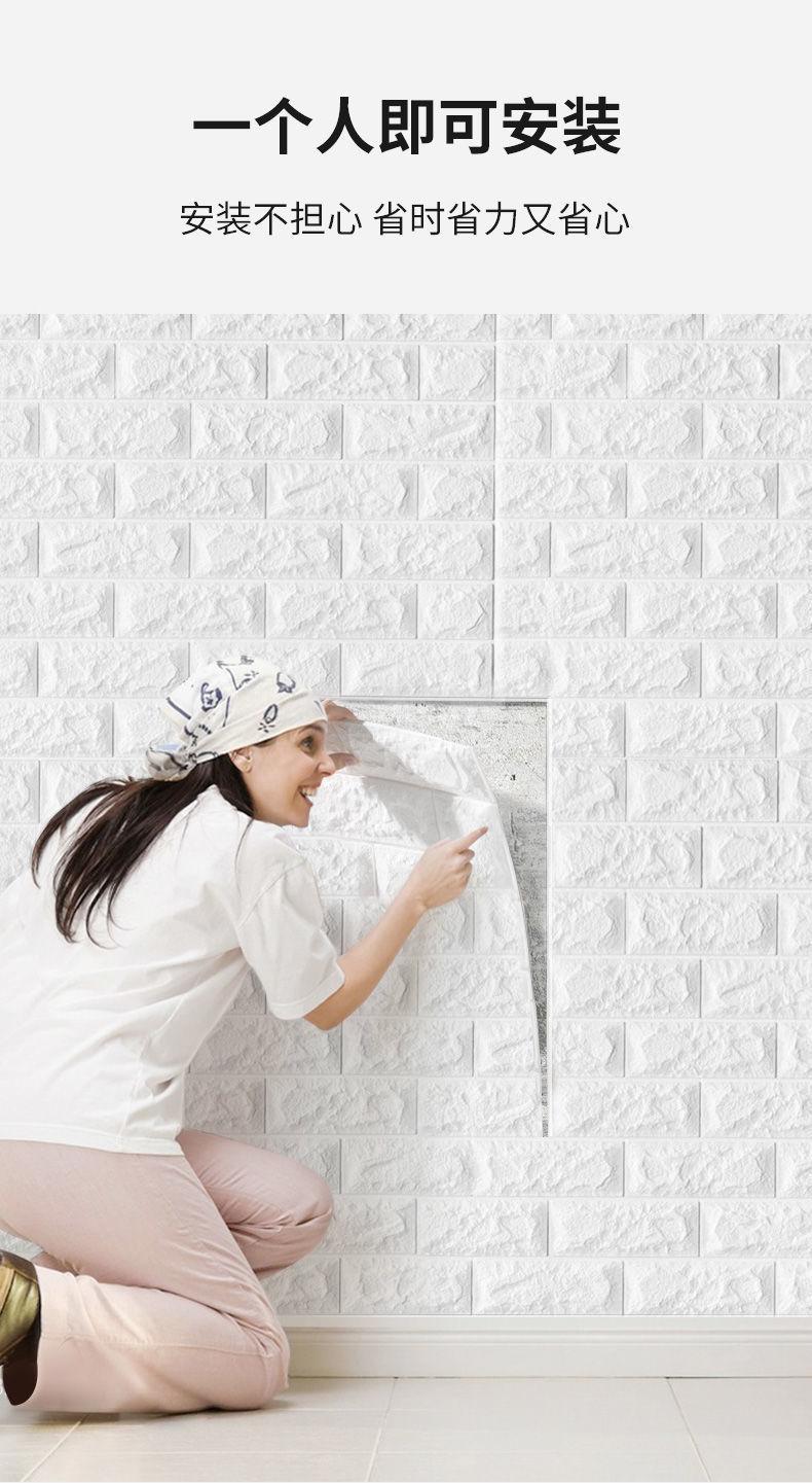 2: Los adhesivos de pared están hechos de material xpe de paquete blando de espuma de alta densidad, que es insonorizado, aislante térmico, anticolisión, impermeable y el frente se puede fregar