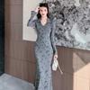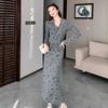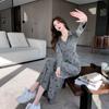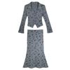 Conjunto de dos piezas de manga larga con estampado de flores y mariposas, estilo coreano, ajustado, para otoño de 2024