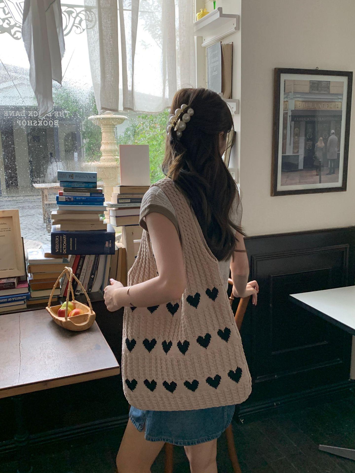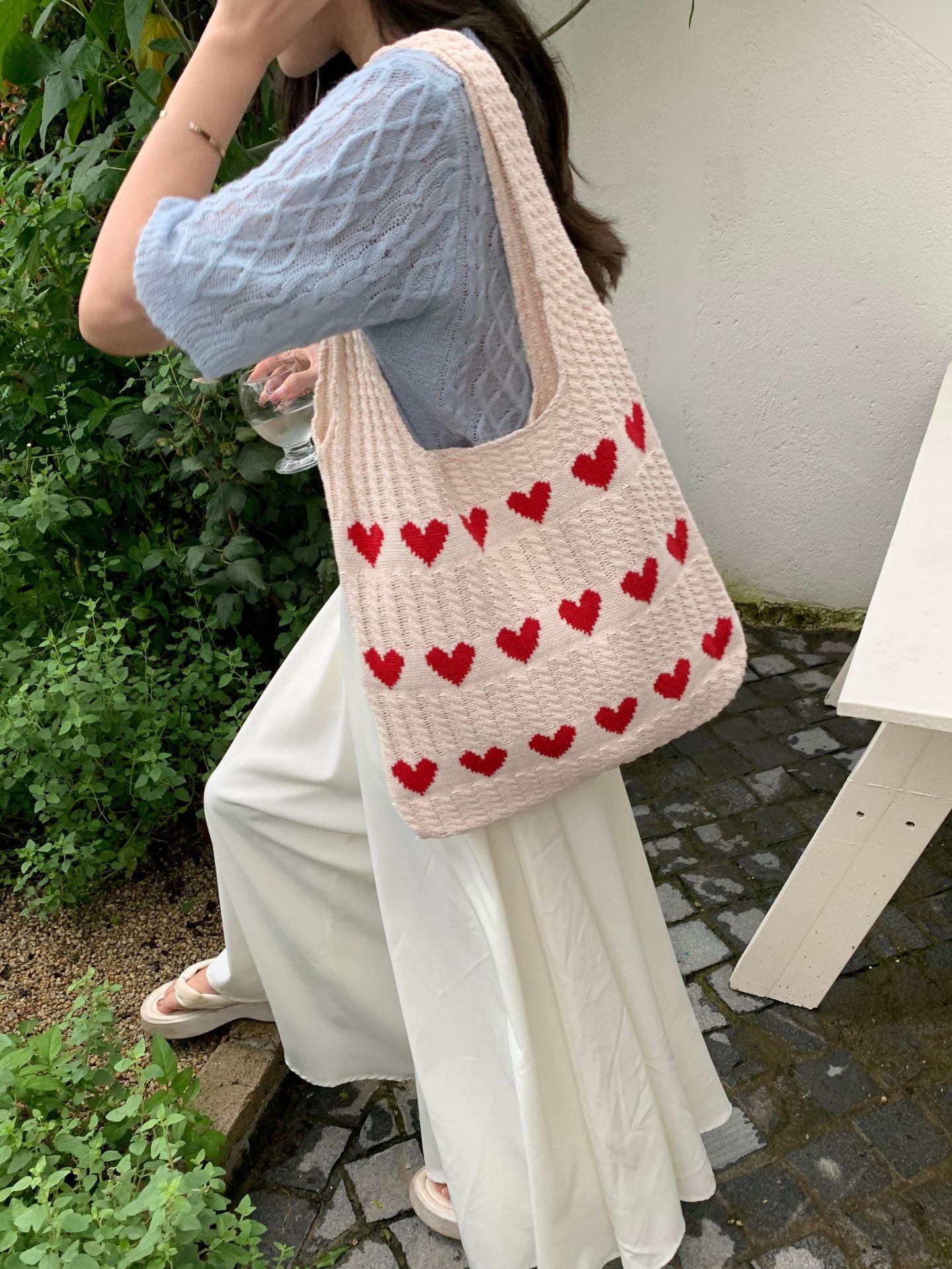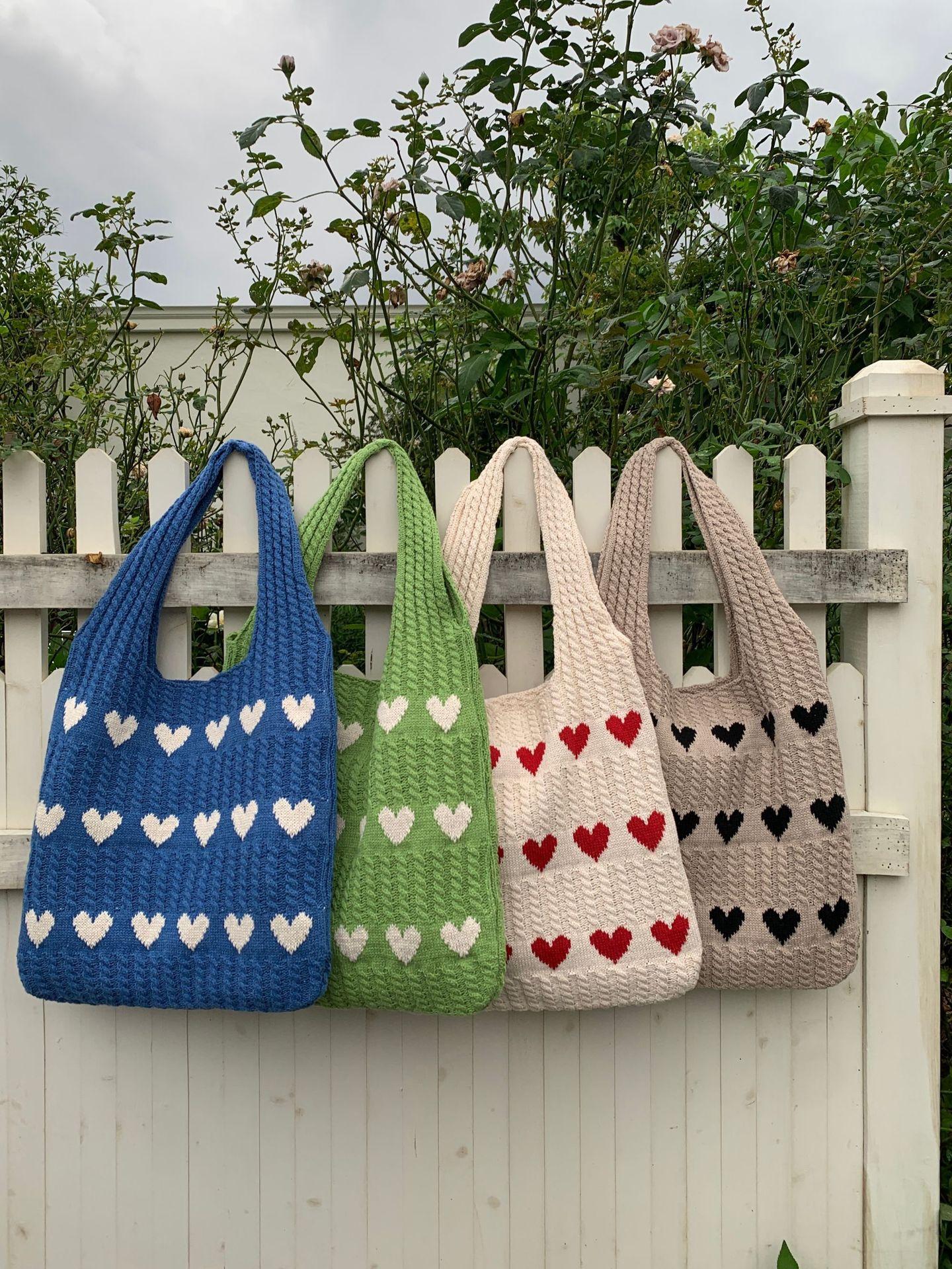 Bolsa de compras con diseño de dopamina verde, bolso de punto, bolso de lana de gran capacidad para mujer, bolso de mano para estudiantes universitarios