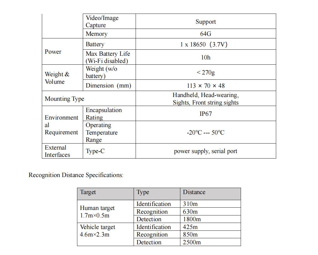 Se puede usar para observación y búsqueda de objetivos en condiciones nocturnas, de poca luz, sin luz, clima severo y escenas complejas, de tamaño pequeño, ligero, imagen clara, batería de larga duración, se puede llevar en la cabeza, de mano, montado en la parte delantera y otros métodos de uso. Adecuado para múltiples campos como inspección de seguridad, deportes al aire libre, exploración de campo, búsqueda y rescate, etc.