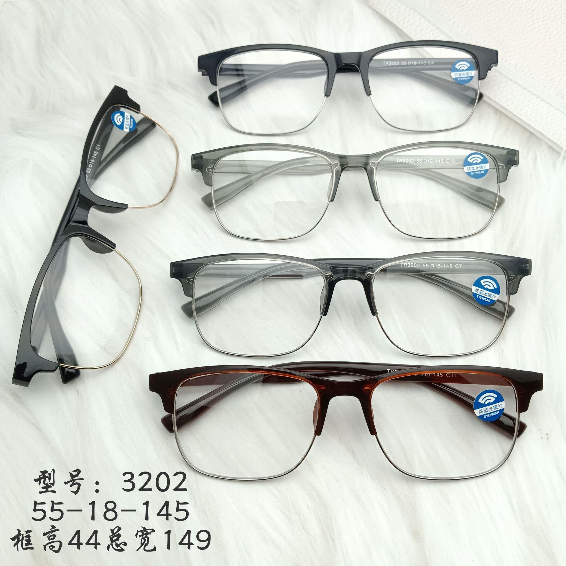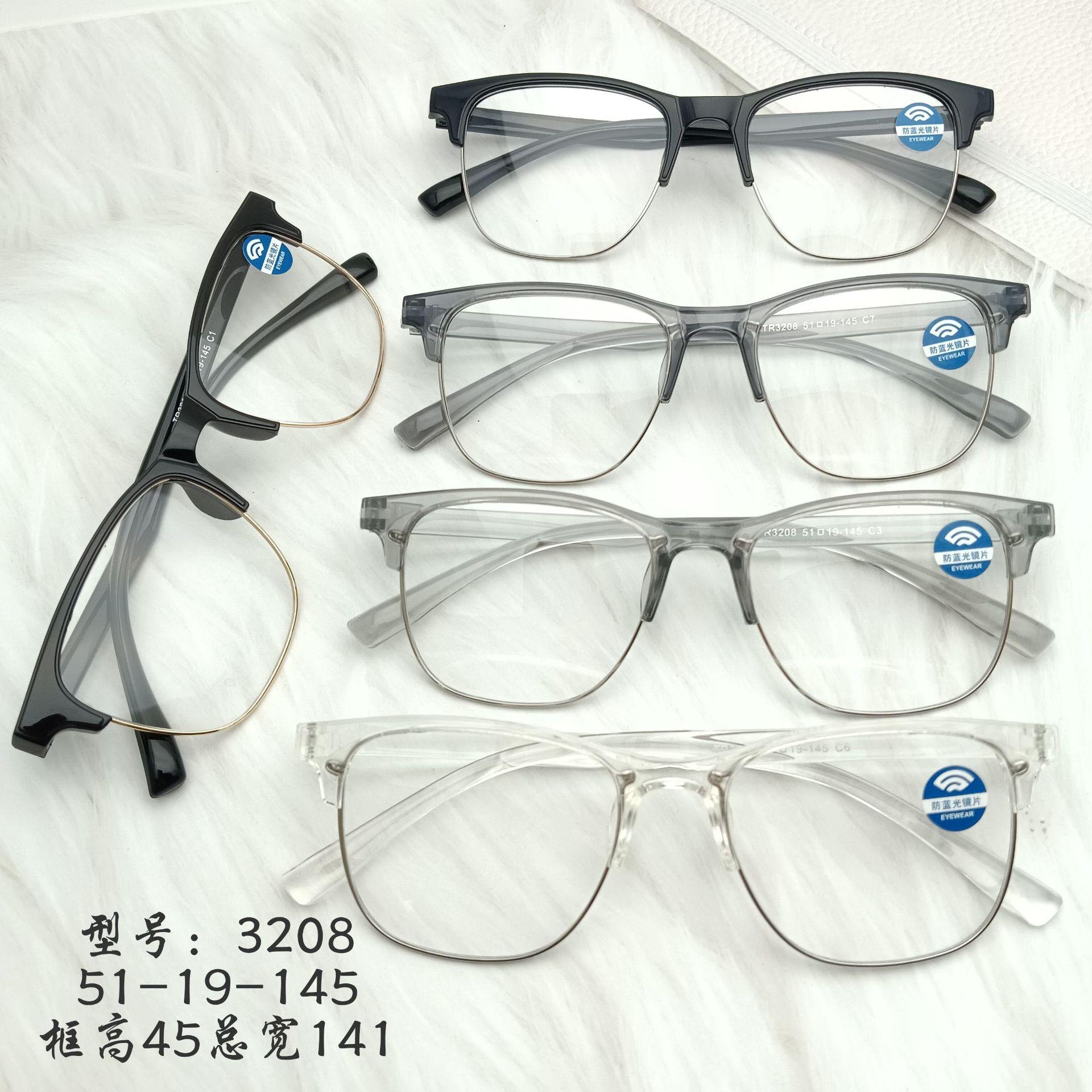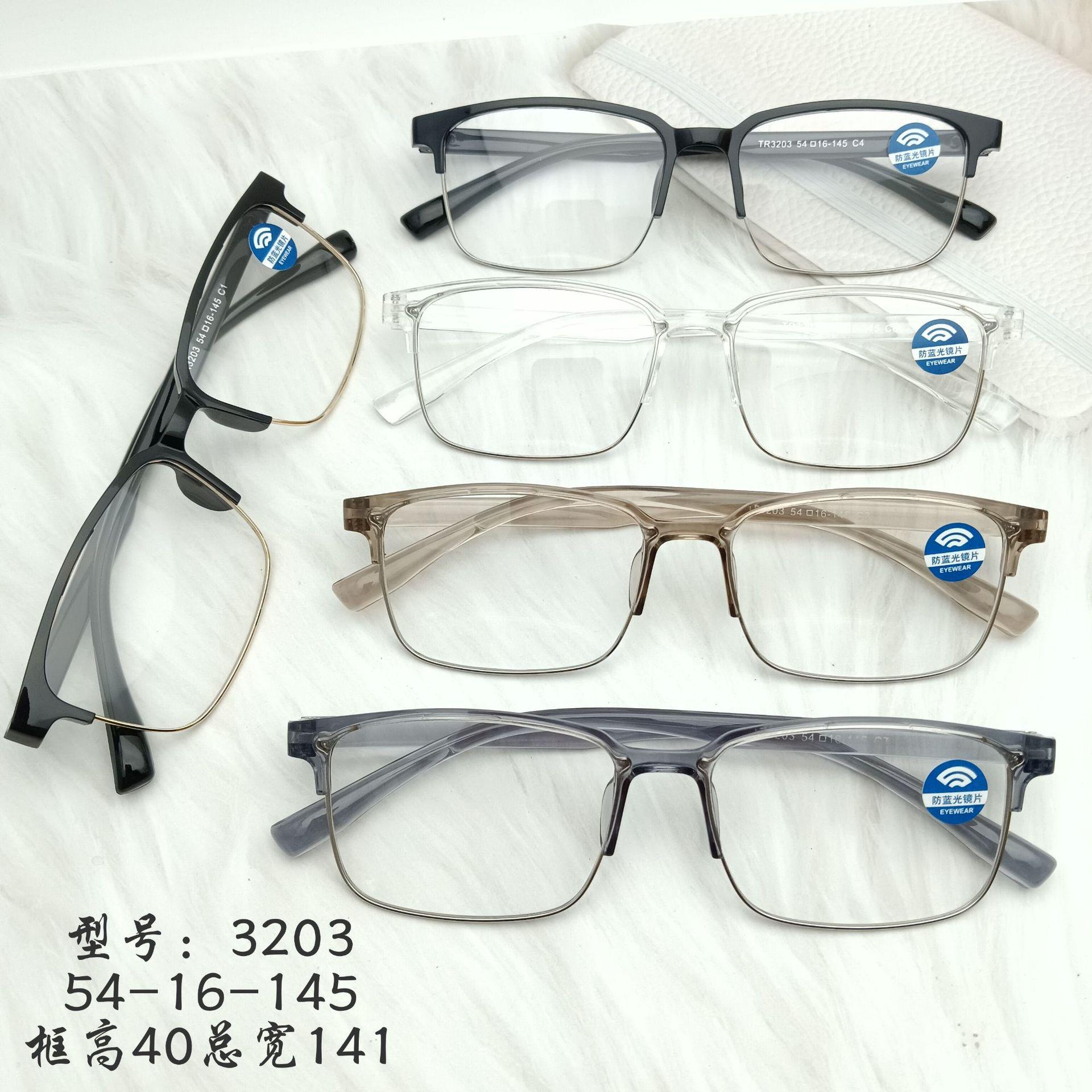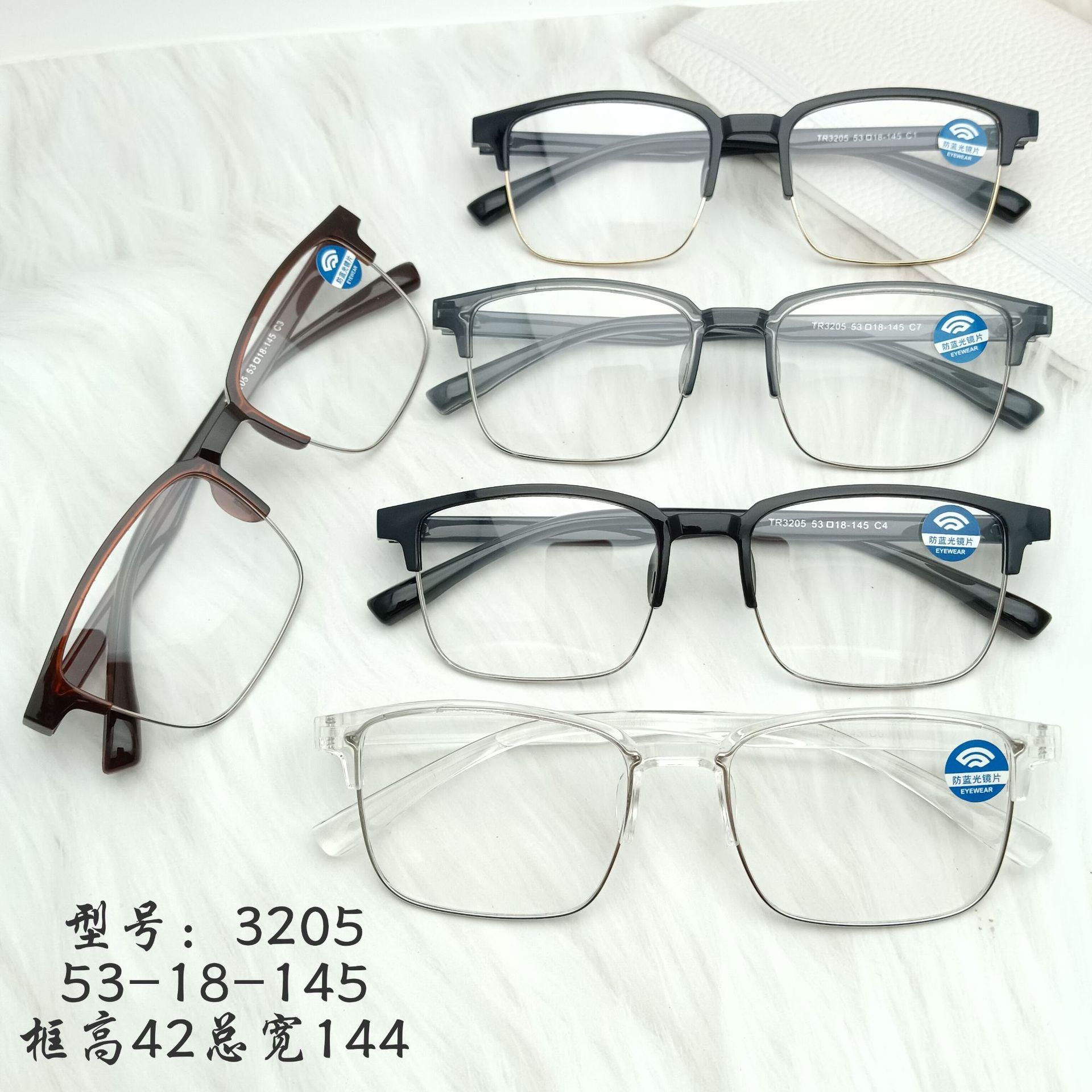 Nuevas gafas de negocios con montura para cejas, montura retro ultraligera TR90 con lentes planas anti-luz azul para miopía, venta al por mayor