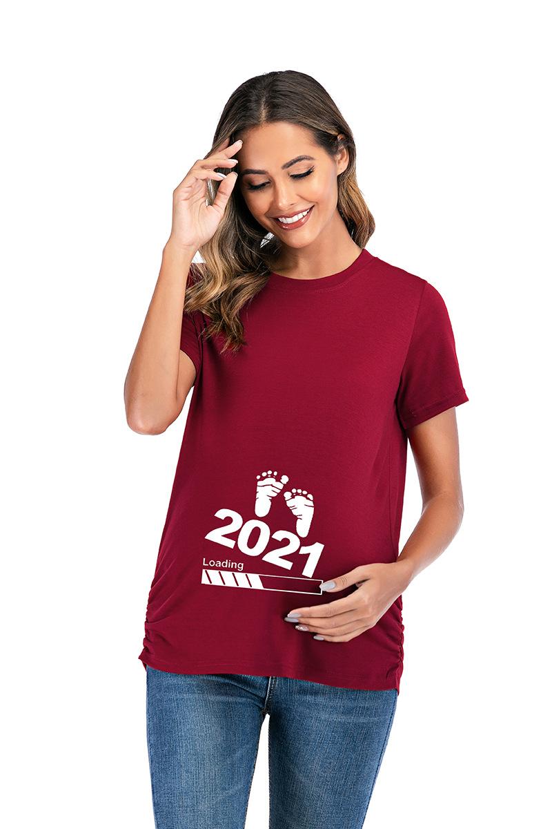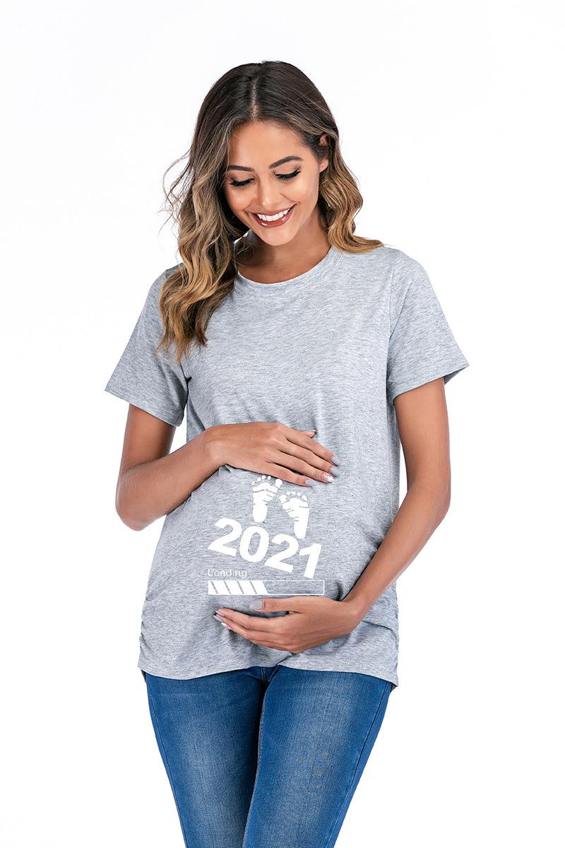 6165# Camiseta de maternidad de talla grande con estampado de pies europeos y americanos, nueva moda de verano
