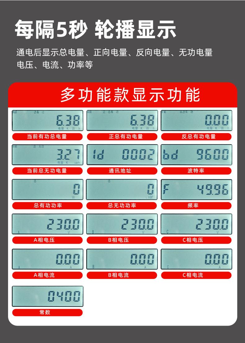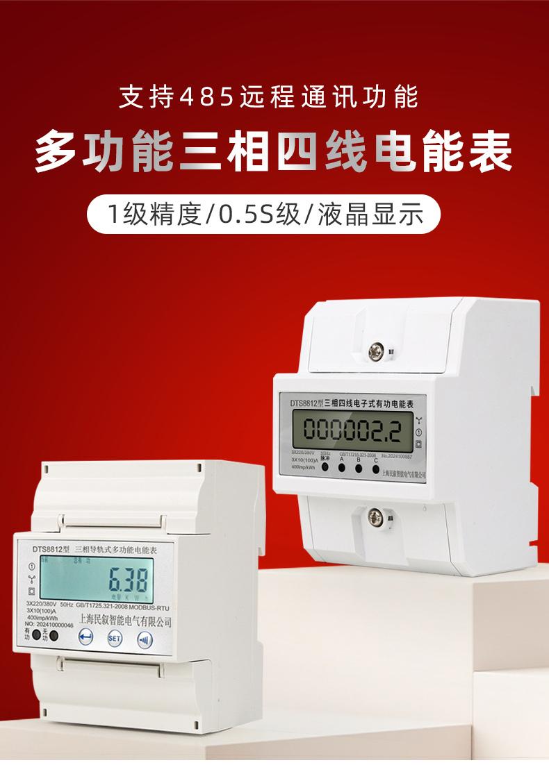 Medidor inteligente activo multifunción de riel de cuatro cables trifásico en miniatura 4P con comunicación remota RS485 y lectura de 380 V