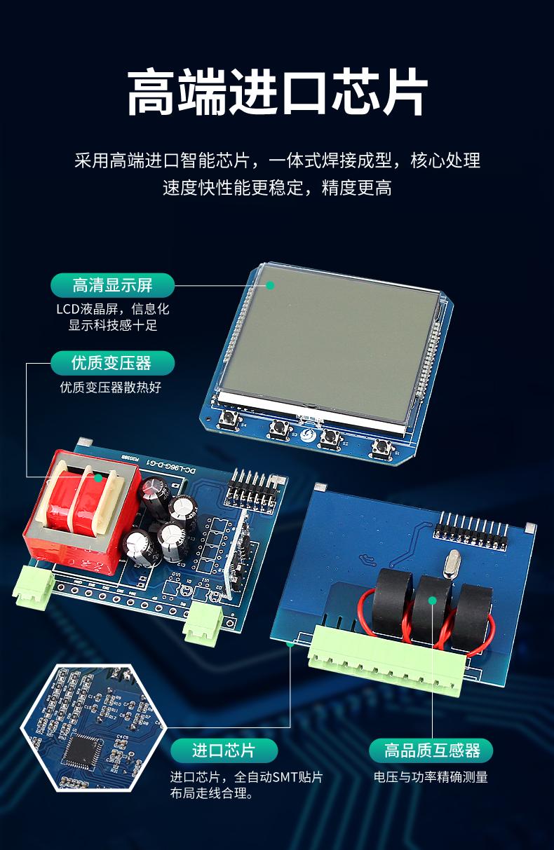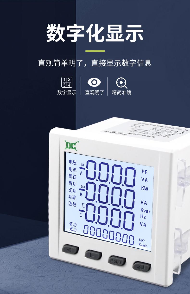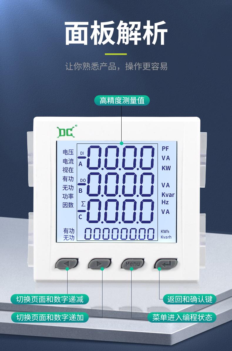 Medidor de potencia multifunción trifásico Dechuang 485 LCD de alta precisión, voltaje de corriente, frecuencia de potencia, número automático