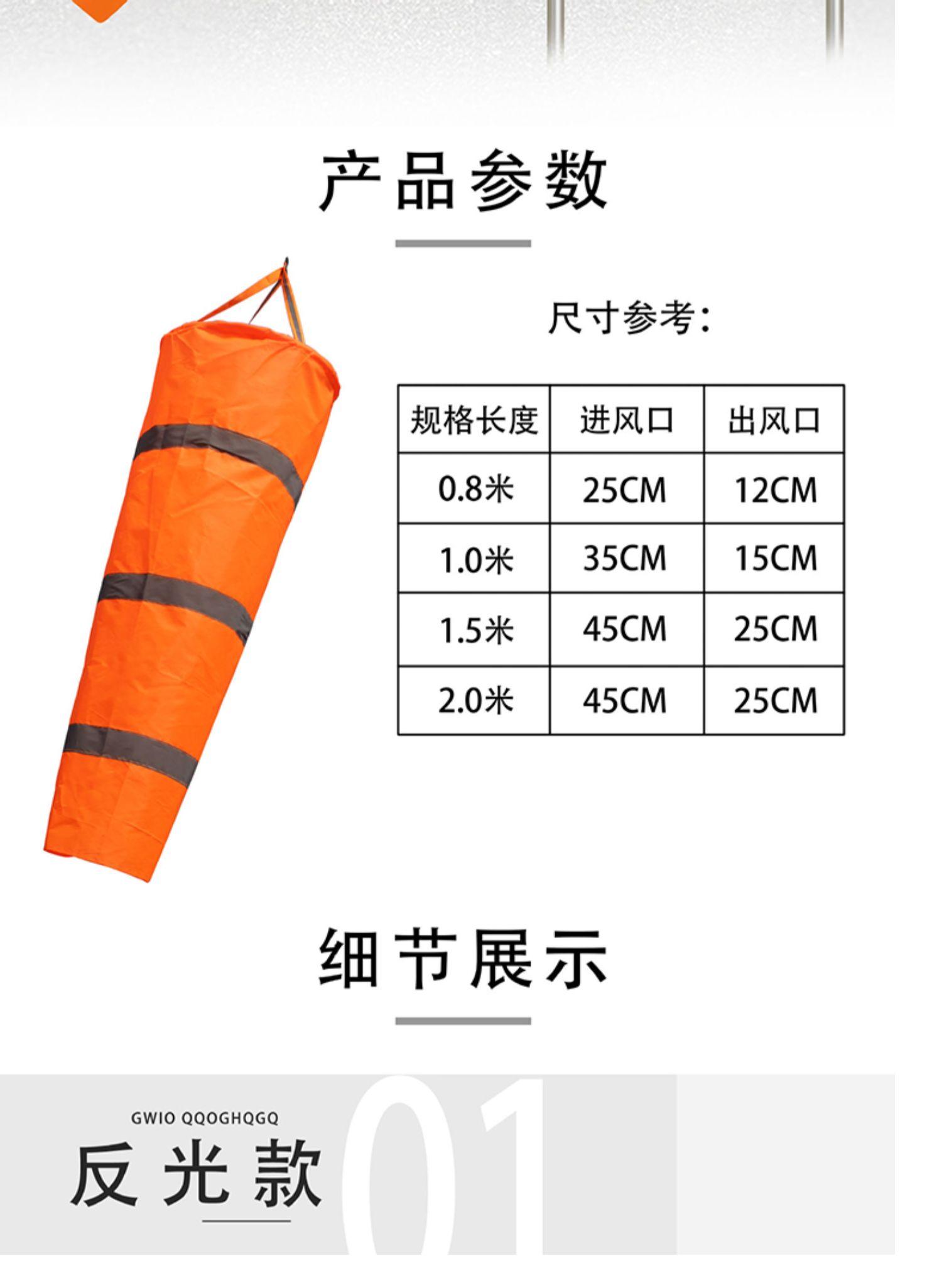 0.8m orange and white single wind directional bag, 1m orange and white single wind directional bag, 1.5m orang...