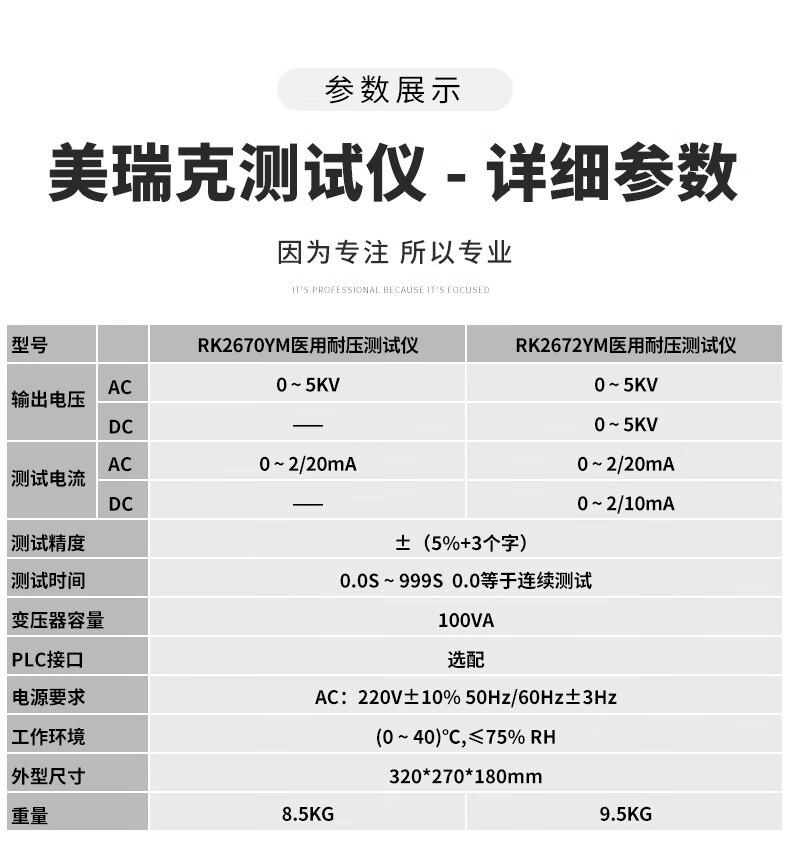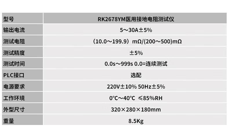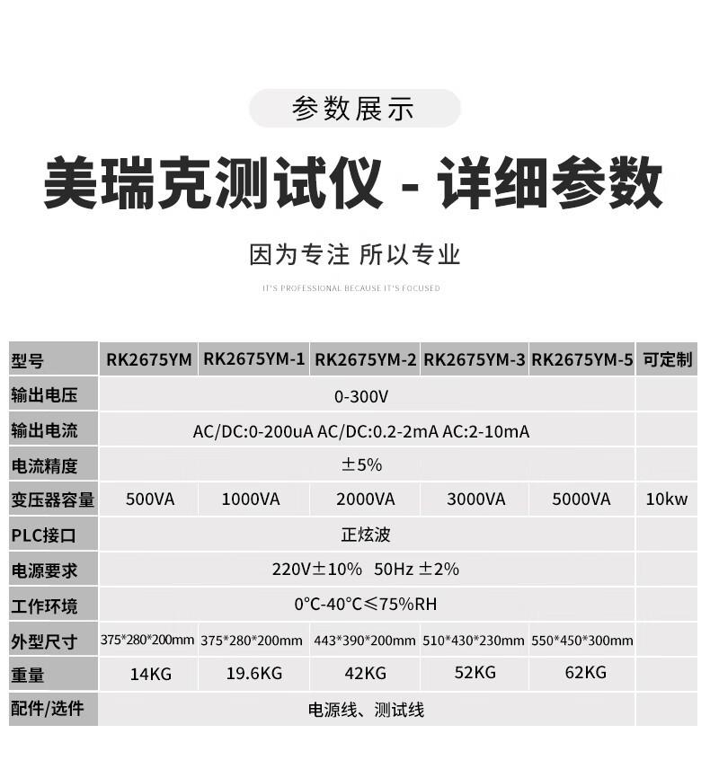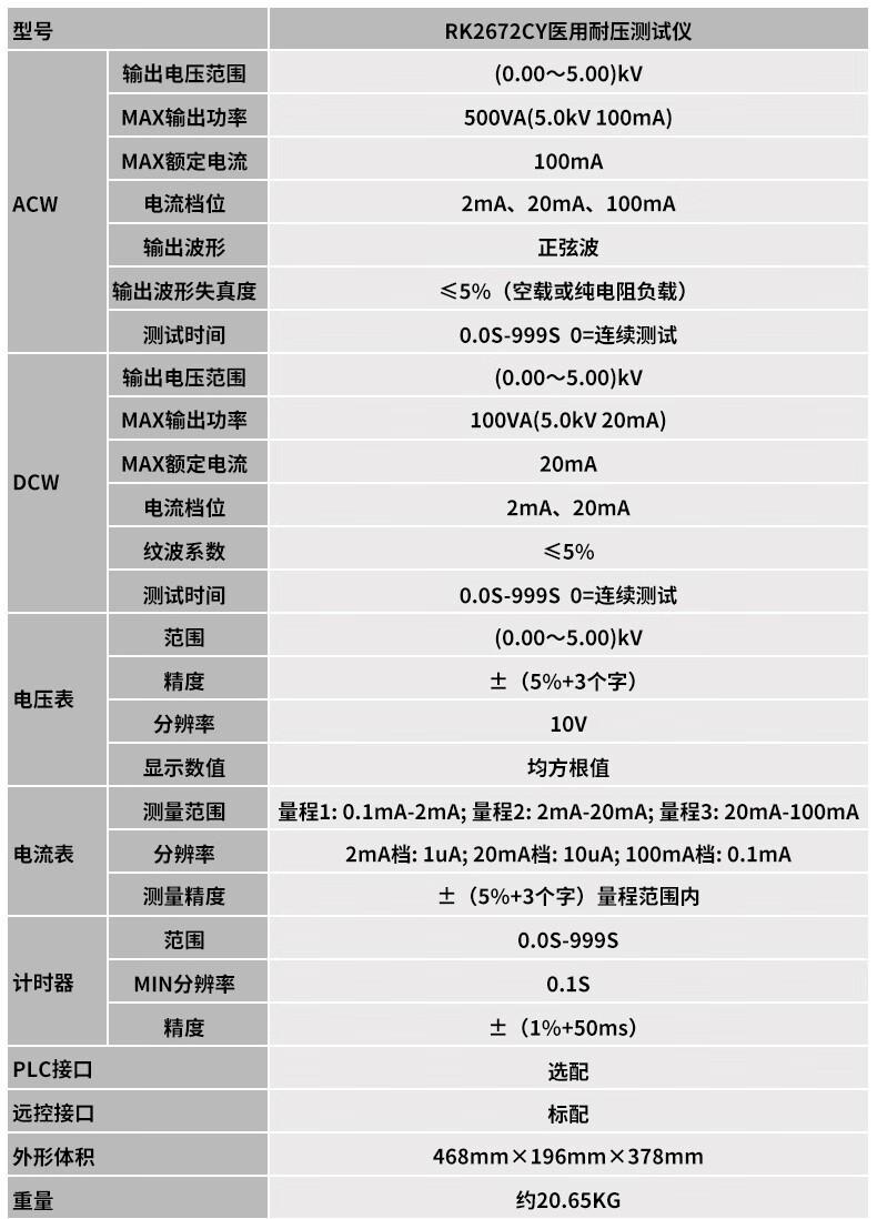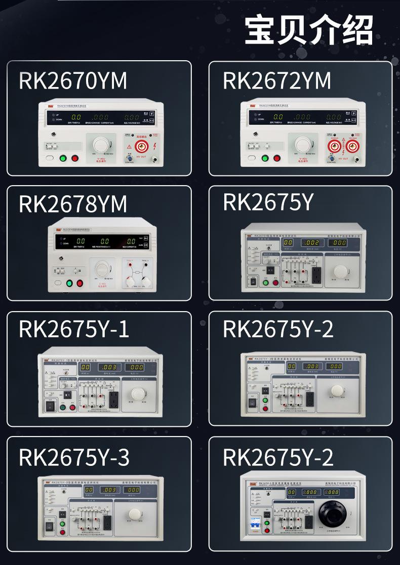Rk2670ym voltage: ac: 0-5kv breakdown current 0.3-20ma accuracy: 5% sound and light alarm