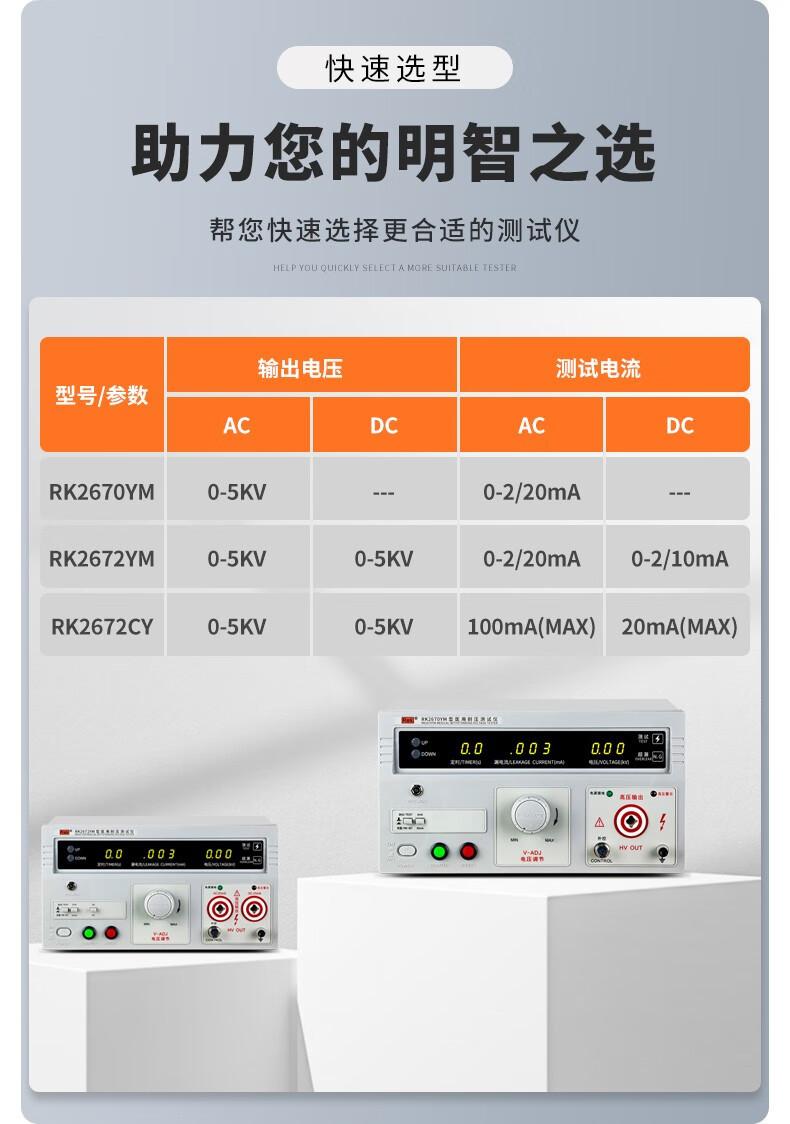 Rk2670ym voltage: ac: 0-5kv breakdown current 0.3-20ma accuracy: 5% sound and light alarm, Rk2671ay voltage: a...