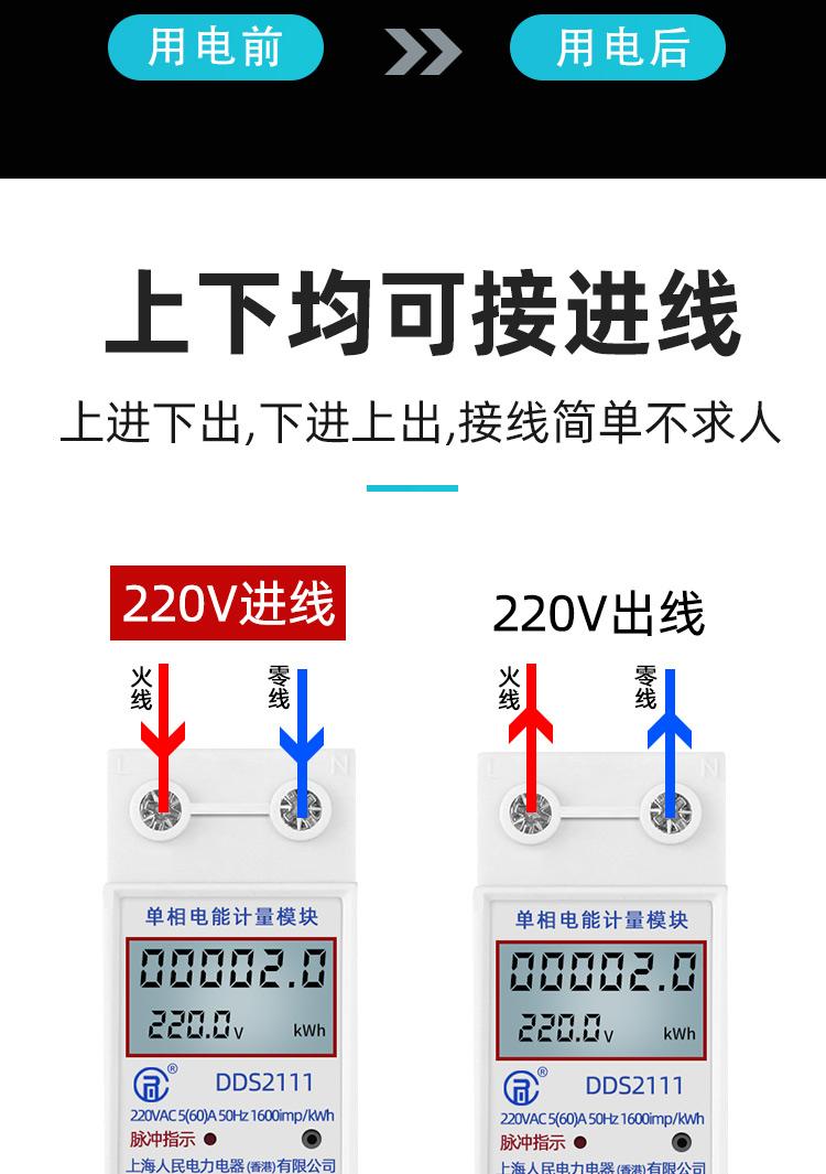 Medidor doméstico tipo riel 5(60)Medidor de vatios-hora de alta precisión para medición de pila de carga de vivienda de alquiler de apartamento monofásico de 220 V