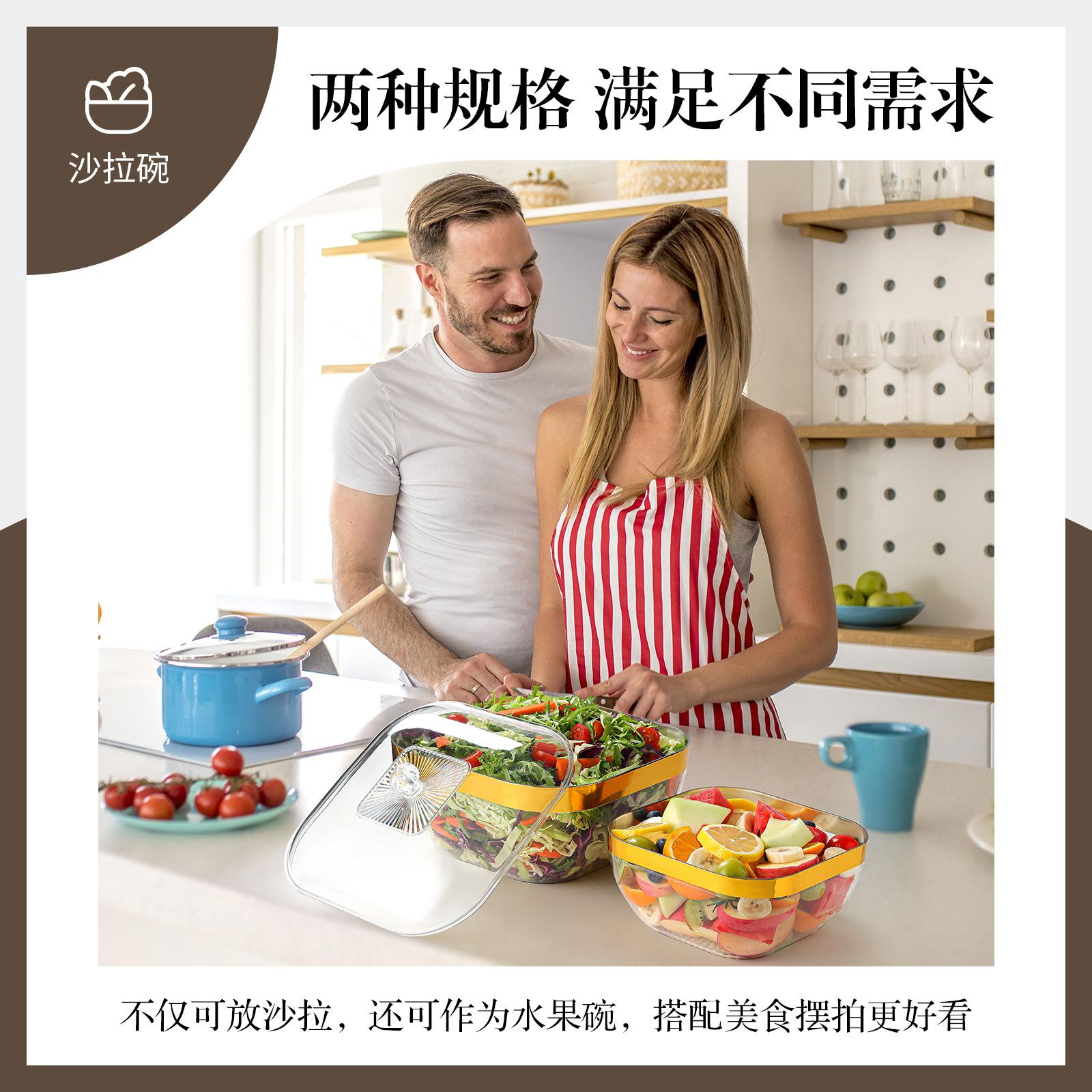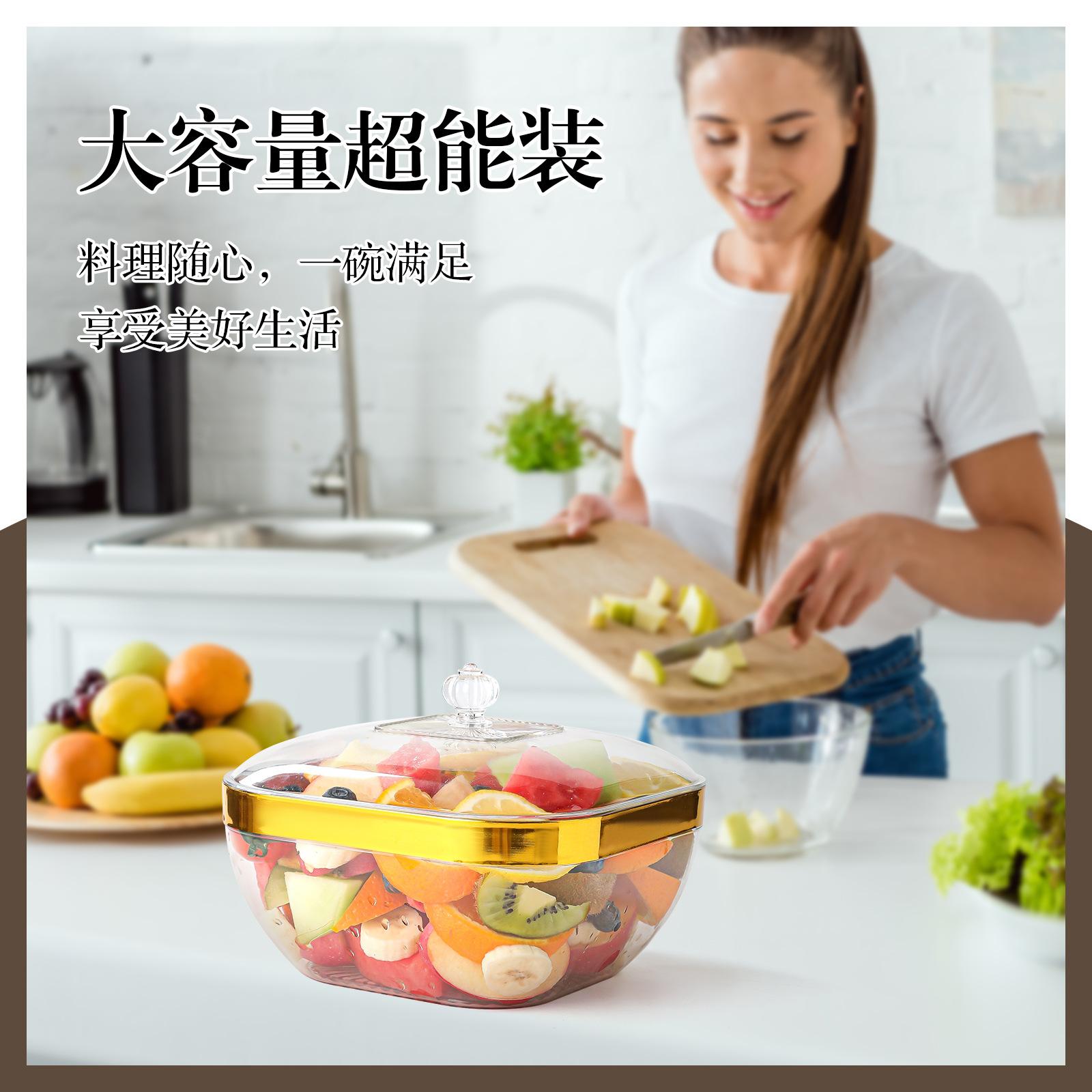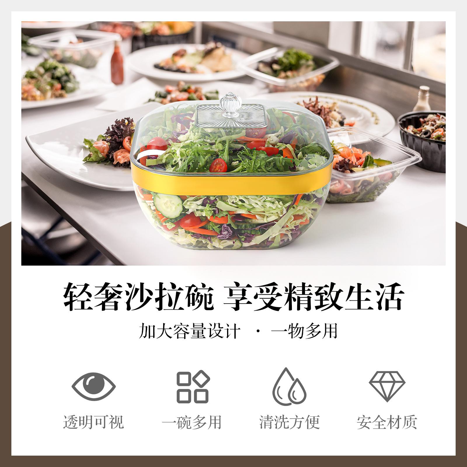 Cuenco de ensalada cuadrado de acrílico creativo, transparente y grueso, para hotel, para verduras, vajilla de plástico para té 1