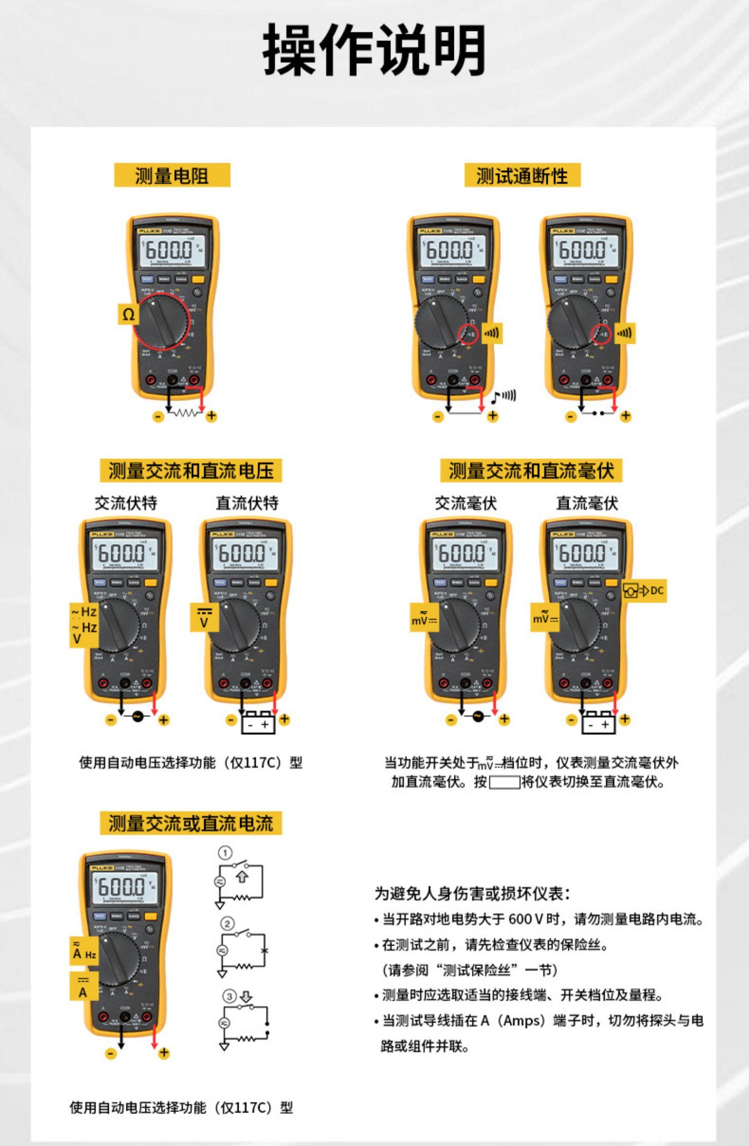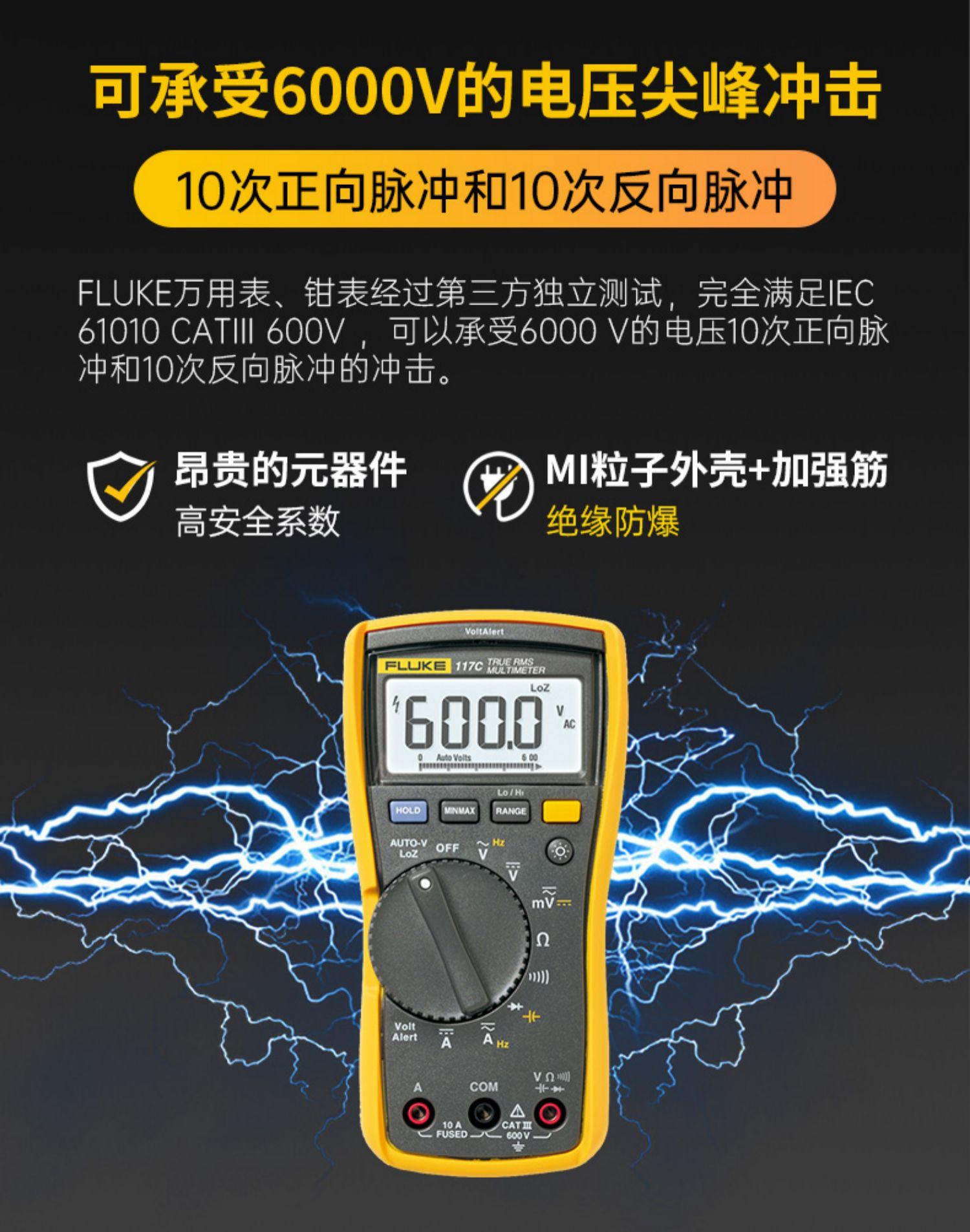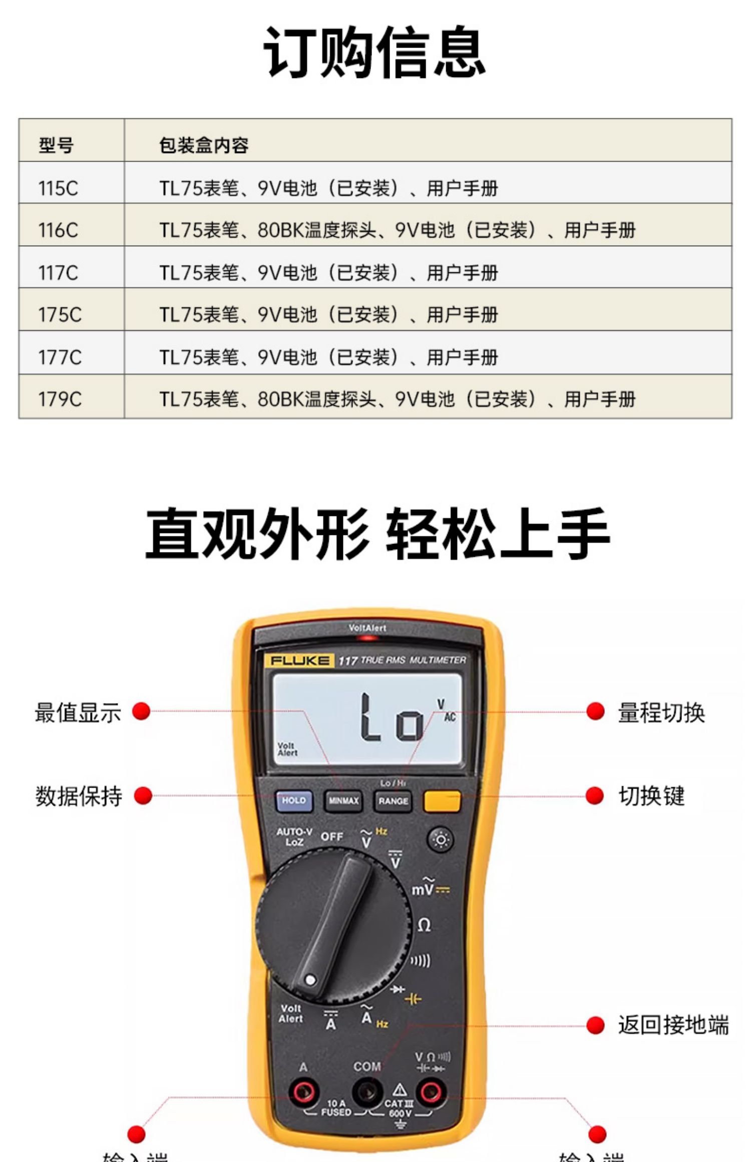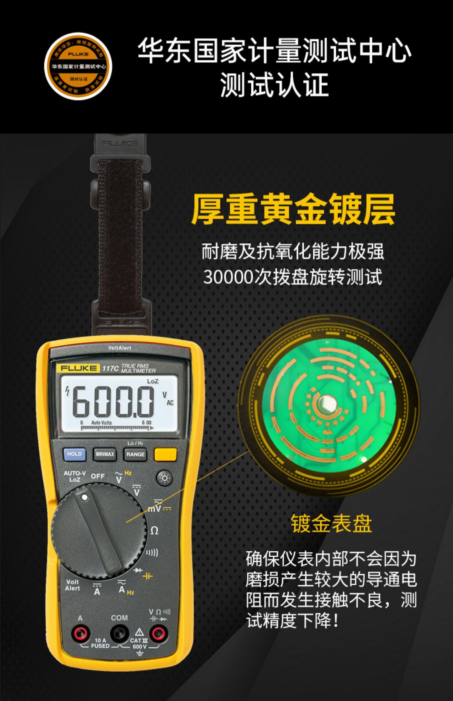 Fluke Fluke Multímetro 117C Tienda Oficial Insignia Verdadero RMS Multifunción Digital Universal Pantalla Electricista