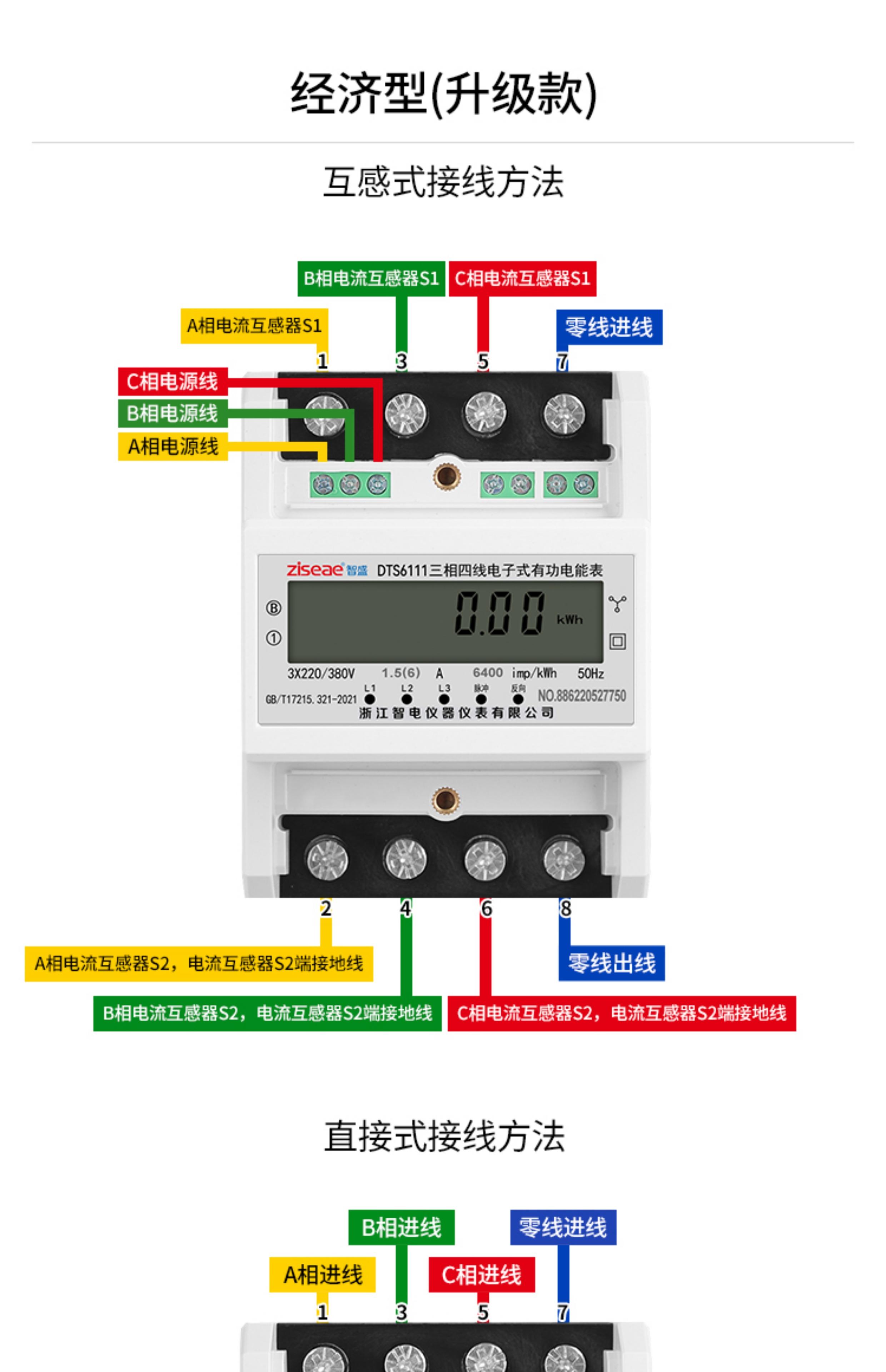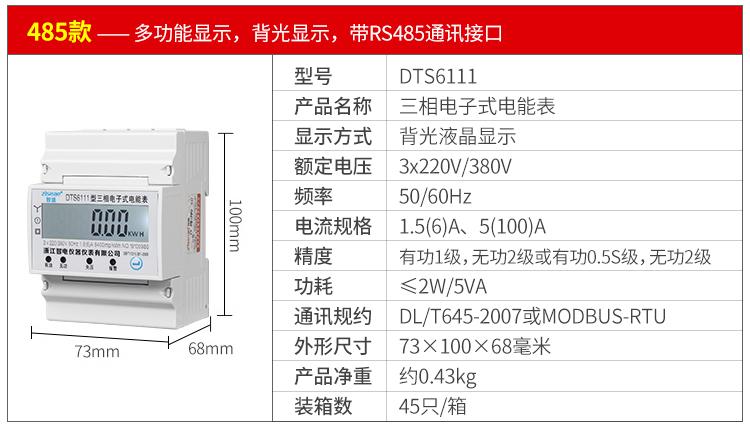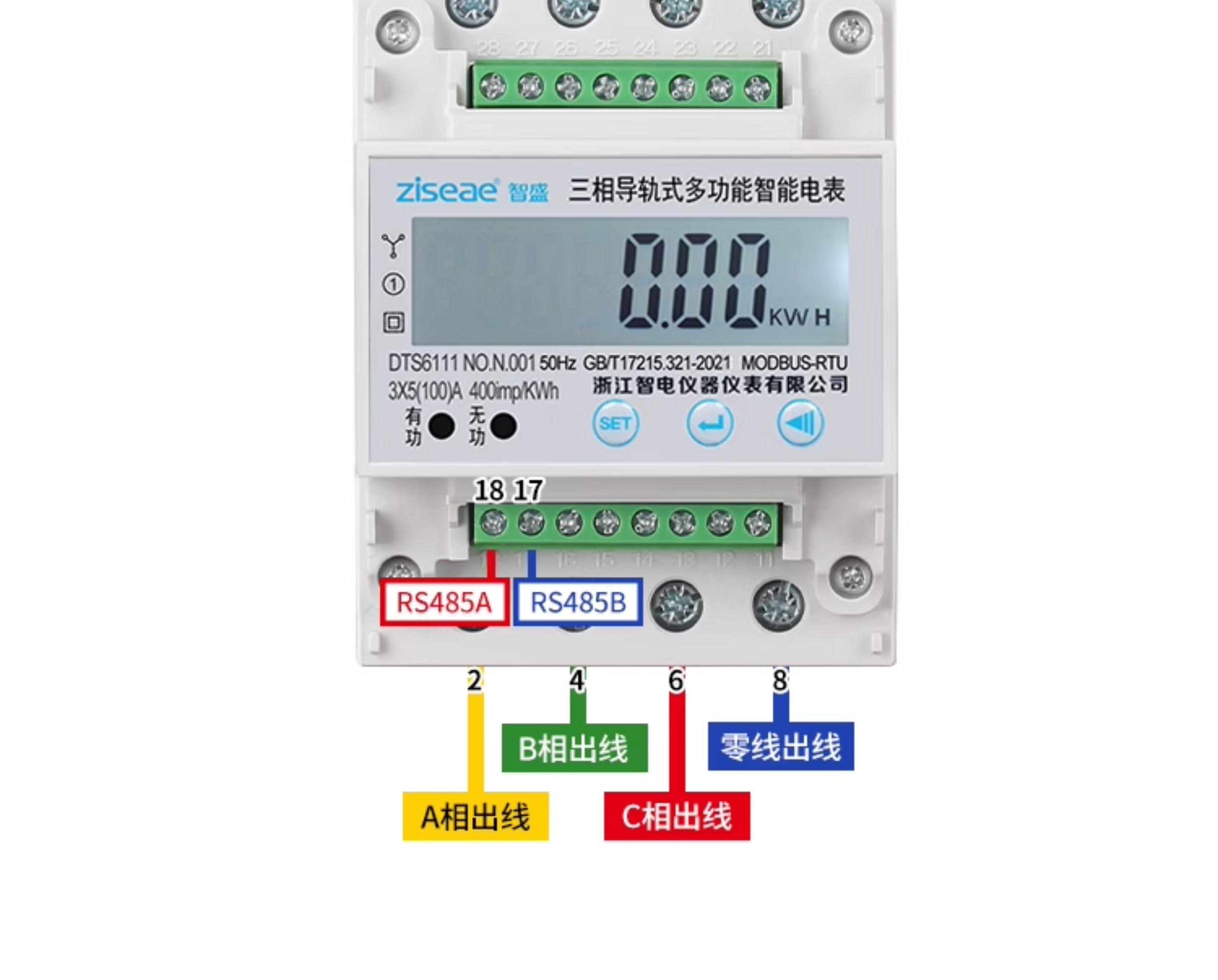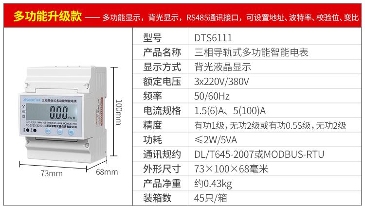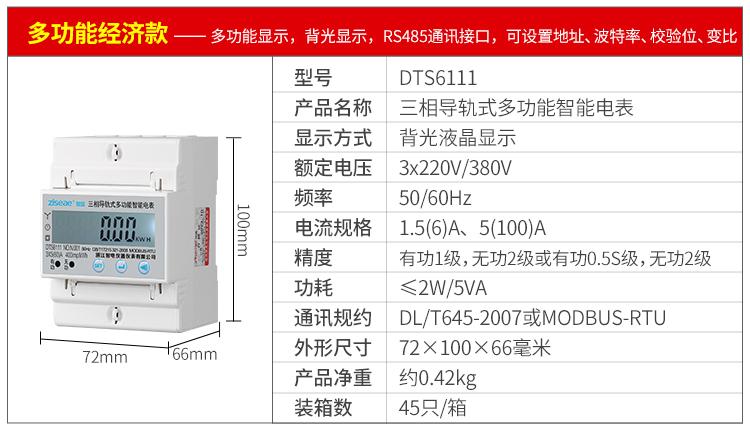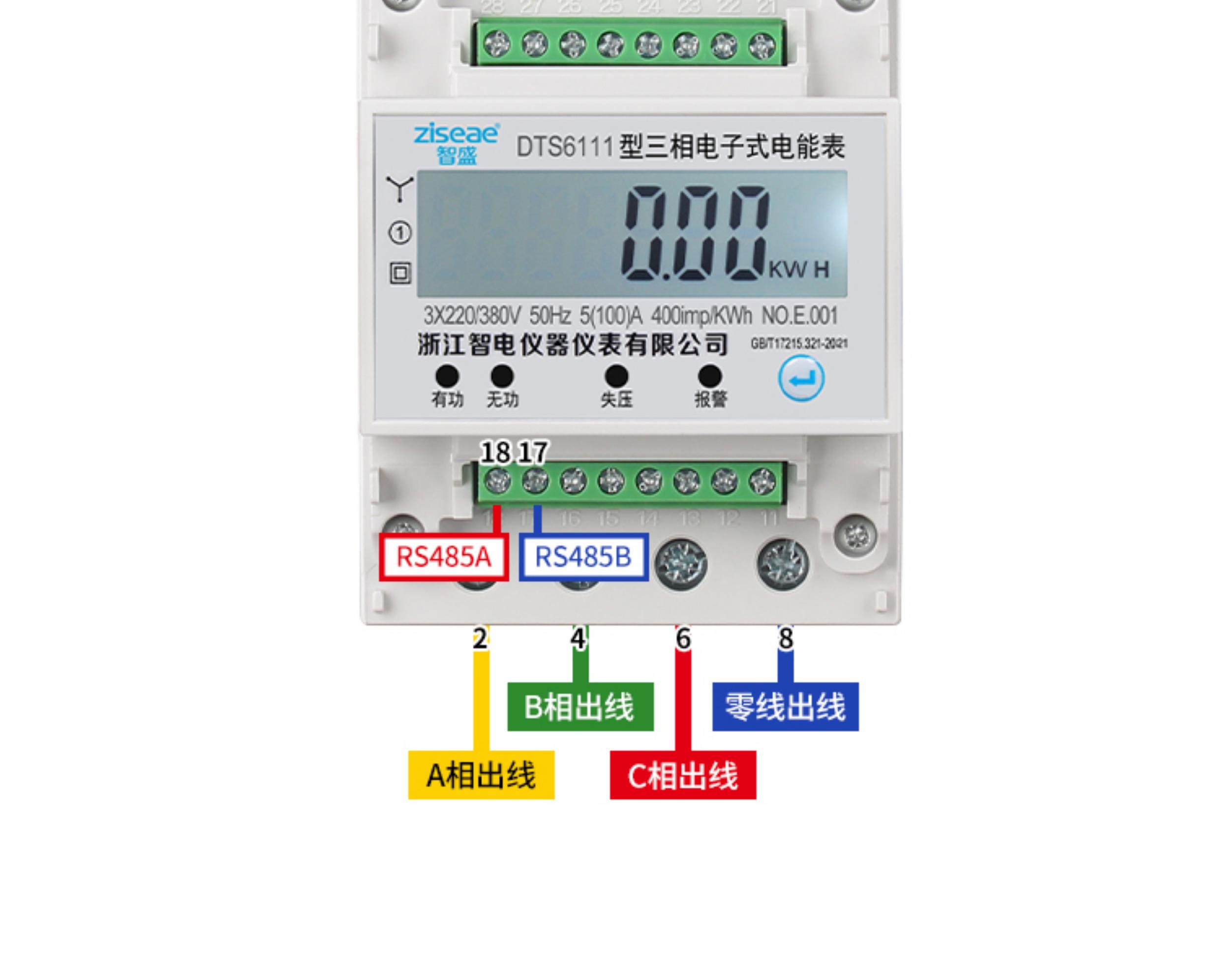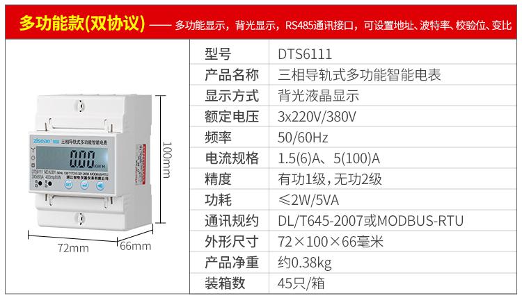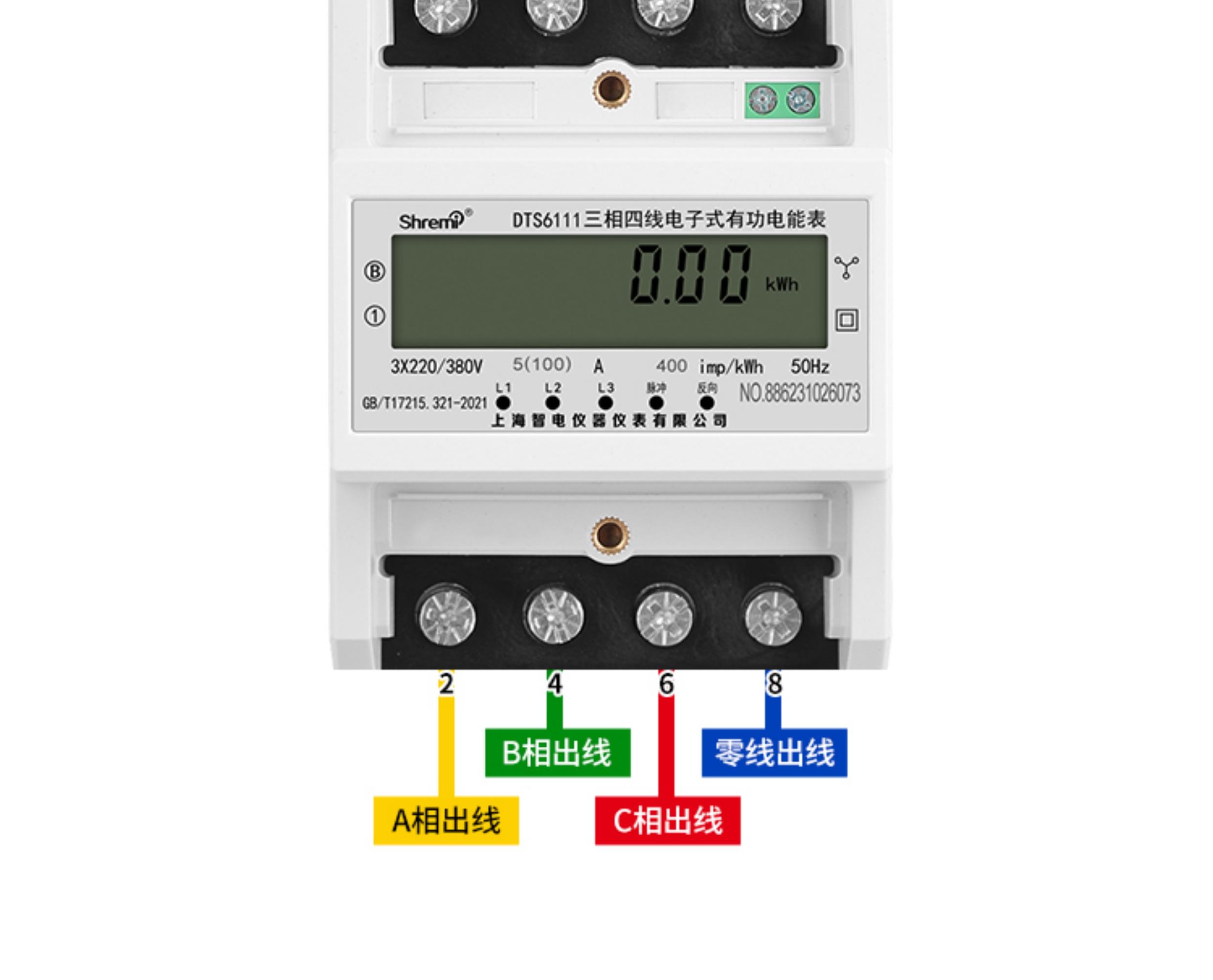 Medidor inteligente multifunción con riel guía electrónico de cuatro cables trifásico 4p, comunicación RS485, lectura remota de medidores, 380 V
