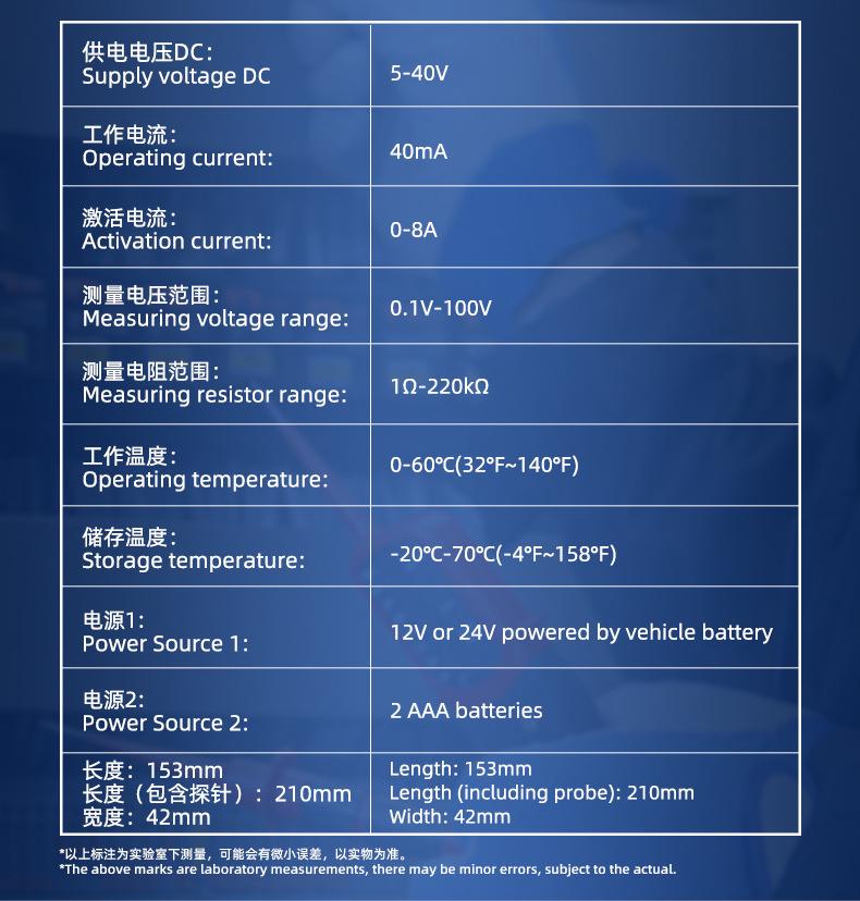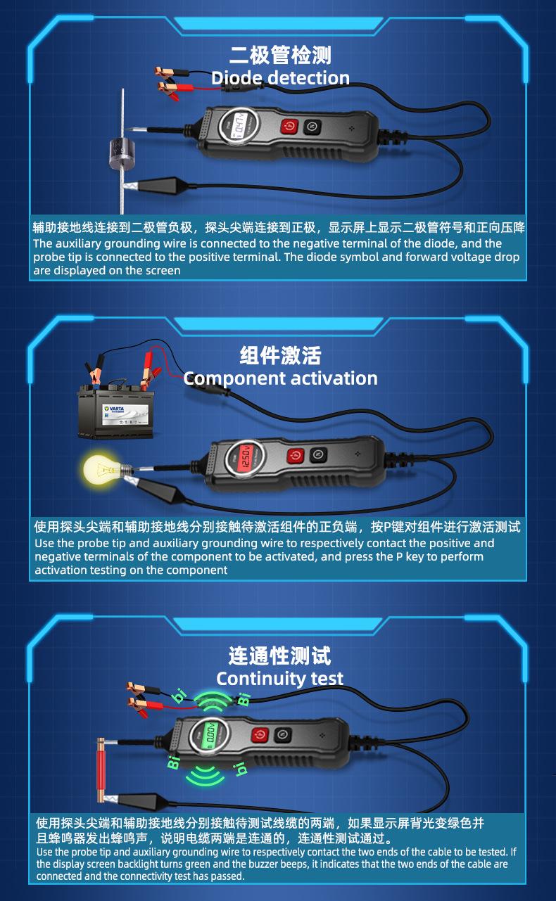 Obd Coche Motocicleta Camión Detección de Circuito Voltaje Resistencia Diodo Prueba de Cortocircuito Detector de Coche P100