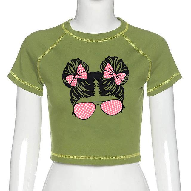 Camiseta informal de manga corta con cuello redondo y estampado de ombligo para mujer, nueva camiseta de primavera de AliExpress, personalizada, estilo europeo y americano