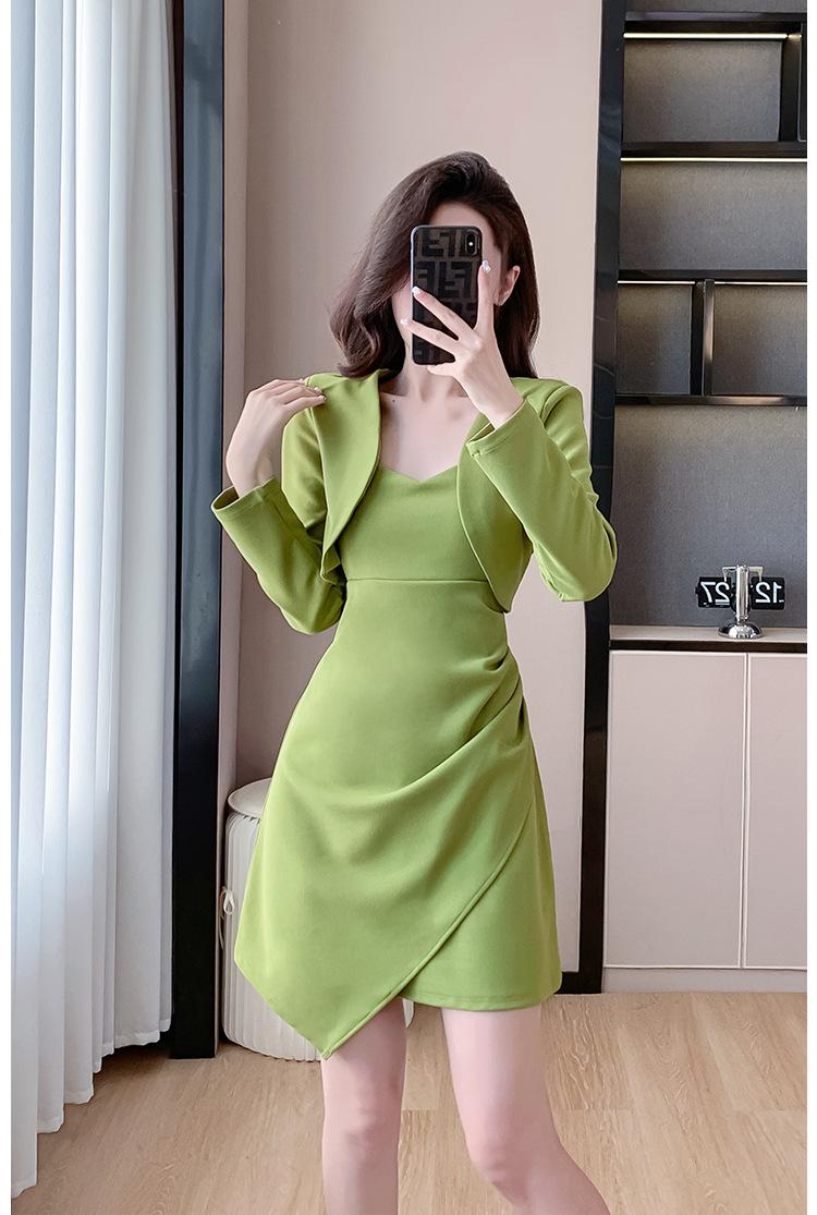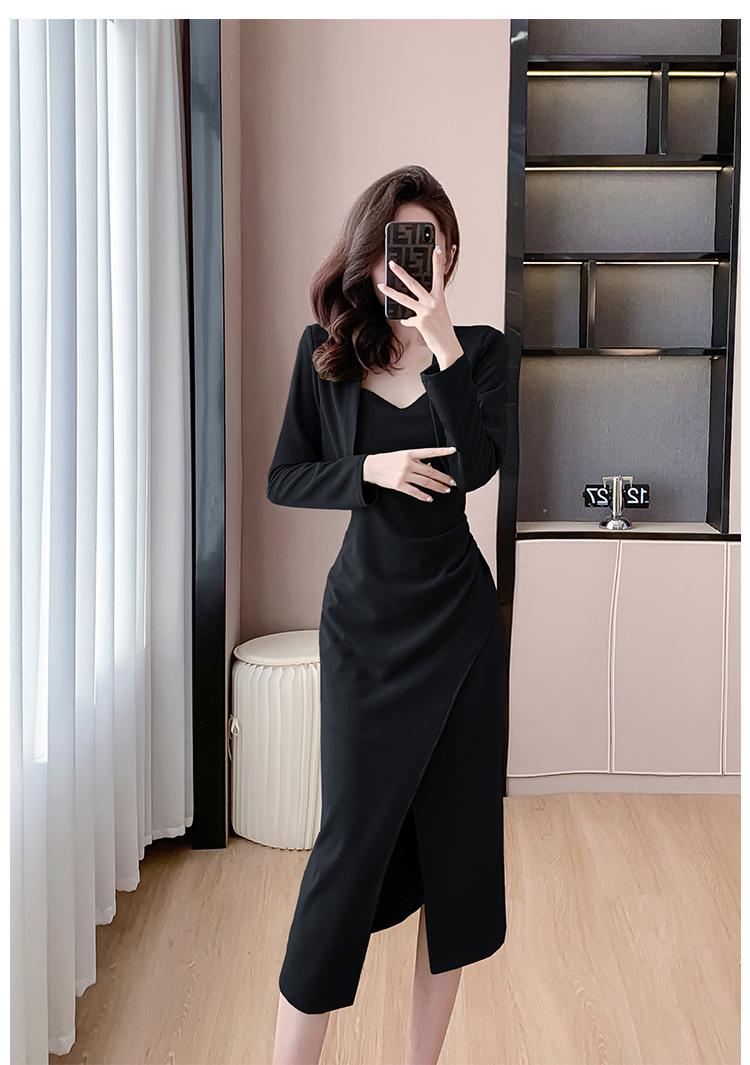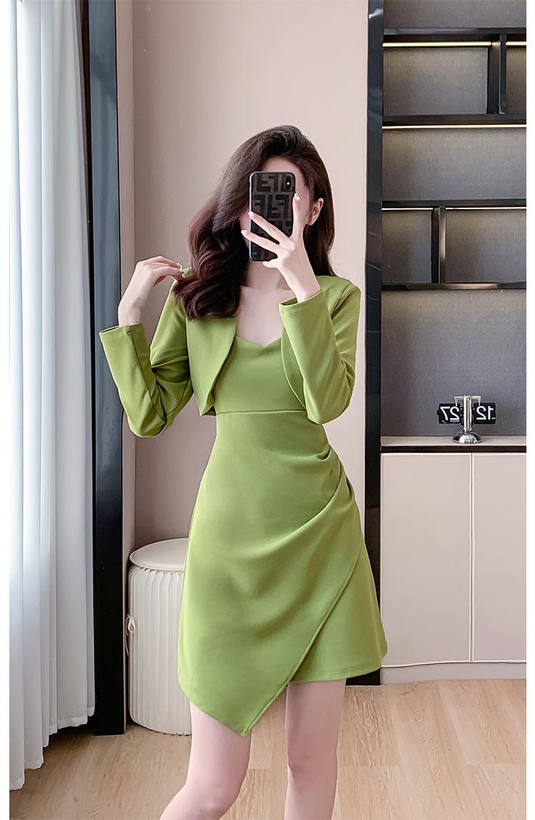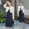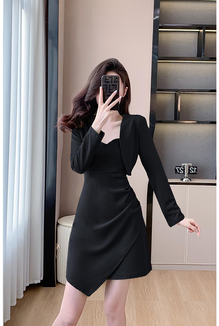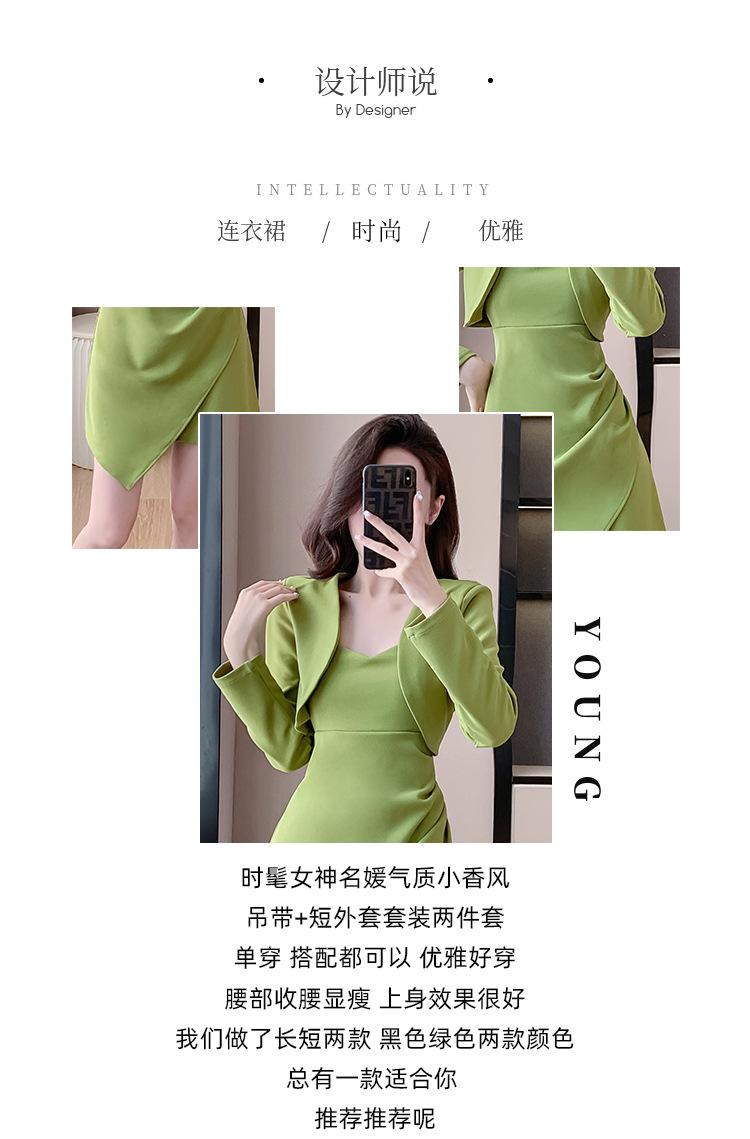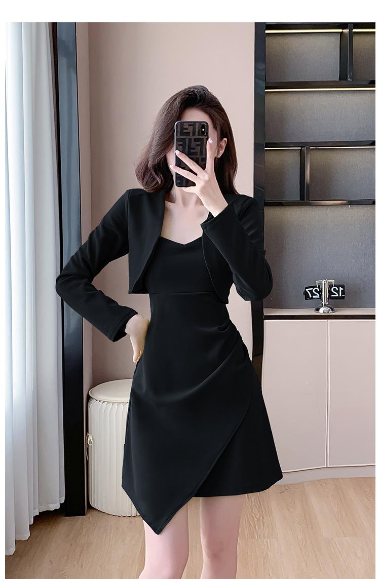 Traje de dos piezas con abrigo corto y tirantes irregulares de perlas de temperamento nuevo de otoño 2025