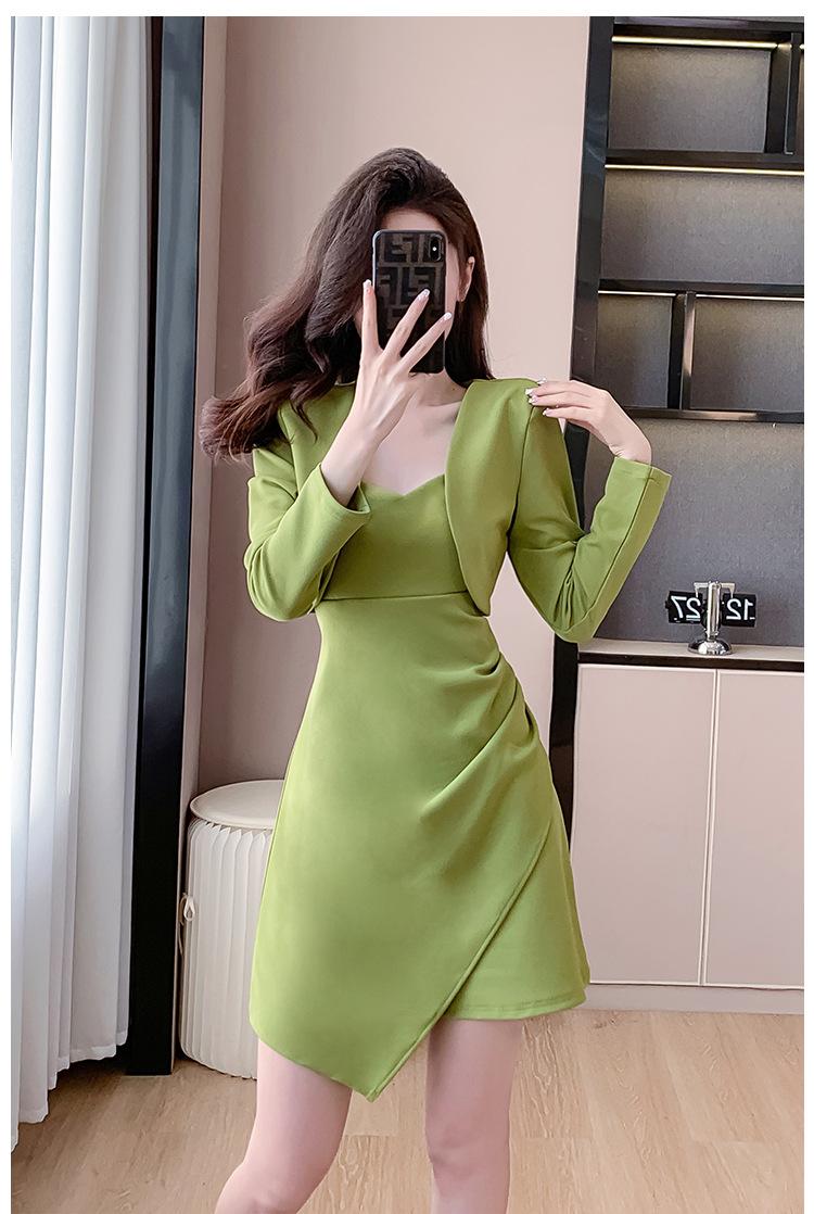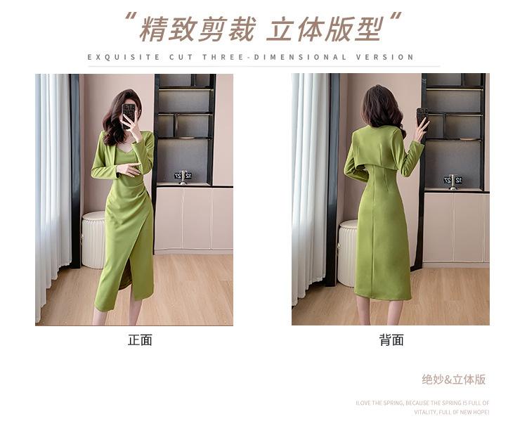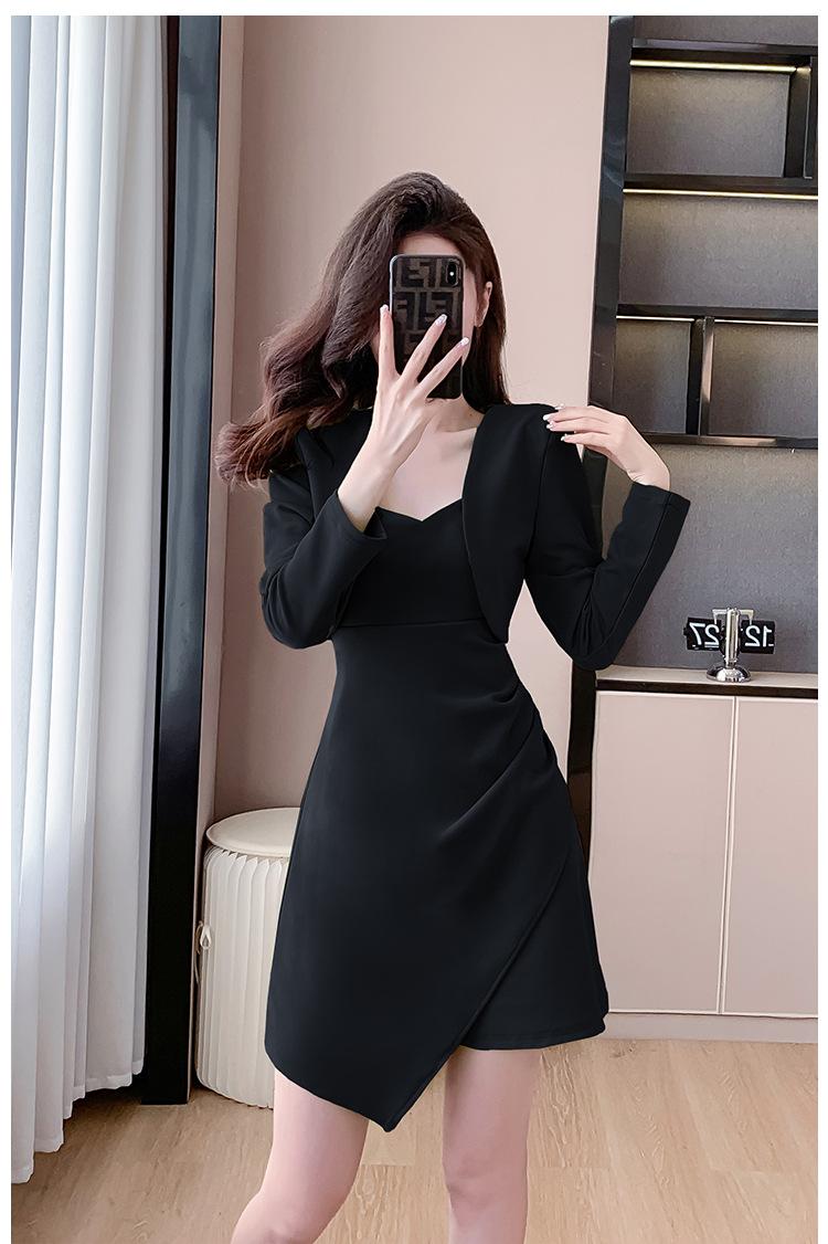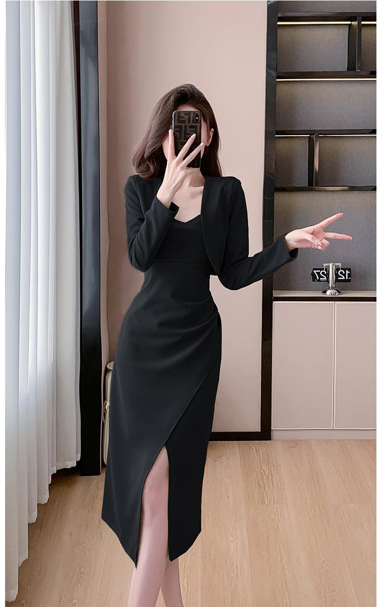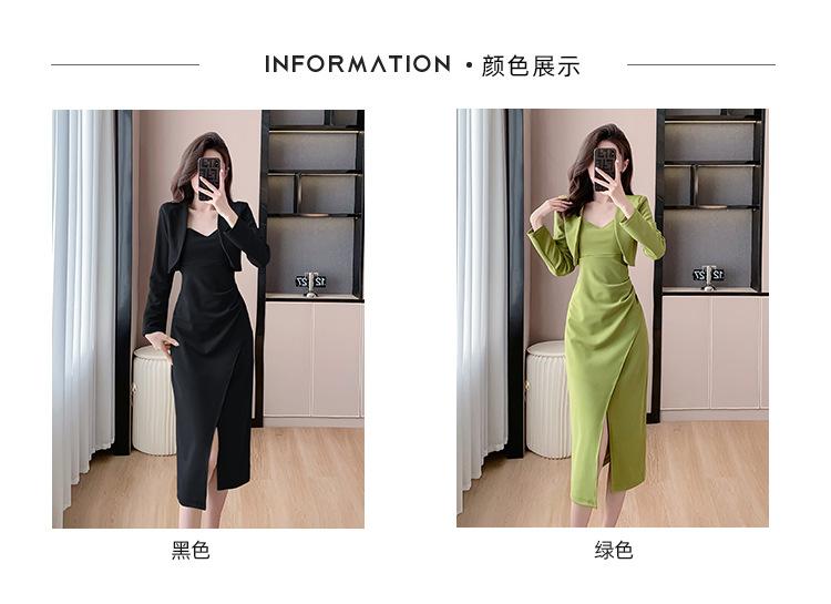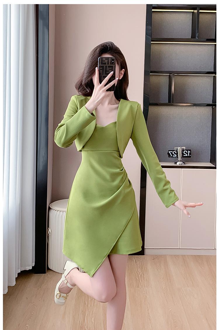Traje de dos piezas con abrigo corto y tirantes irregulares de perlas de temperamento nuevo de otoño 2025