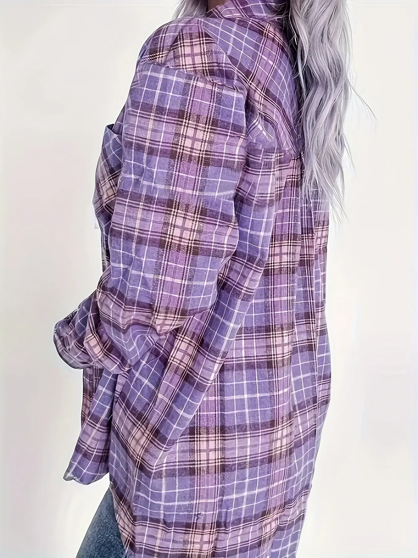 Compra 2025 Nueva Camisa a Cuadros de Primavera Transfronteriza Cepillada Suelta de Talla Grande para Mujer, Camisa de Manga Larga con Protección Solar Estilo Retro Hong Kong al por mayor en Joom.pro
